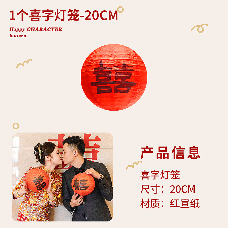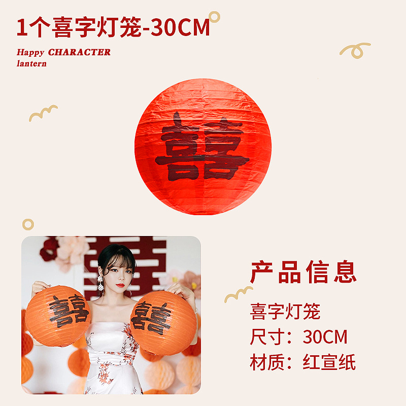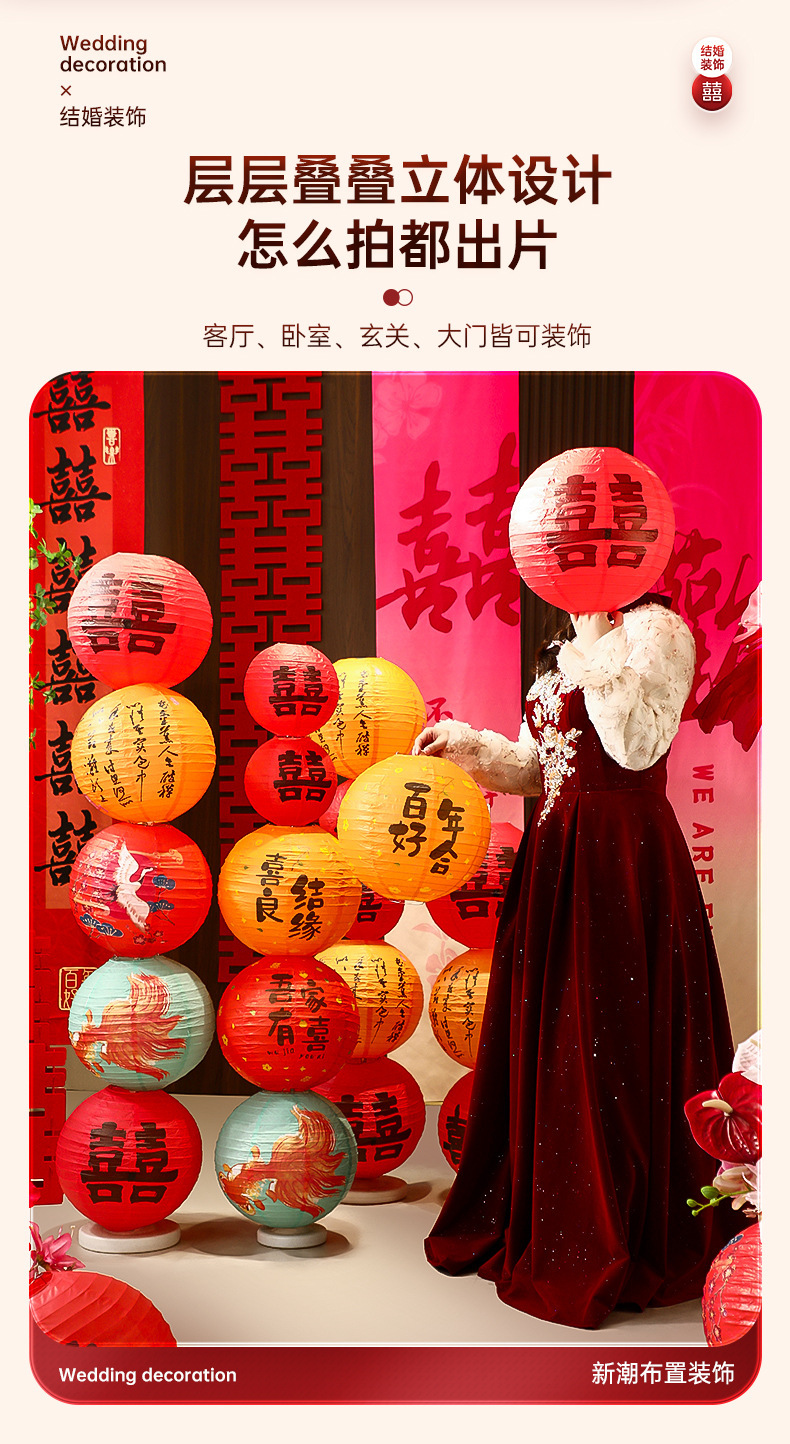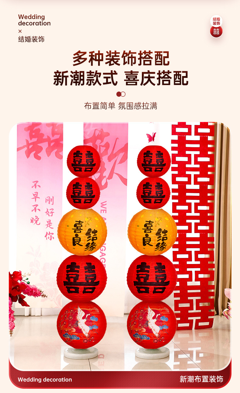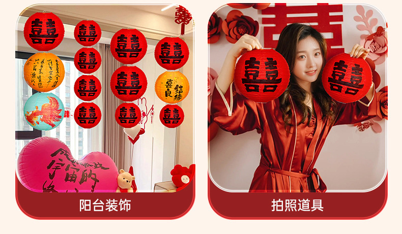结婚喜字纸灯笼婚房装饰女方布置套装卧室房间婚礼国风立柱囍灯笼