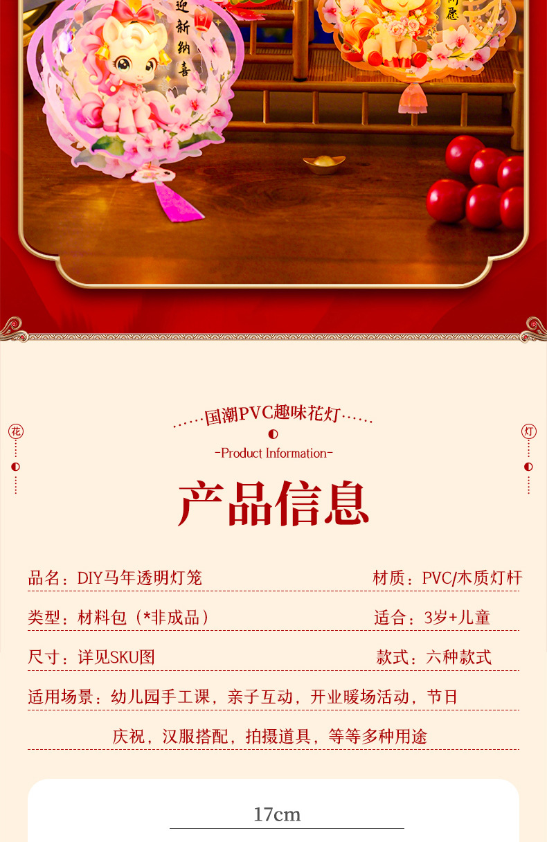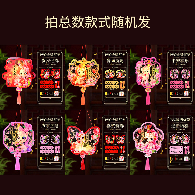 马年儿童手提透明灯笼幼儿园手工diy春节花灯新年灯笼pvc材料包