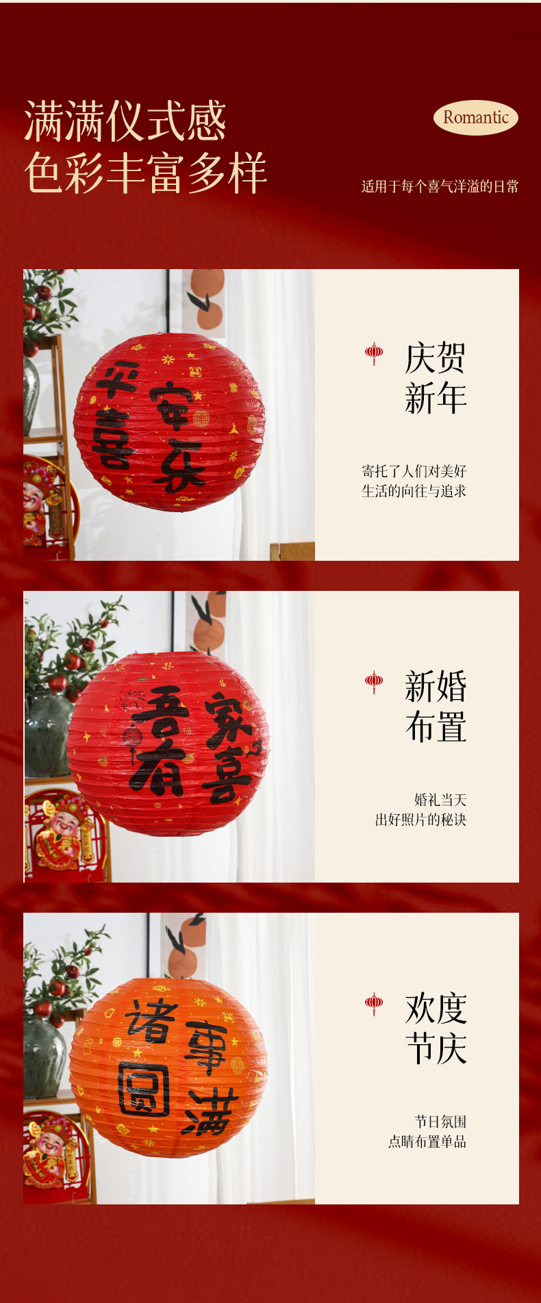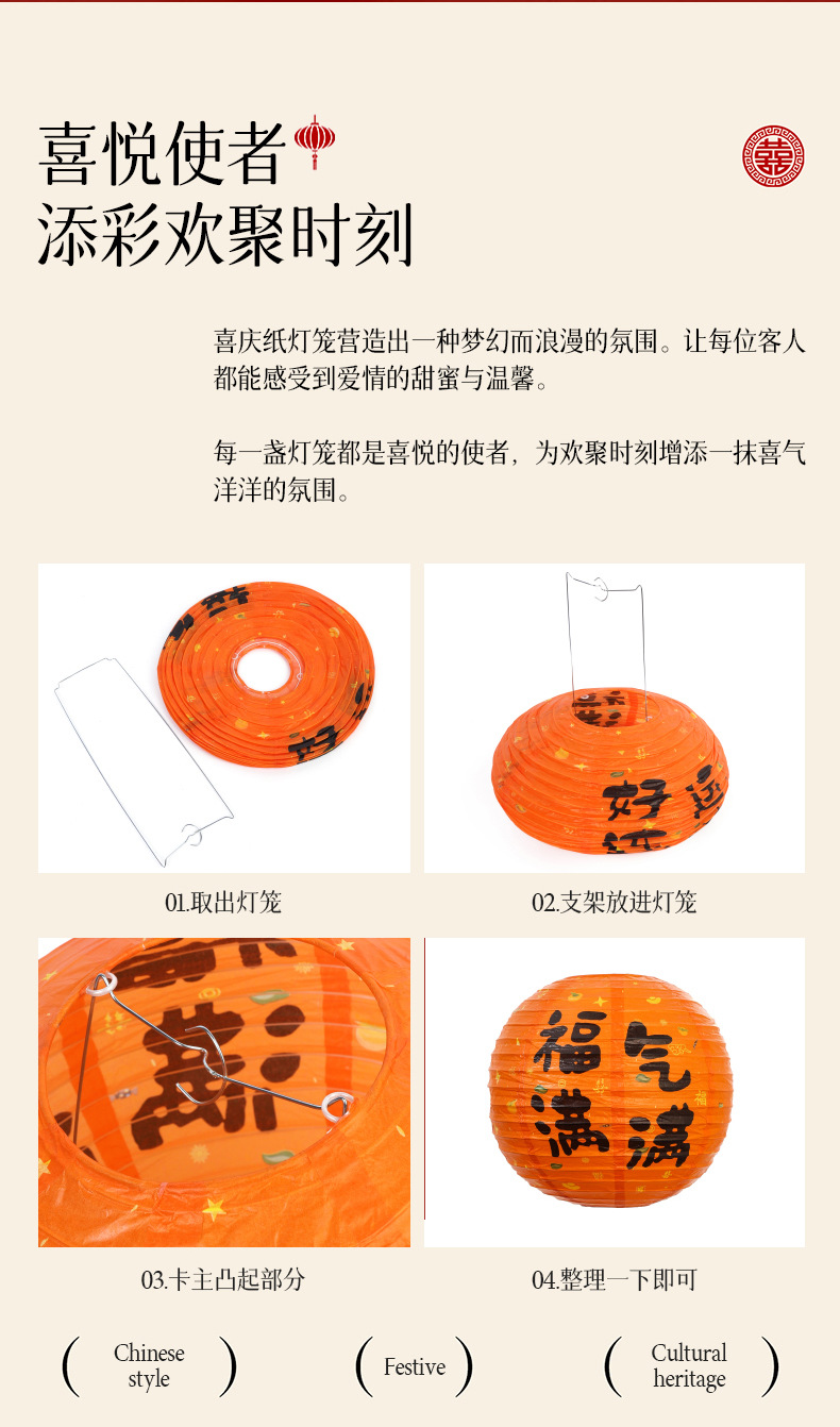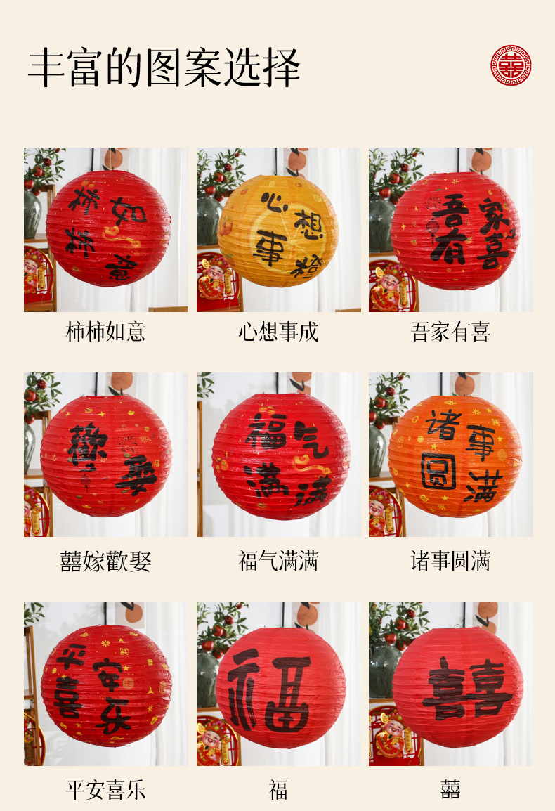 灯笼结婚囍字红色圆形纸灯笼中式纸灯笼树挂摆件拍照道具婚房布置