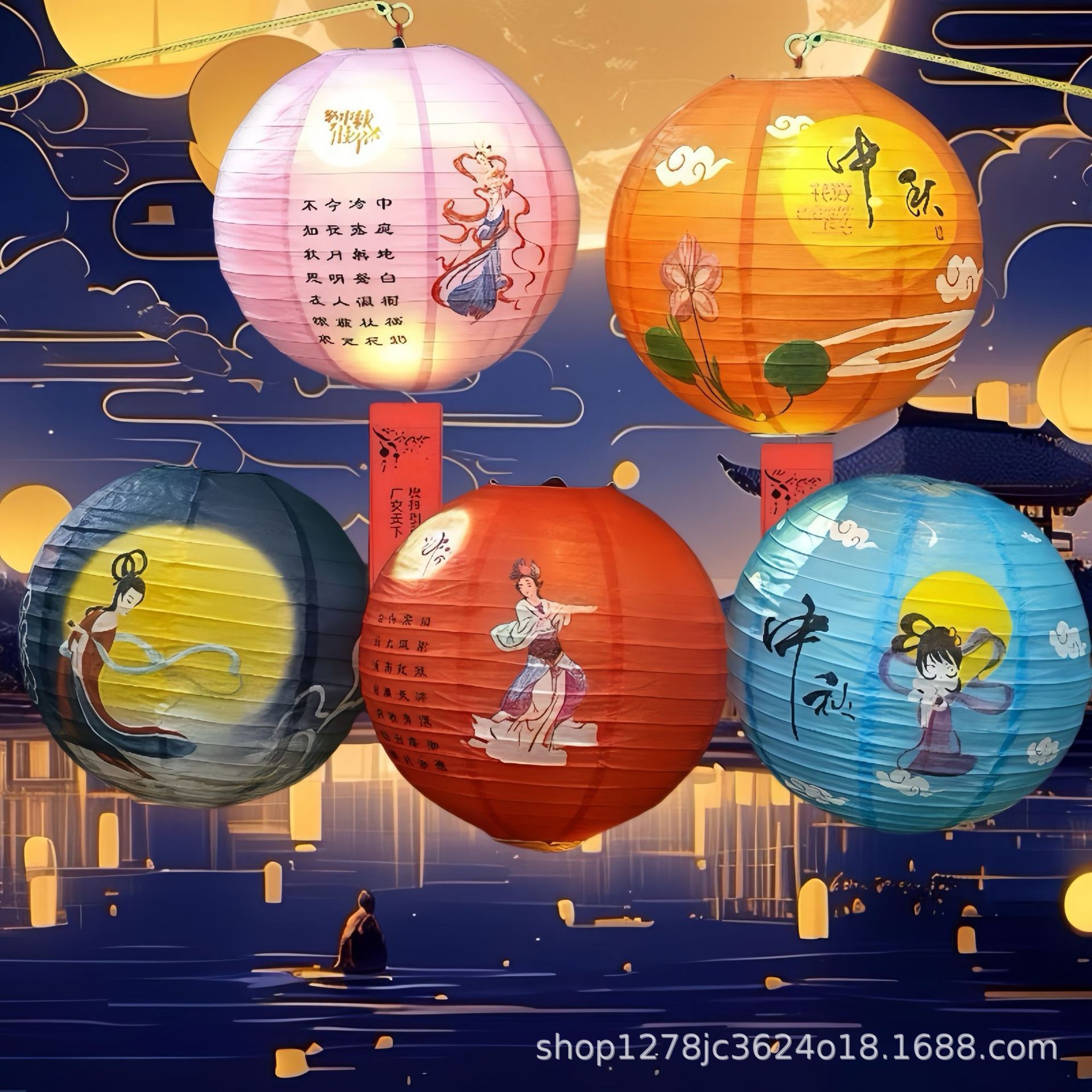 纸灯笼中秋灯笼挂饰手工diy折叠中秋节猜灯谜国庆活动装饰古风