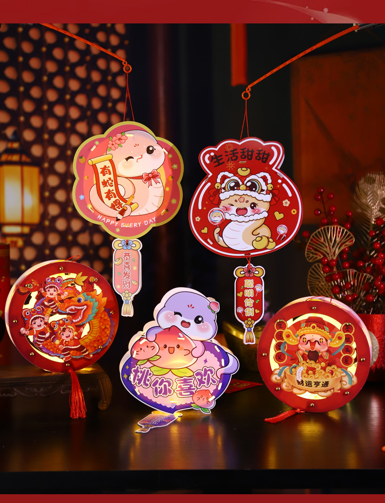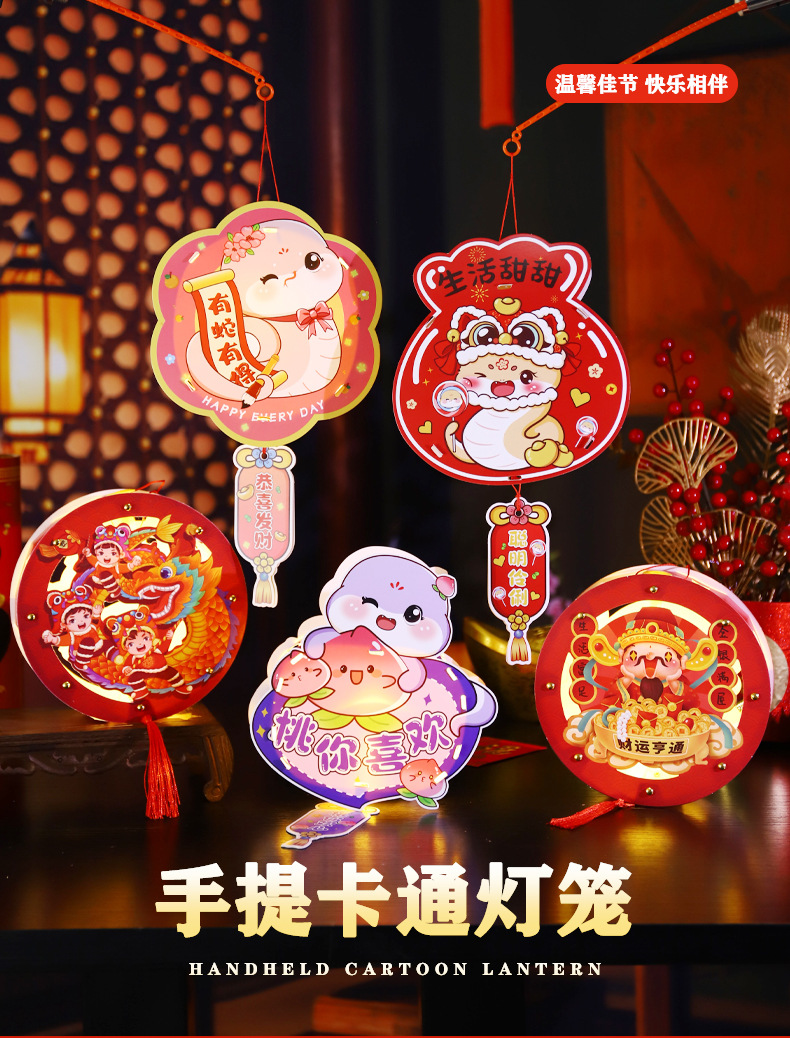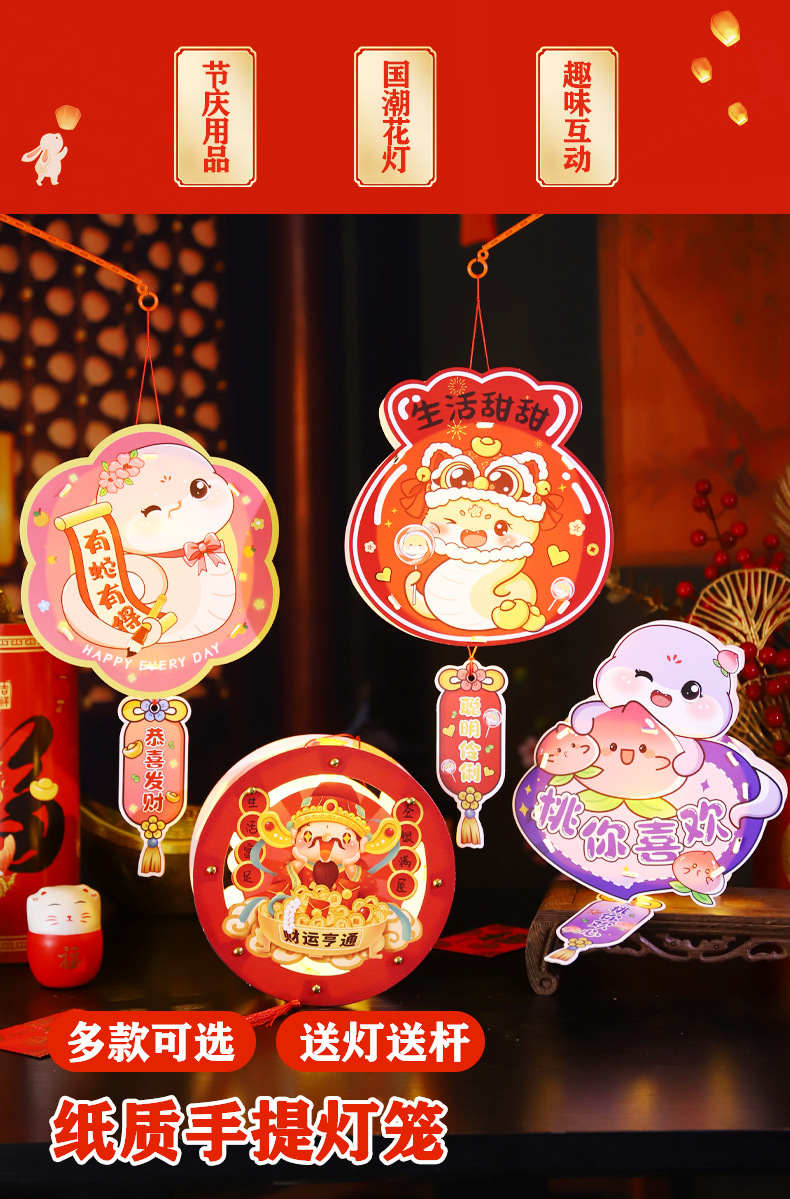 2026新年灯笼儿童手提花灯diy手工制作材料包蛇年走马灯宫灯批发