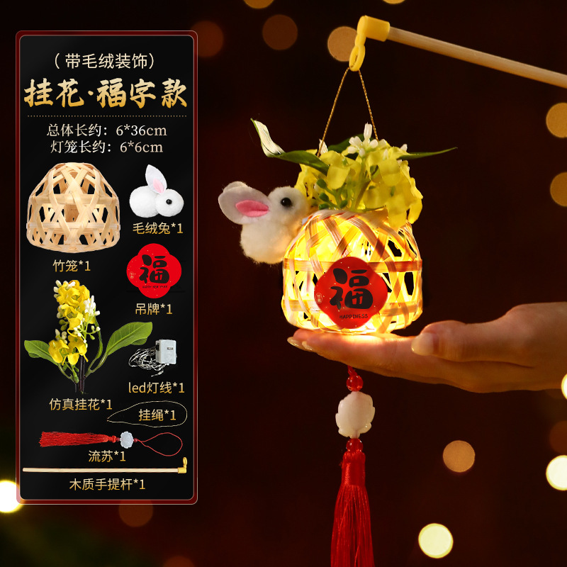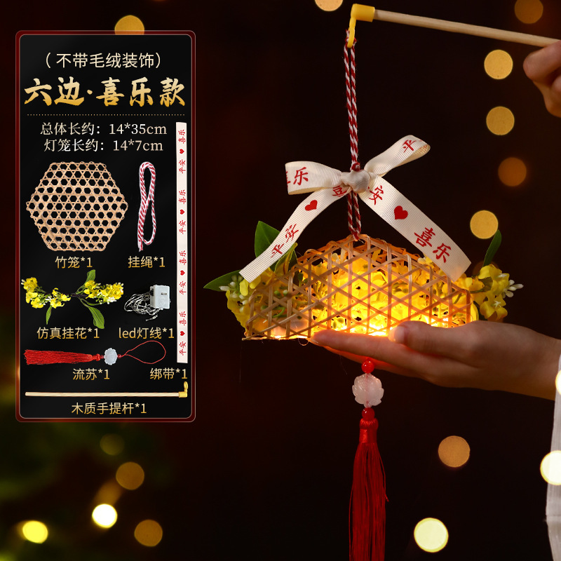 古风手提竹编灯笼中秋节发光手工diy成品迷你材料包儿童花灯汉服