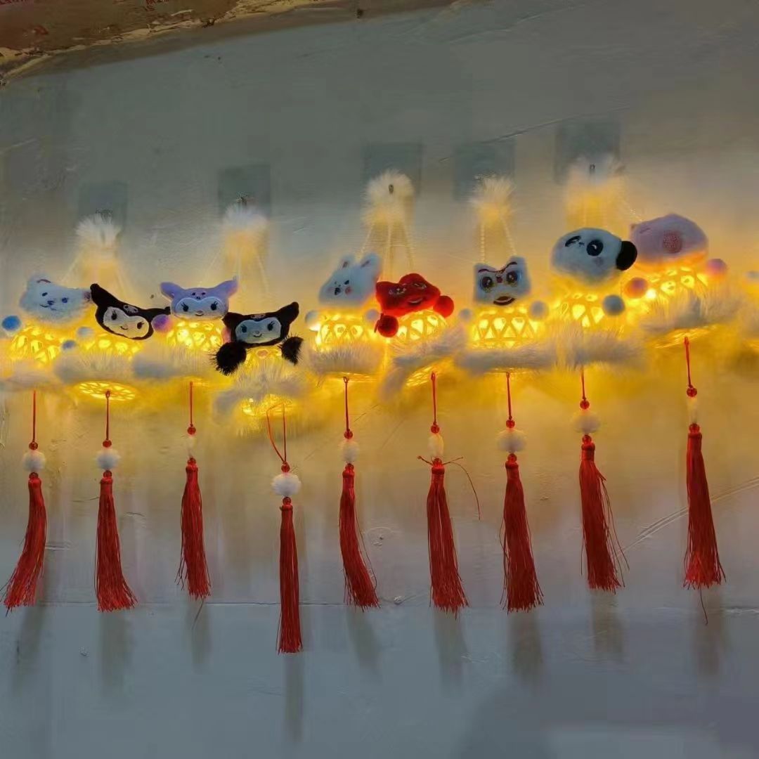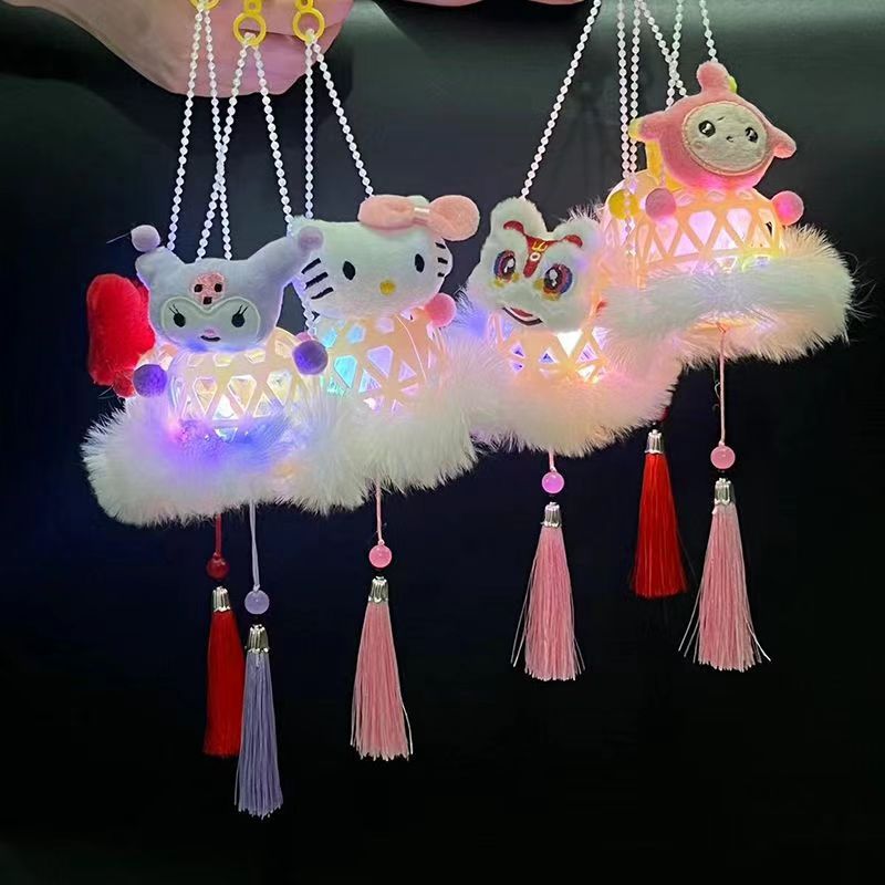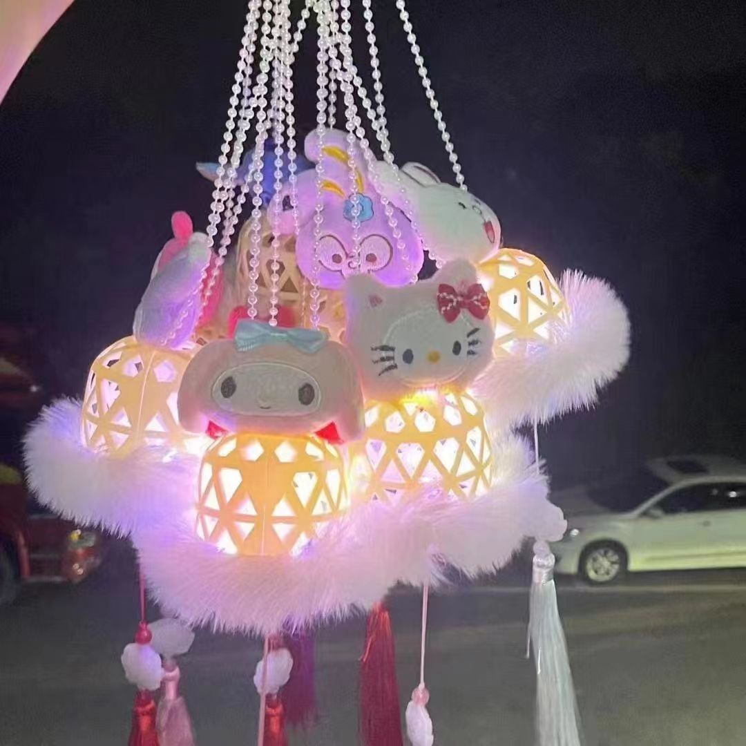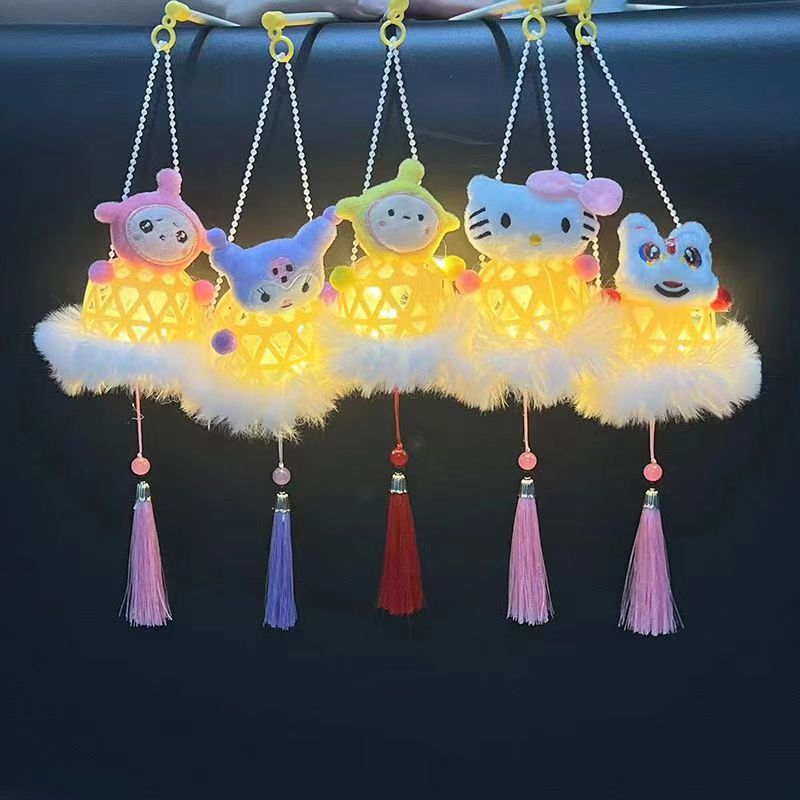 中秋节手提发光萌萌竹编小灯笼发光玉兔挂件灯笼卡通玩具灯笼批发