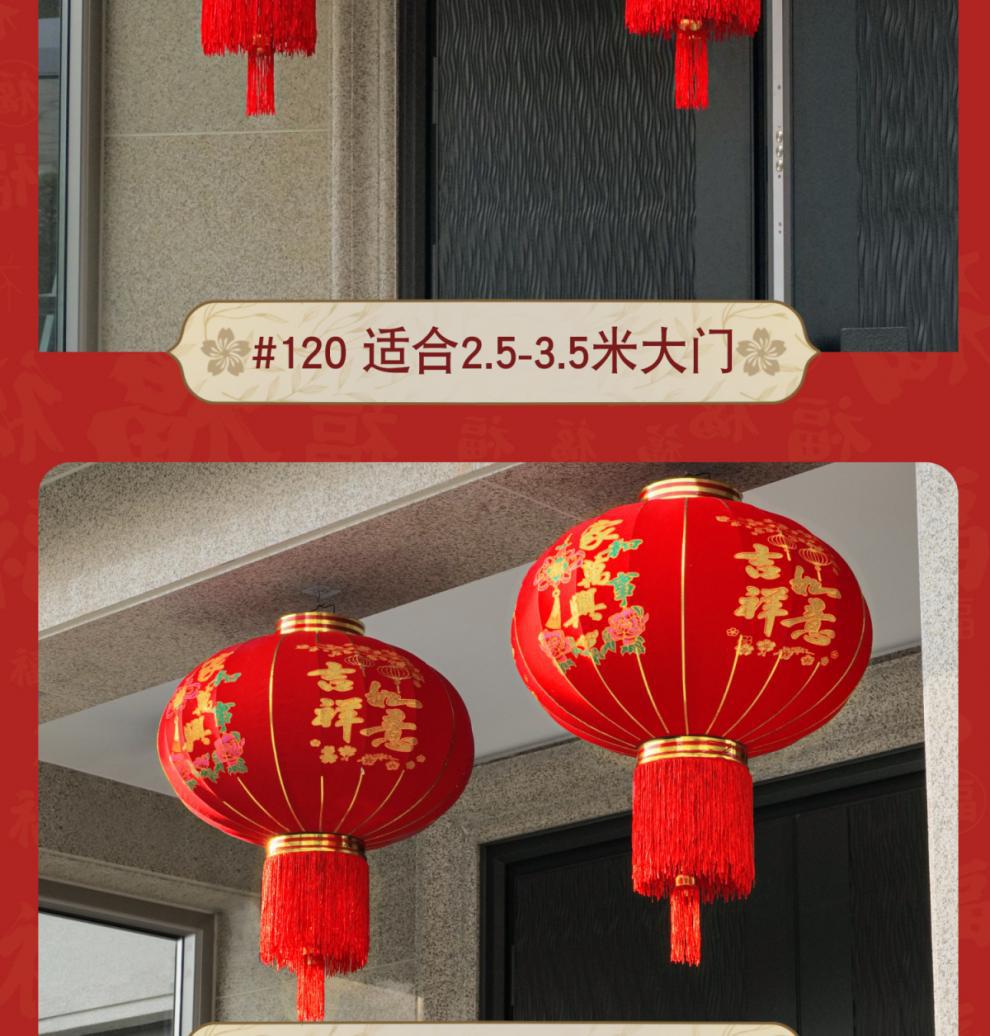 新款大红植绒灯笼户外阳台大门口装饰吊灯春节过新年元旦灯笼批发