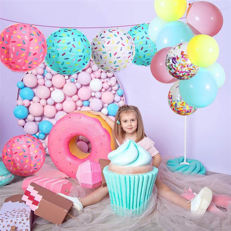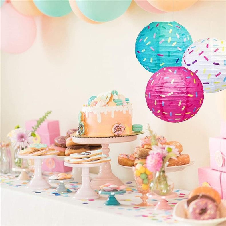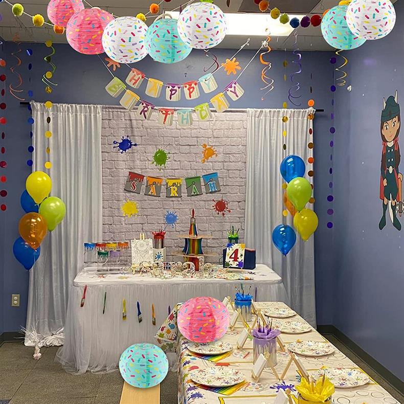 彩色圆形手工灯笼挂饰冰淇淋灯笼儿童生日派对布置装饰可折叠纸