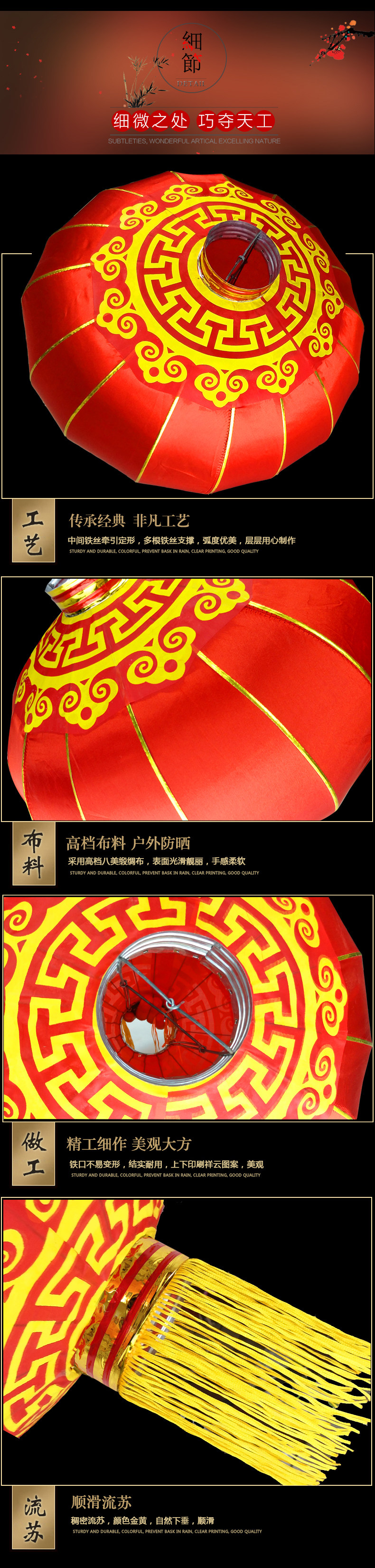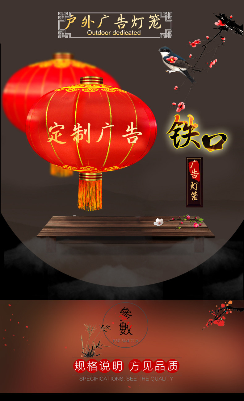 户外大红灯笼防水防晒铁口绸布植绒灯笼广告亮化灯笼印字大门装饰