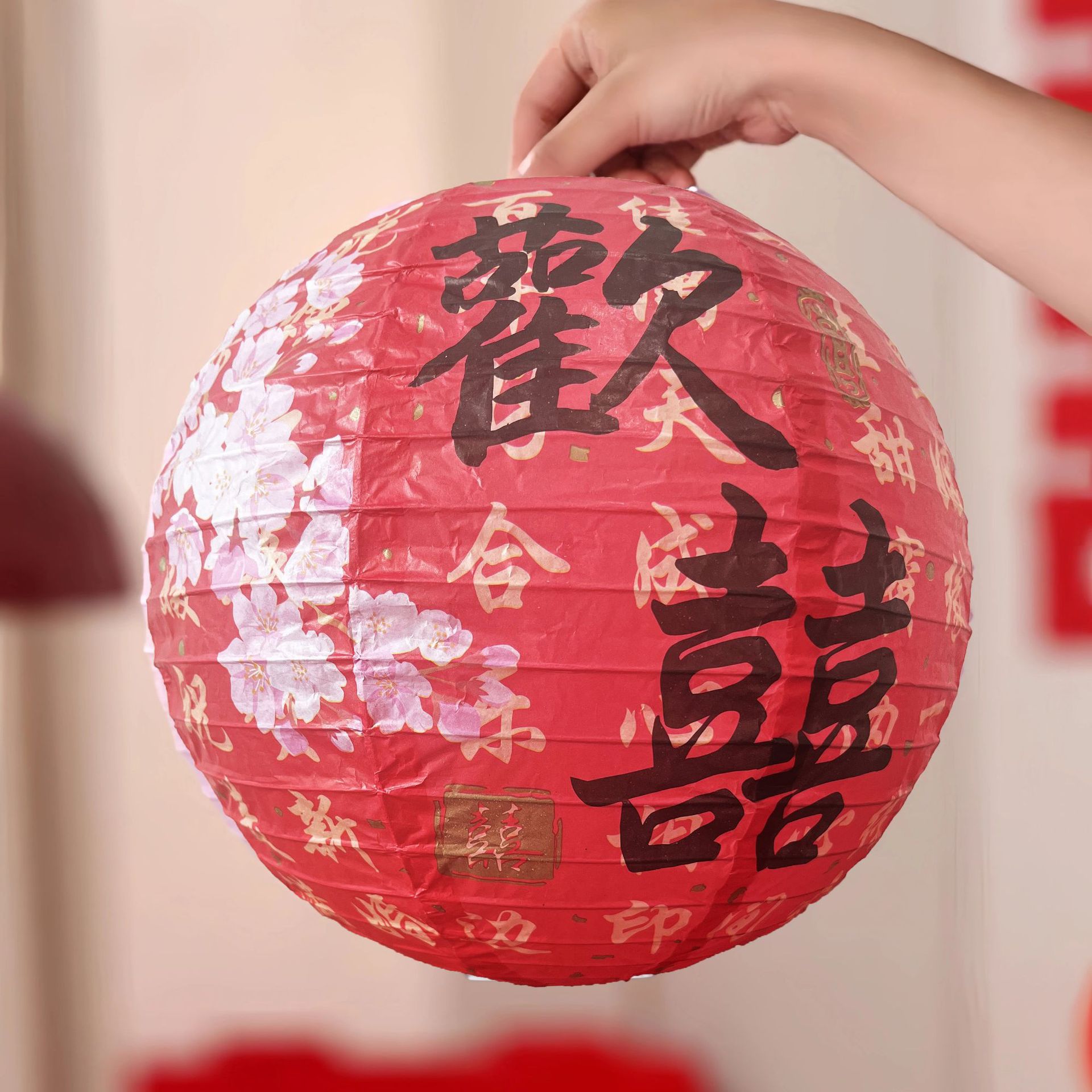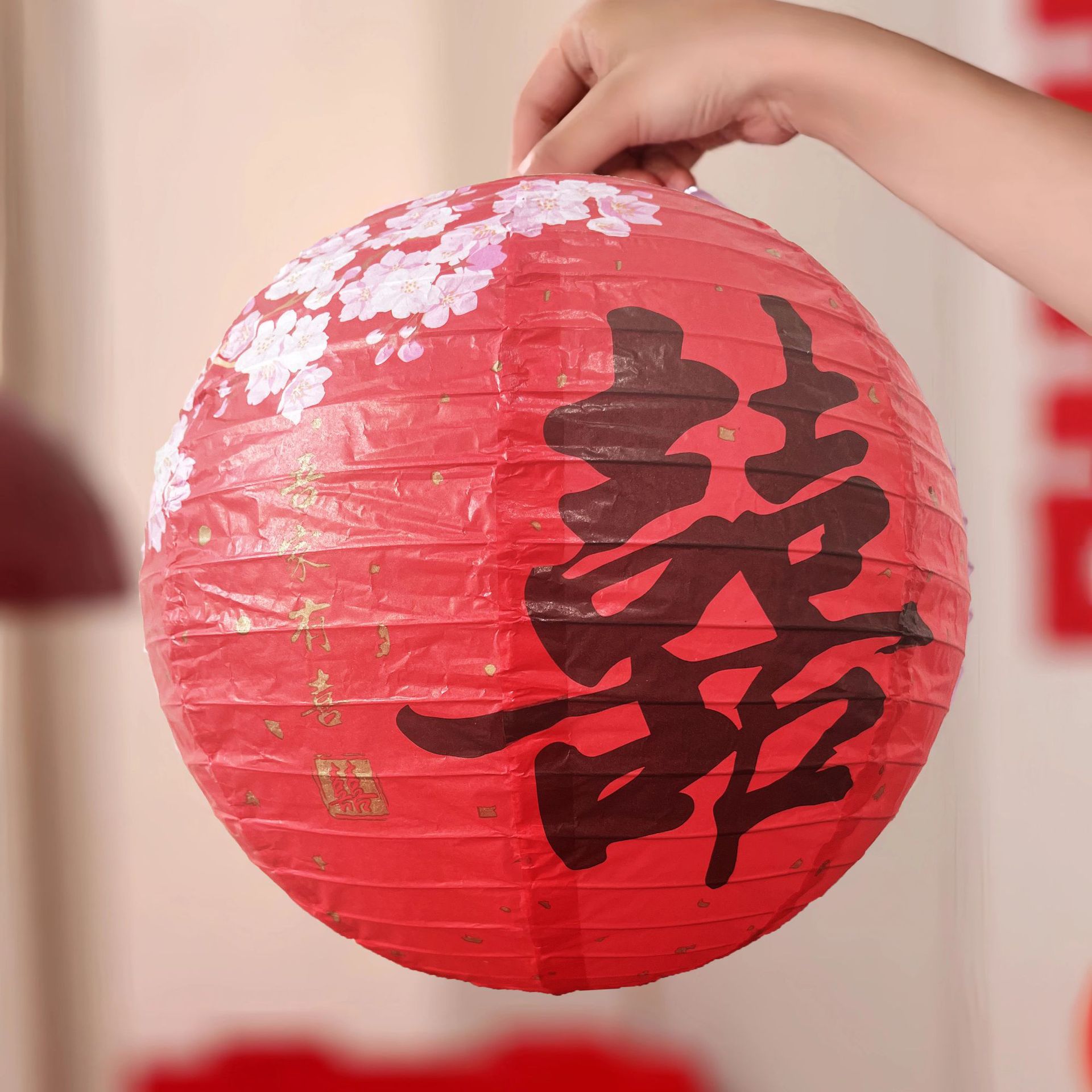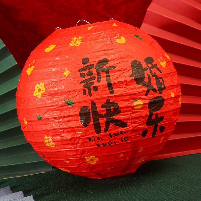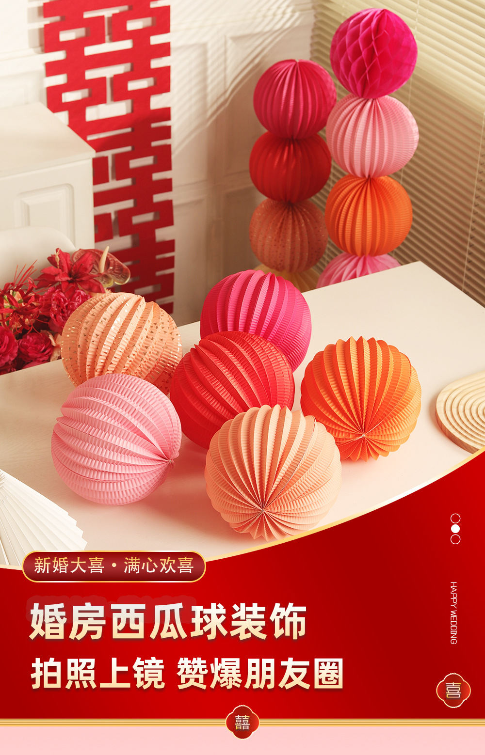 结婚房布置场景装饰西瓜灯笼挂饰订婚装饰套装卧室客厅蜂窝球纸球