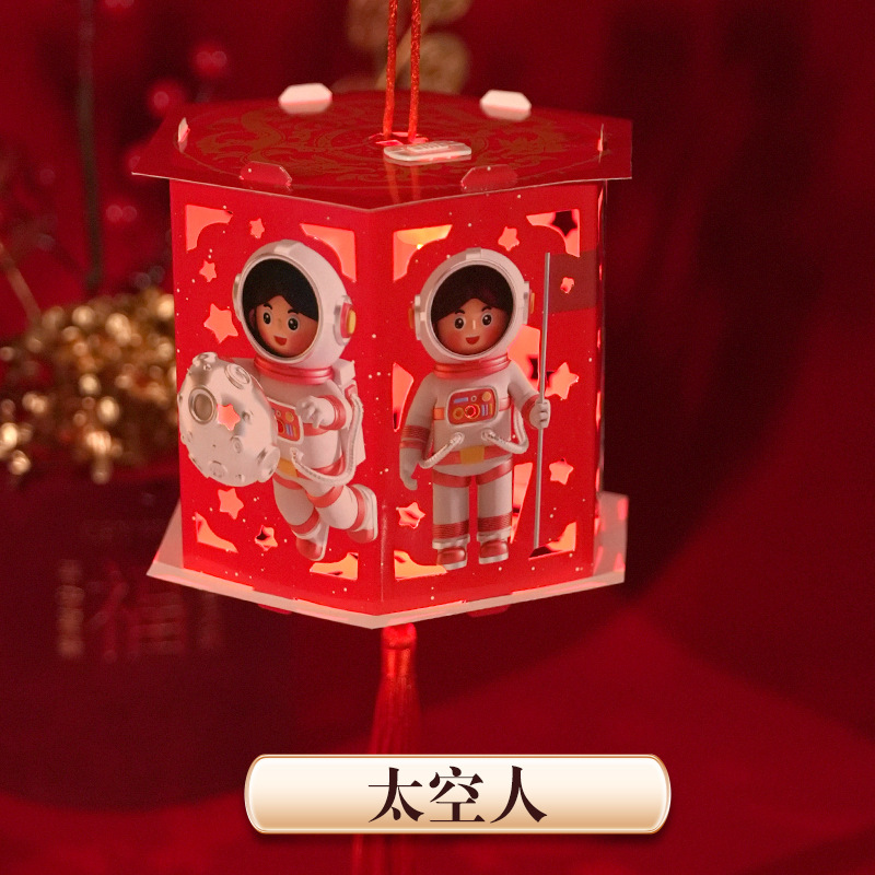 中秋发光灯笼投影走马灯儿童手工diy材料包led手提花灯地摊批发