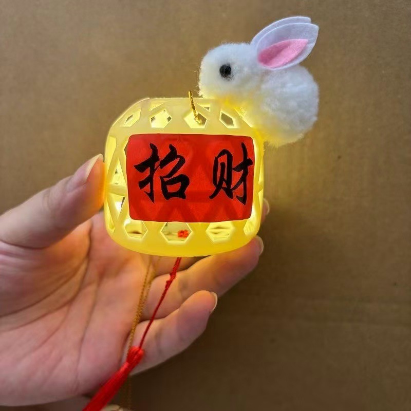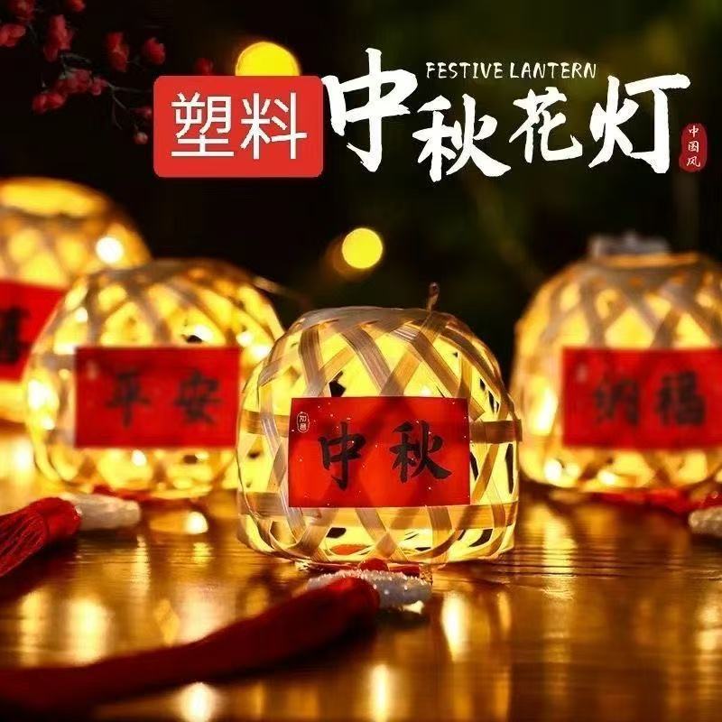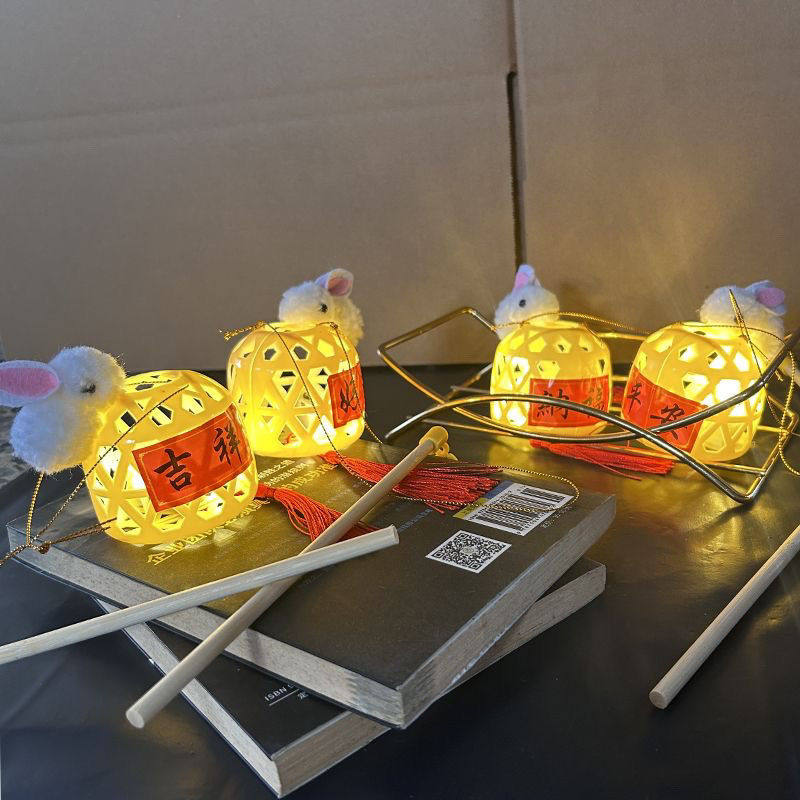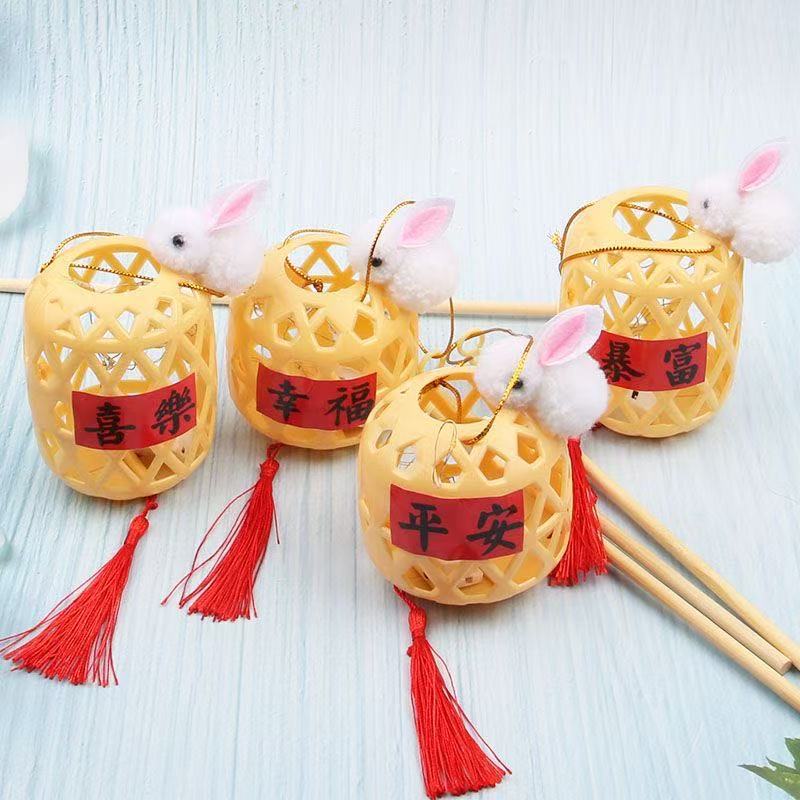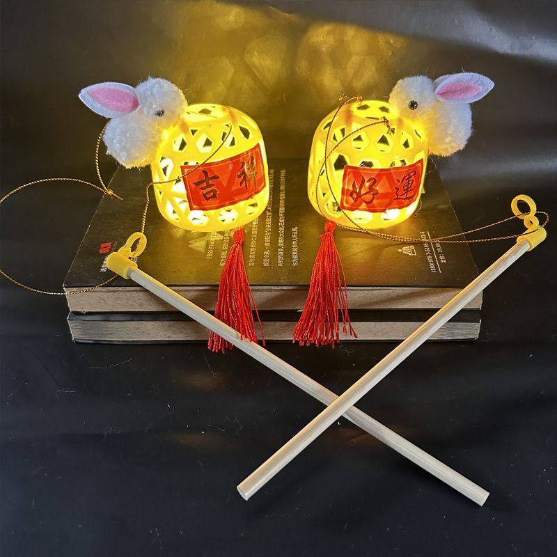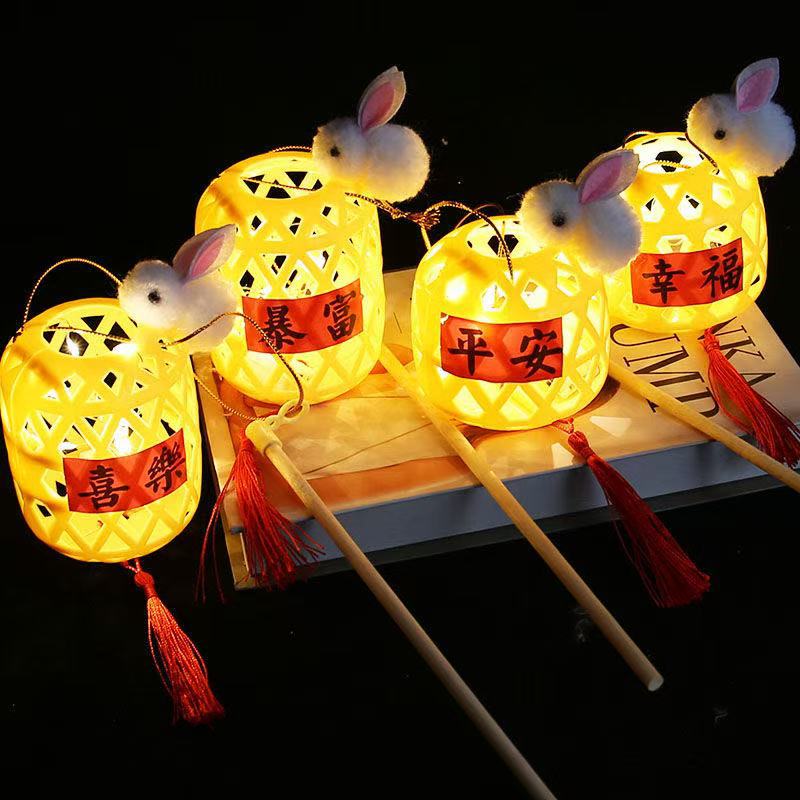 批发中秋节日儿童礼品玩具夜市摆地摊仿竹编手提发光兔子古风灯笼