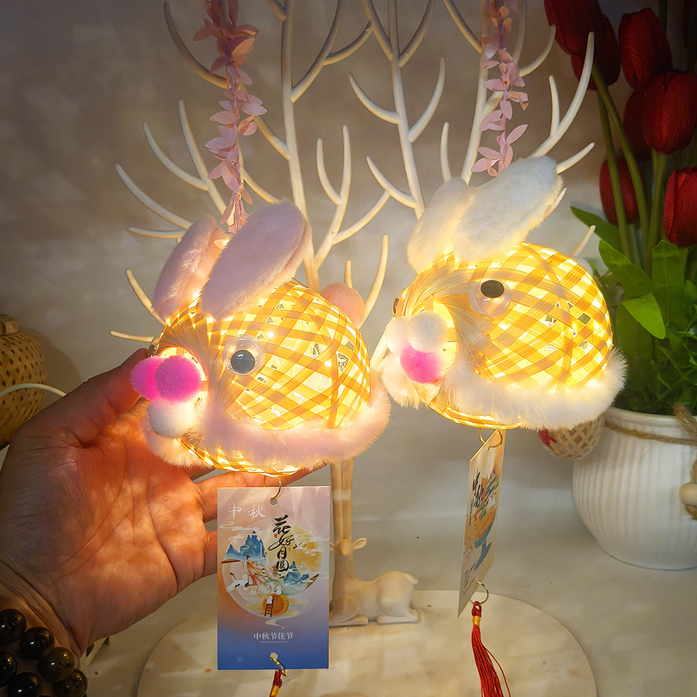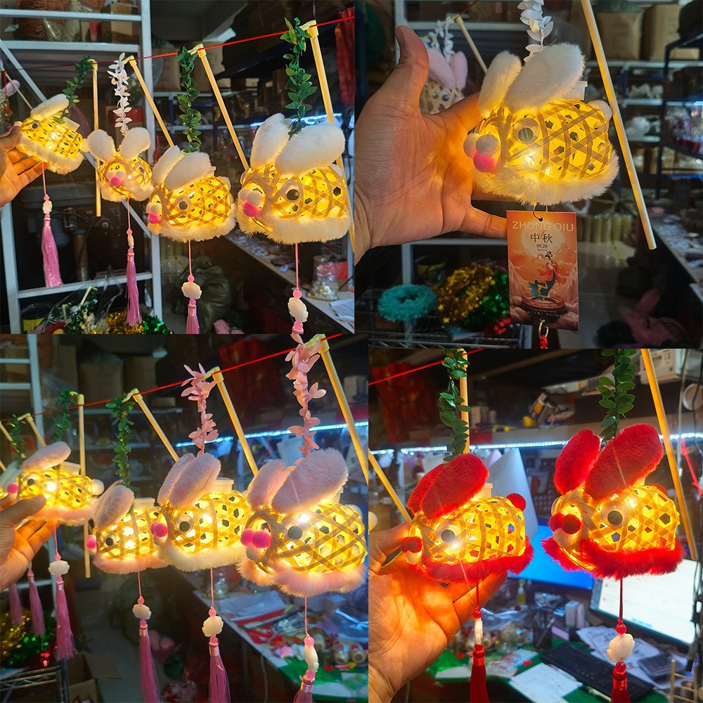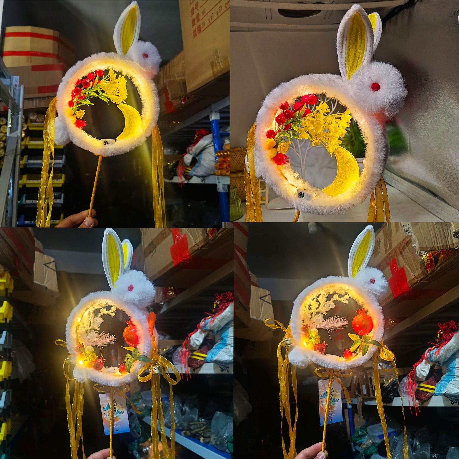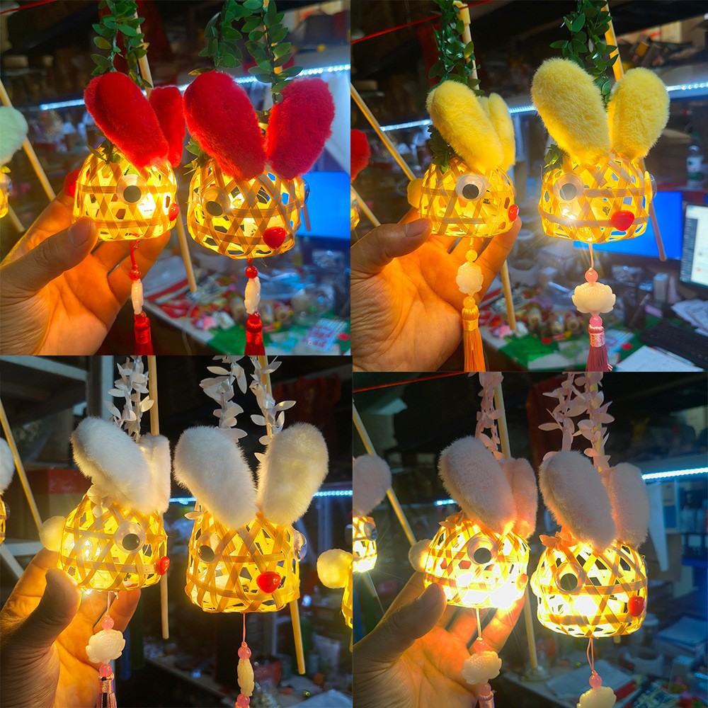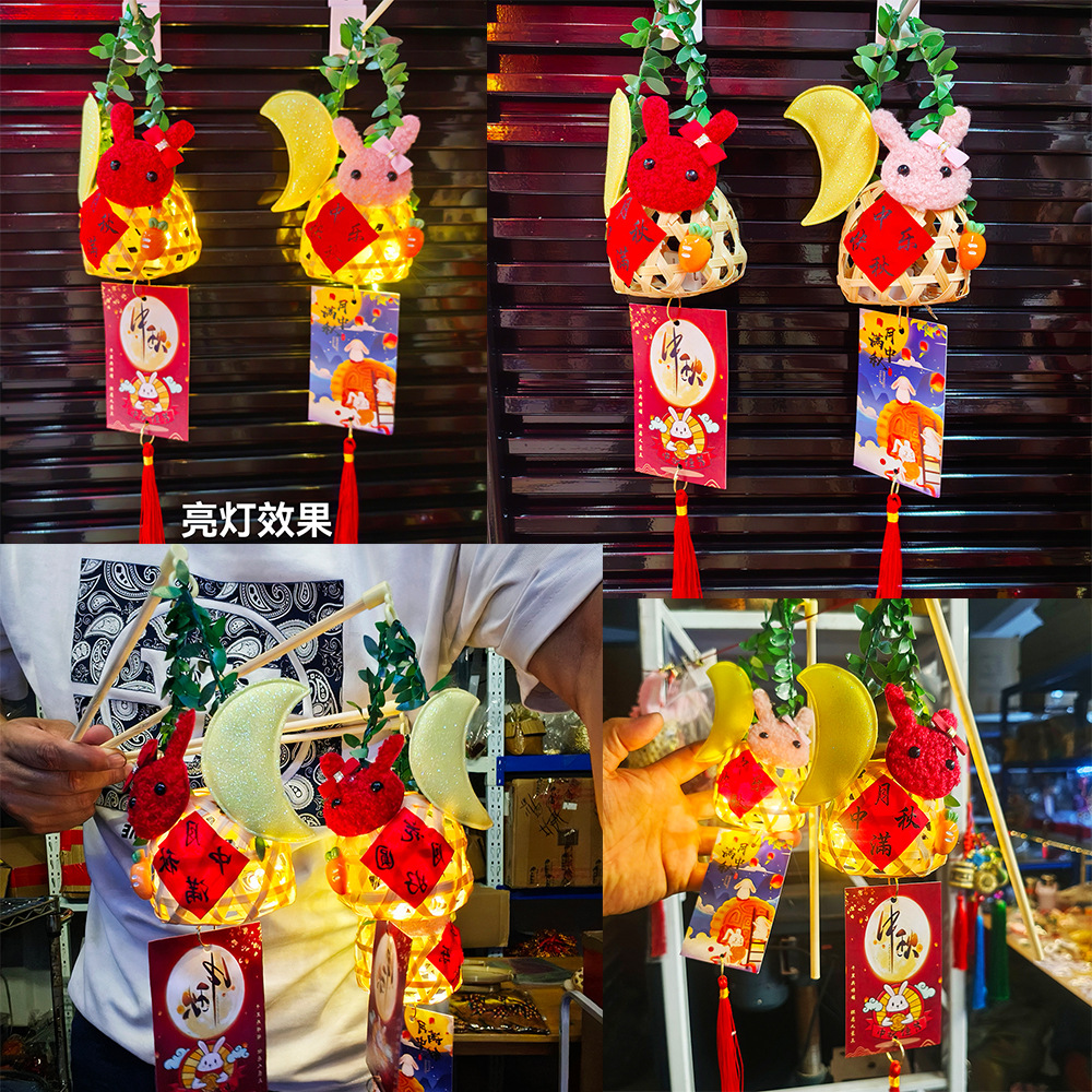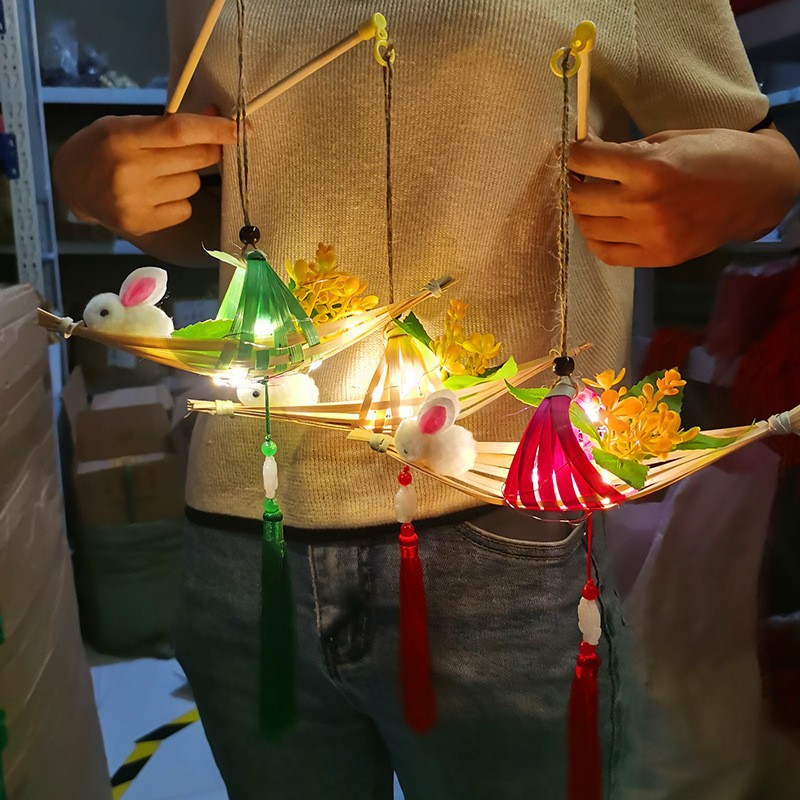 中秋鱼灯月亮船铃兰花灯笼发光夜游鞭炮音乐竹编手提毛绒兔子灯笼