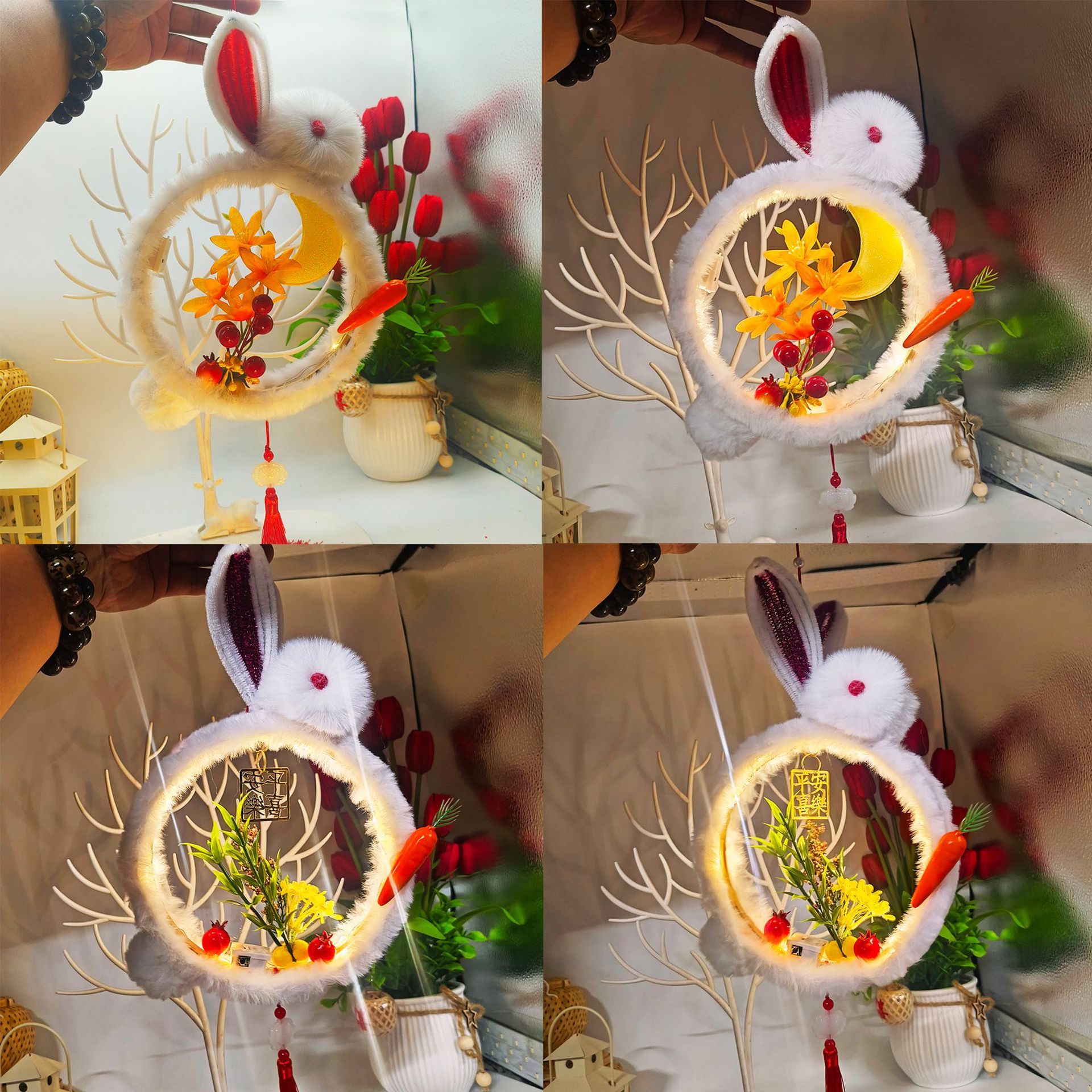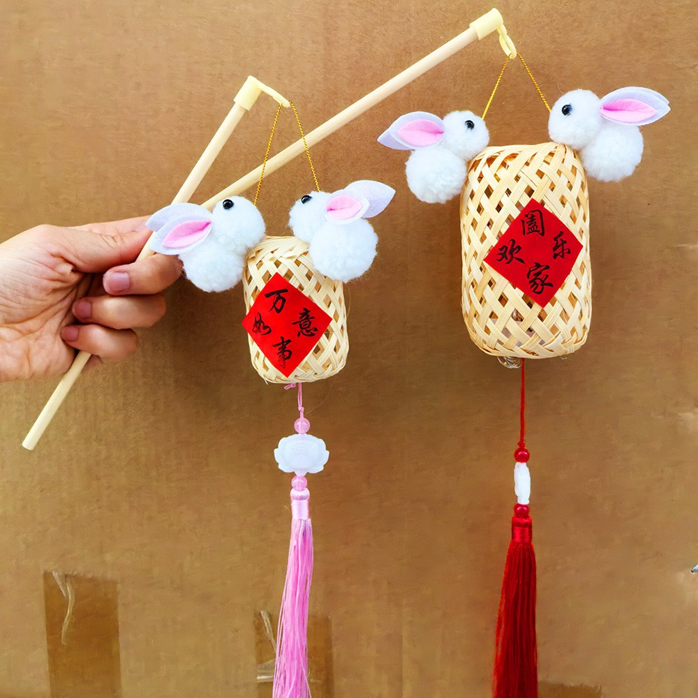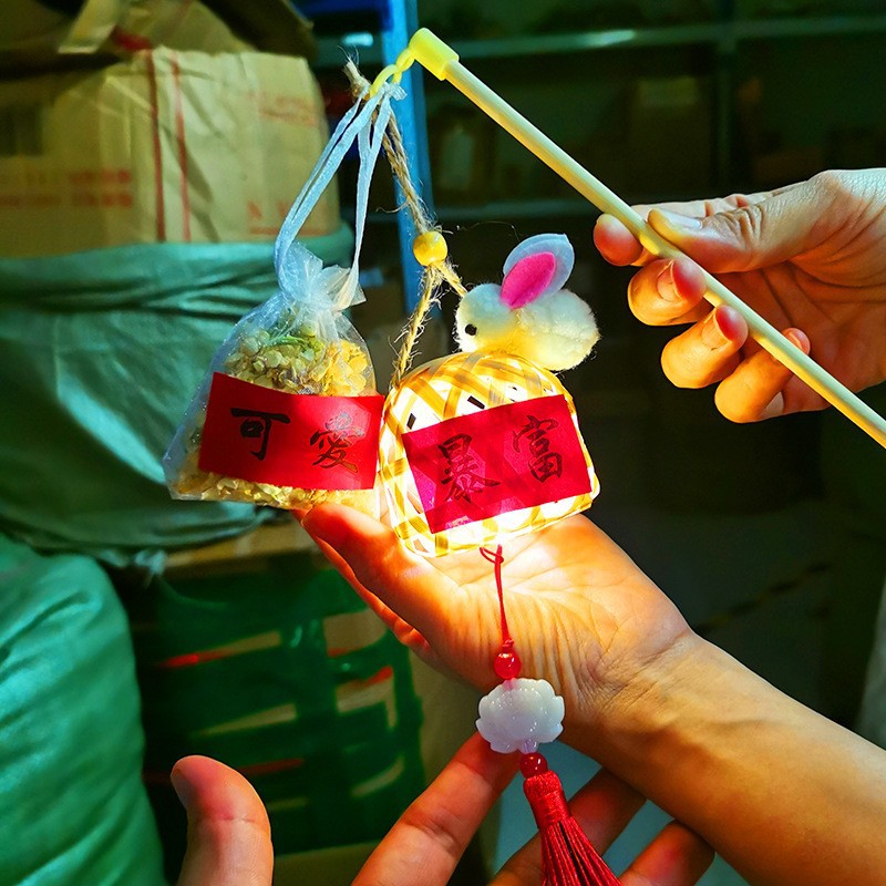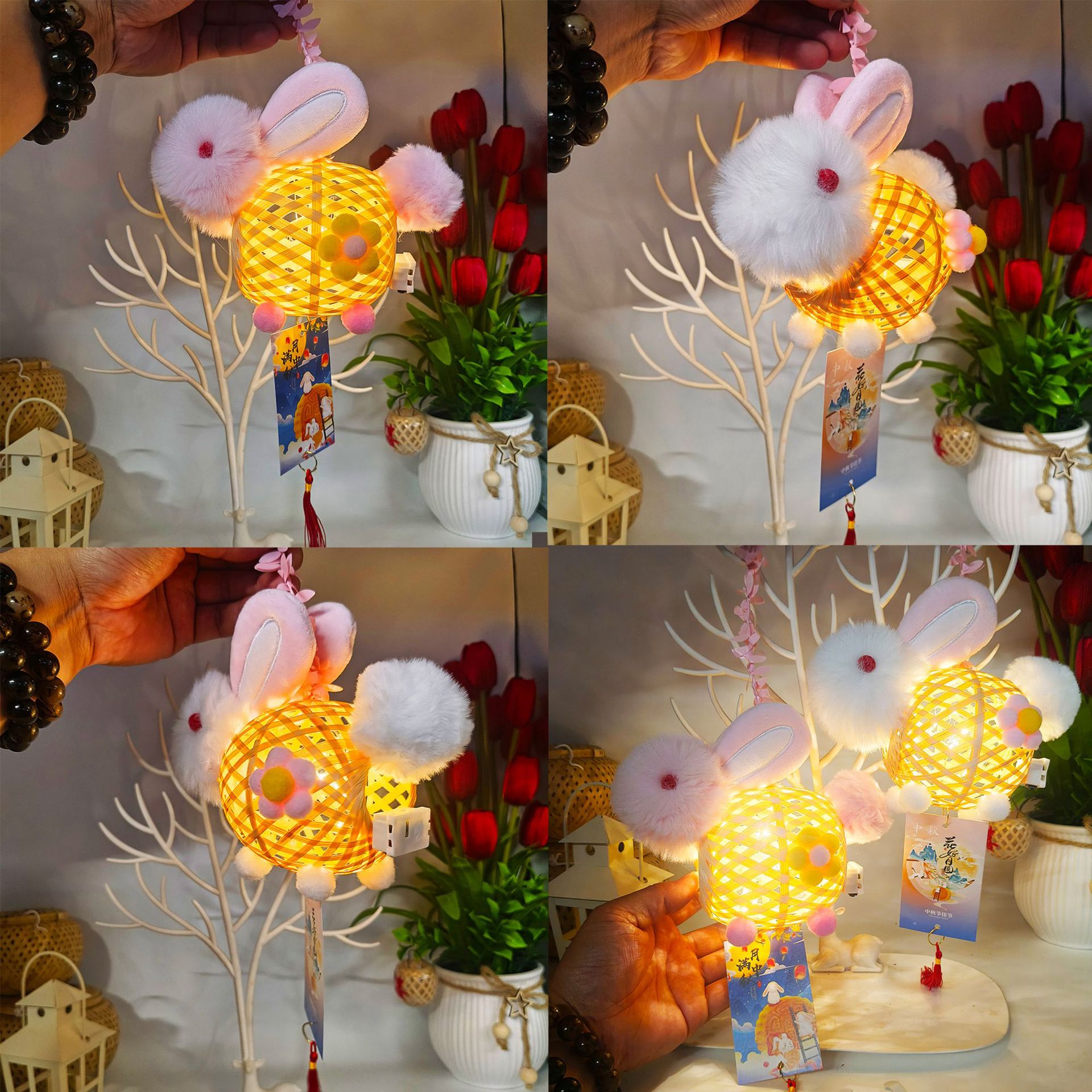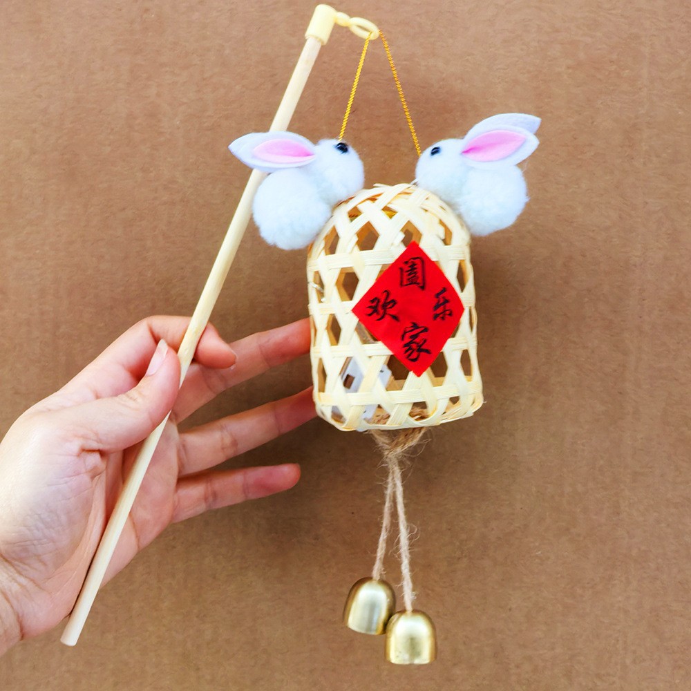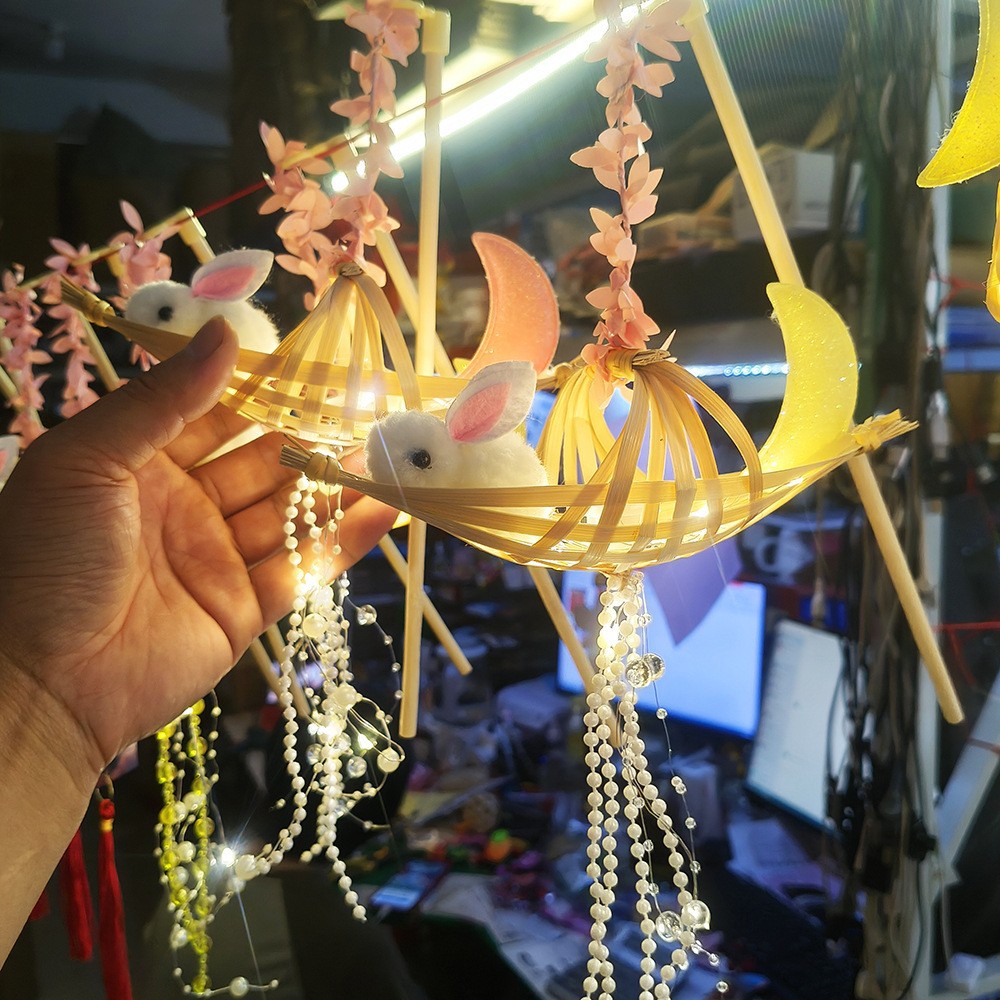 中秋鱼灯月亮船铃兰花灯笼发光夜游鞭炮音乐竹编手提毛绒兔子灯笼