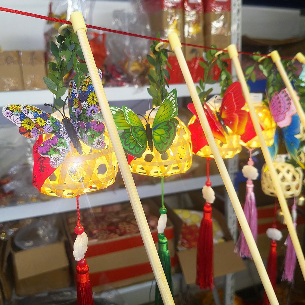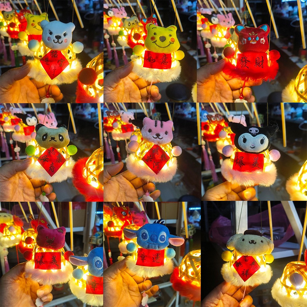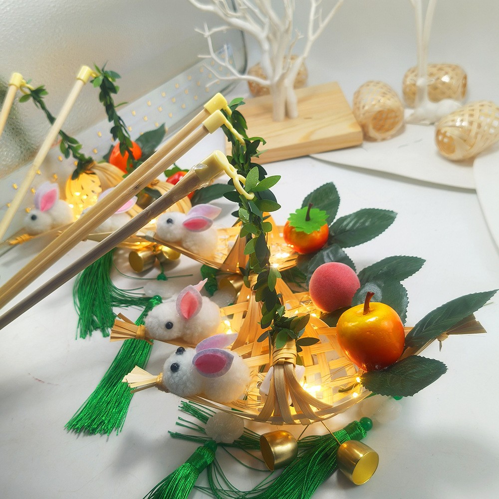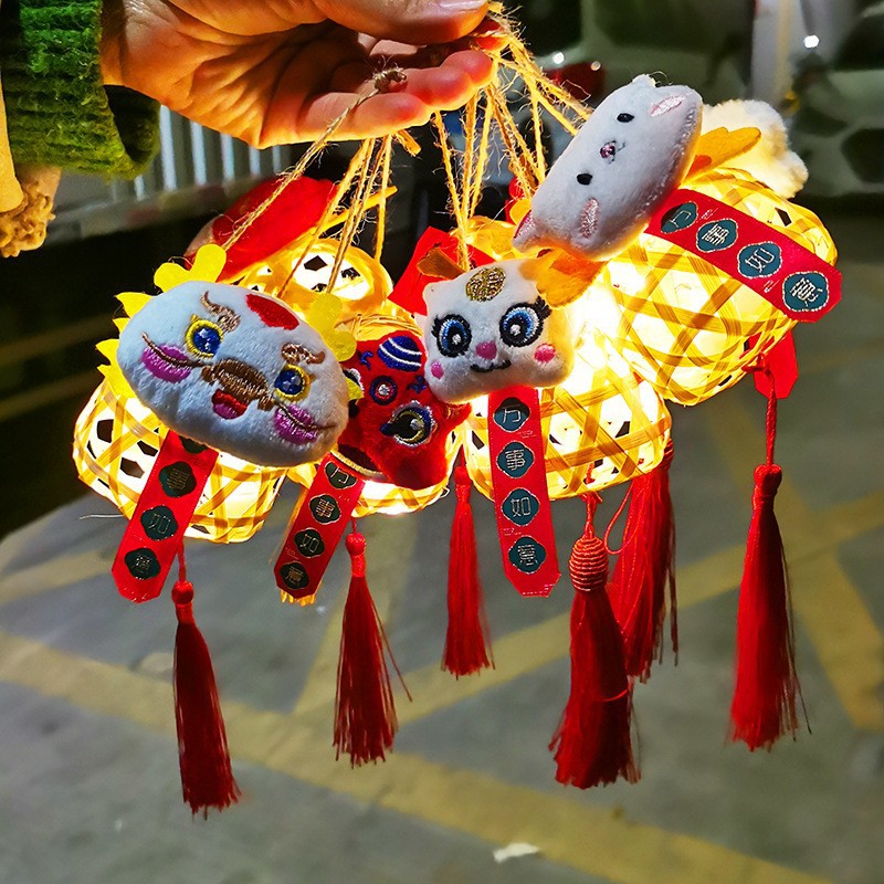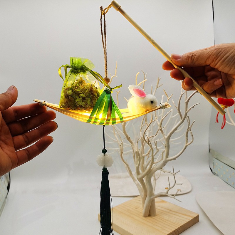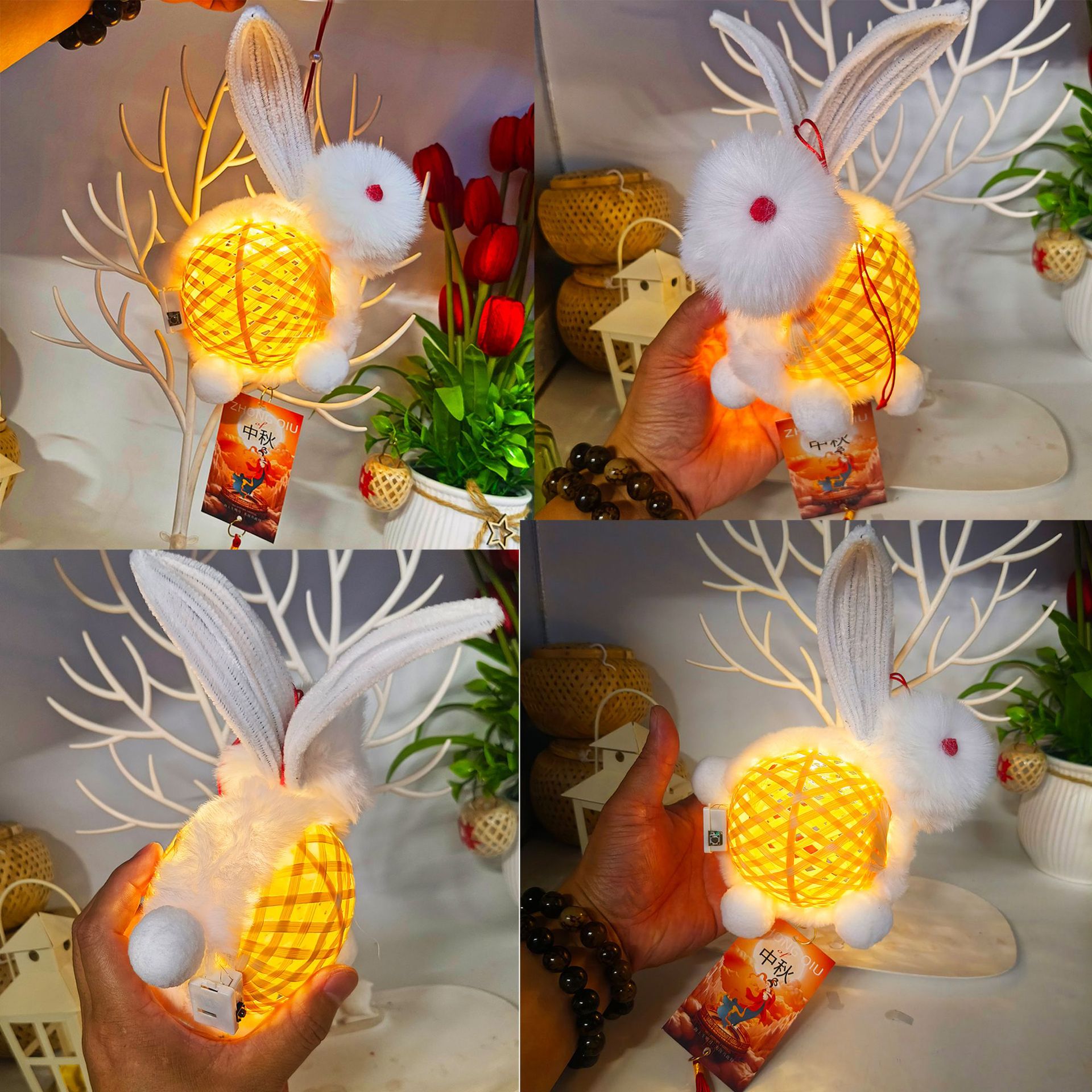 中秋鱼灯月亮船铃兰花灯笼发光夜游鞭炮音乐竹编手提毛绒兔子灯笼