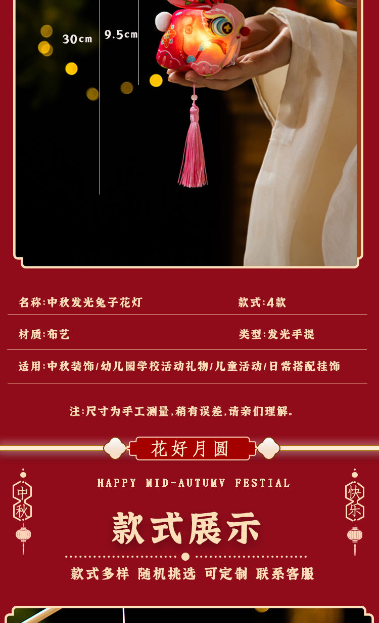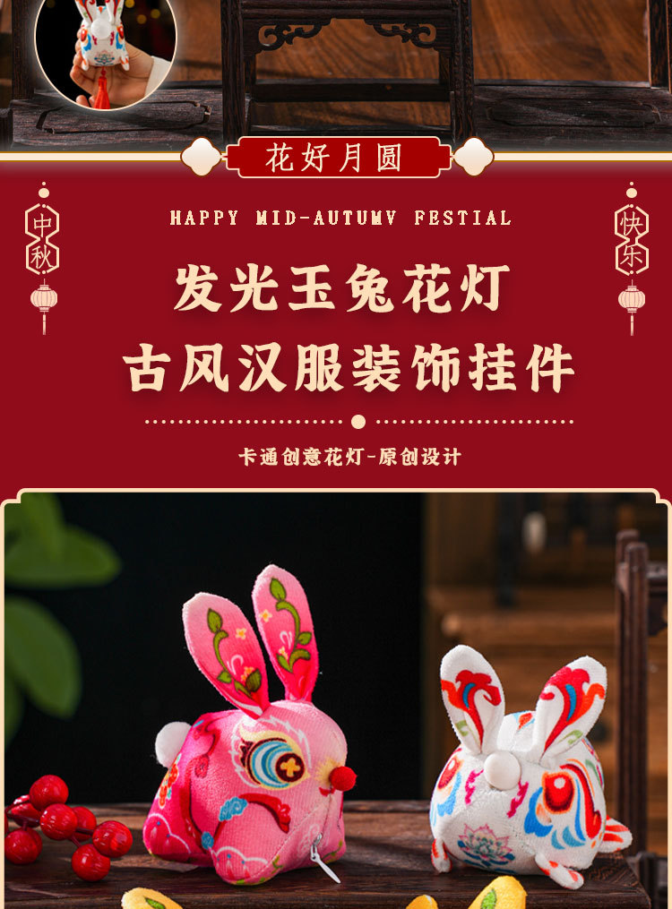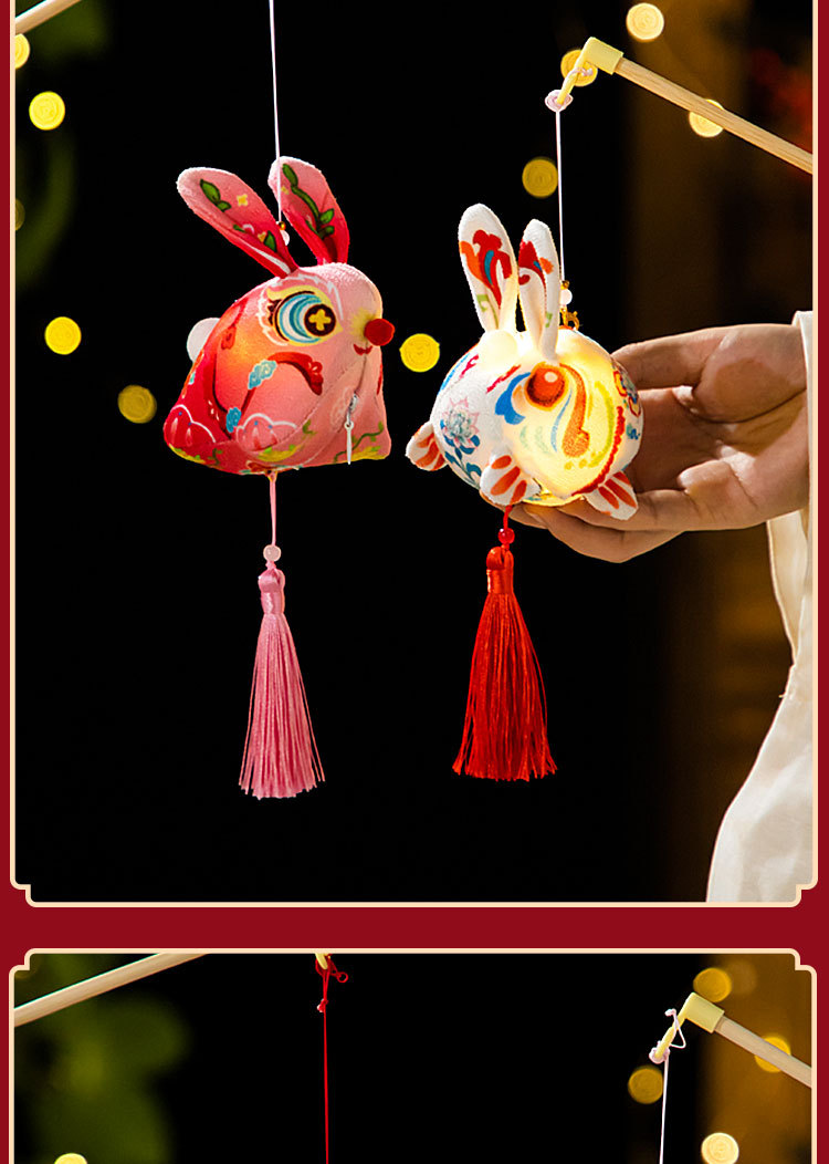 重阳节手提灯笼古风兔子花灯diy材料包复古挂饰发光灯笼中秋礼品
