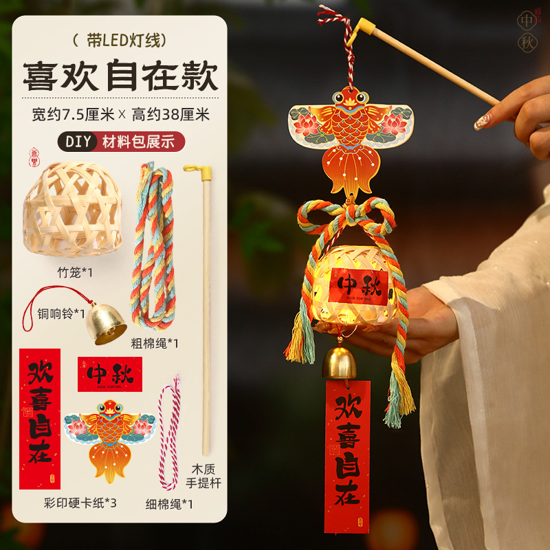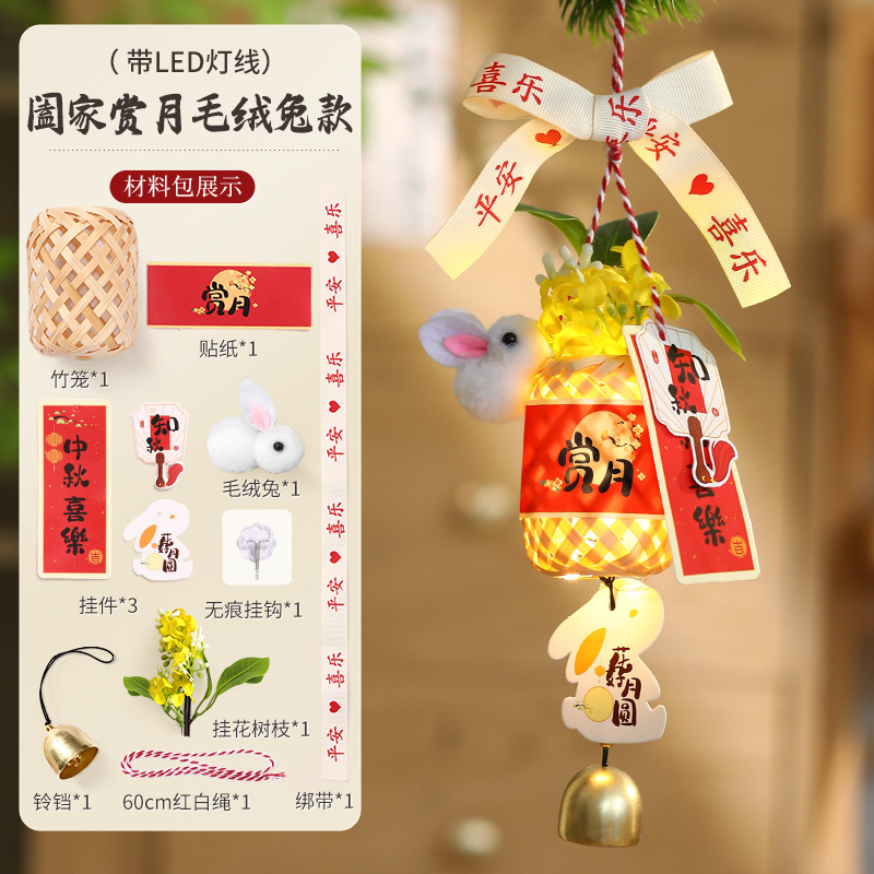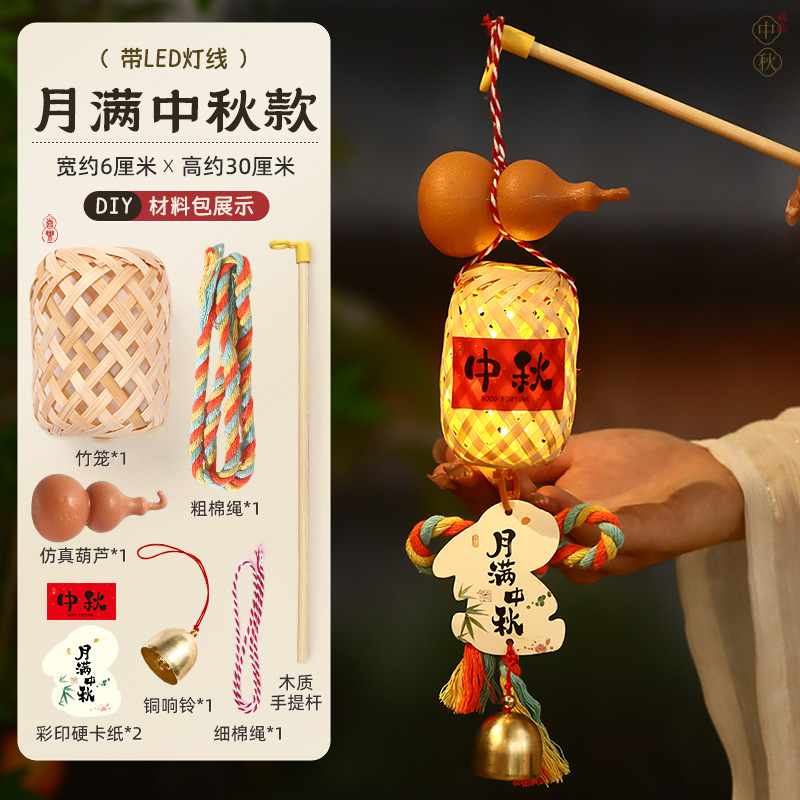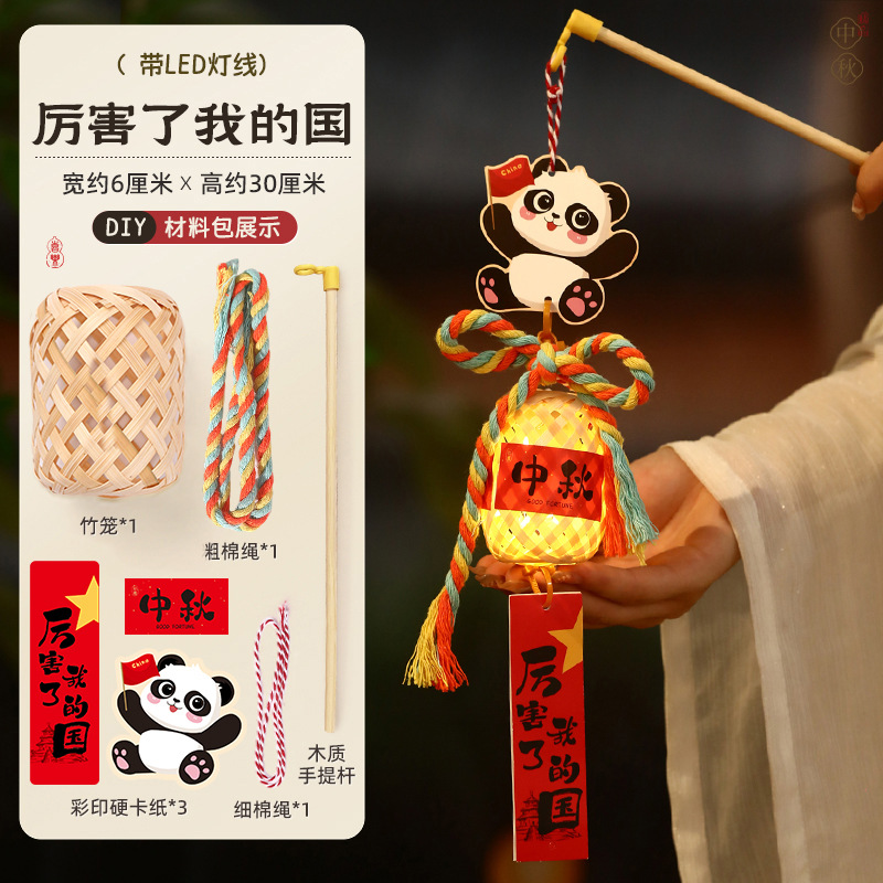 中秋国庆2025新款灯笼竹编小灯笼手工diy材料包古风手提发光儿童