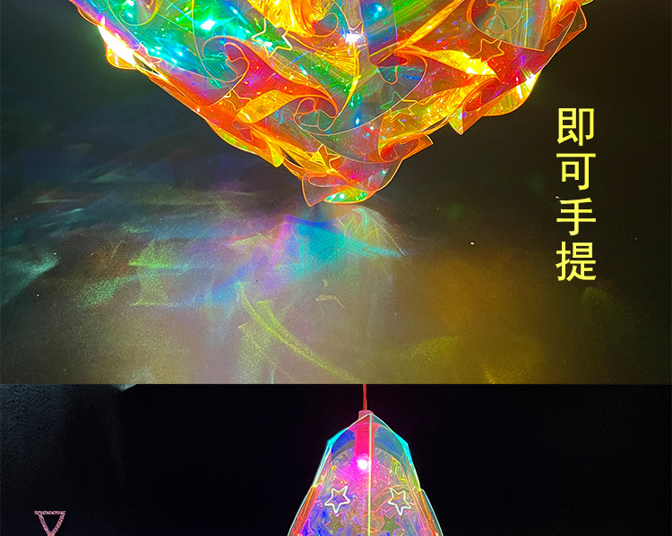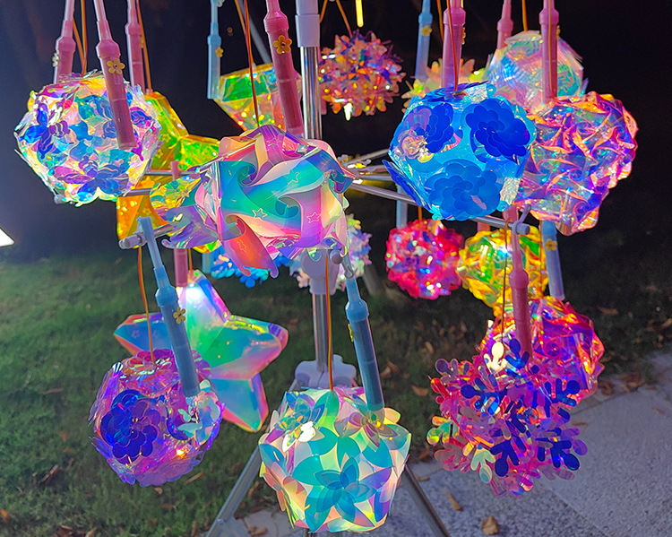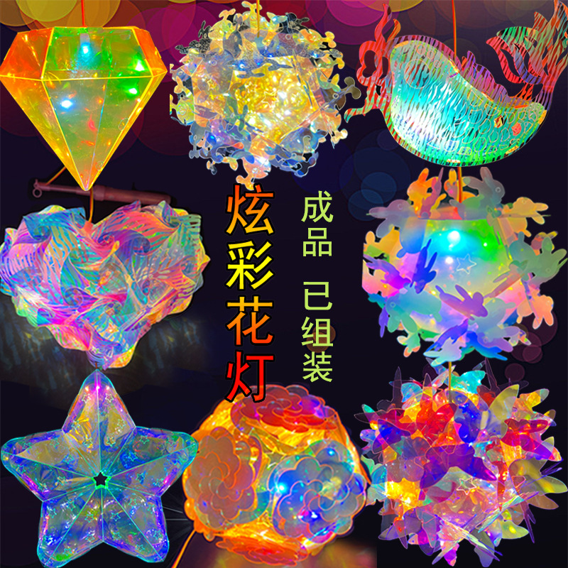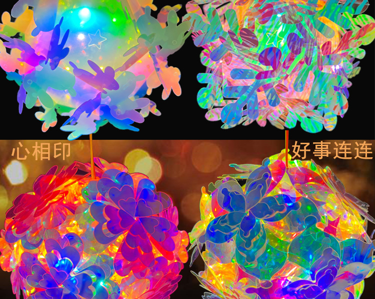 成品镭射炫彩花灯批发儿童手提发光中秋春节元宵装饰摆摊喜庆灯笼