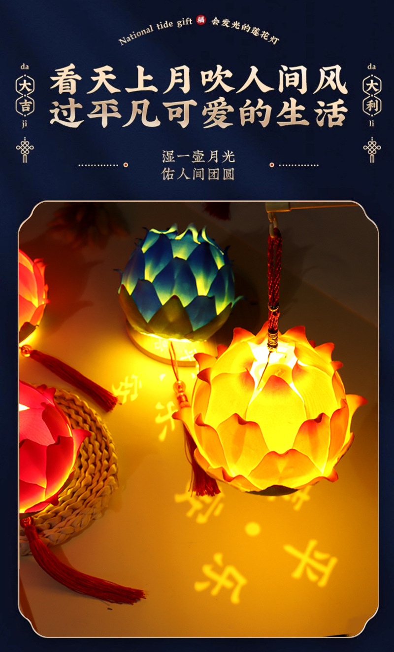 厂家直销古风灯笼国潮小花灯莲花灯手提花灯儿童手工手提节日装饰