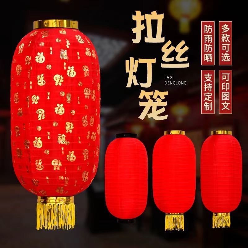 批发大红冬瓜灯笼手拿广告印字舞蹈装饰长款拉丝可折叠跳舞灯笼