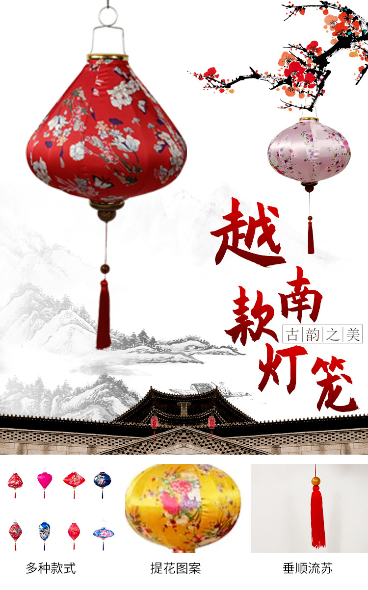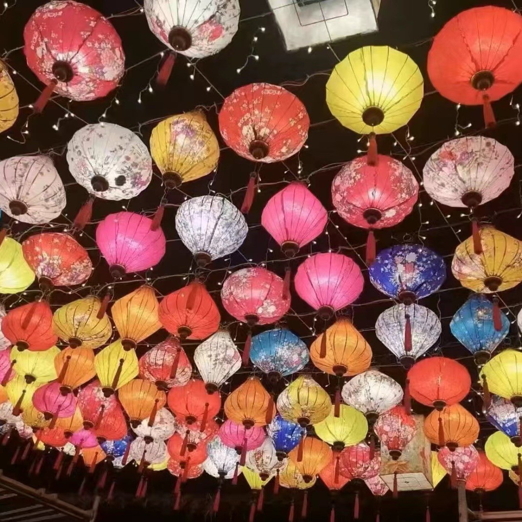 户外景区灯笼古风街道花灯绸缎彩色创意发光国潮异形越南国潮灯笼