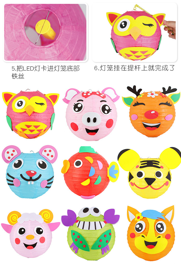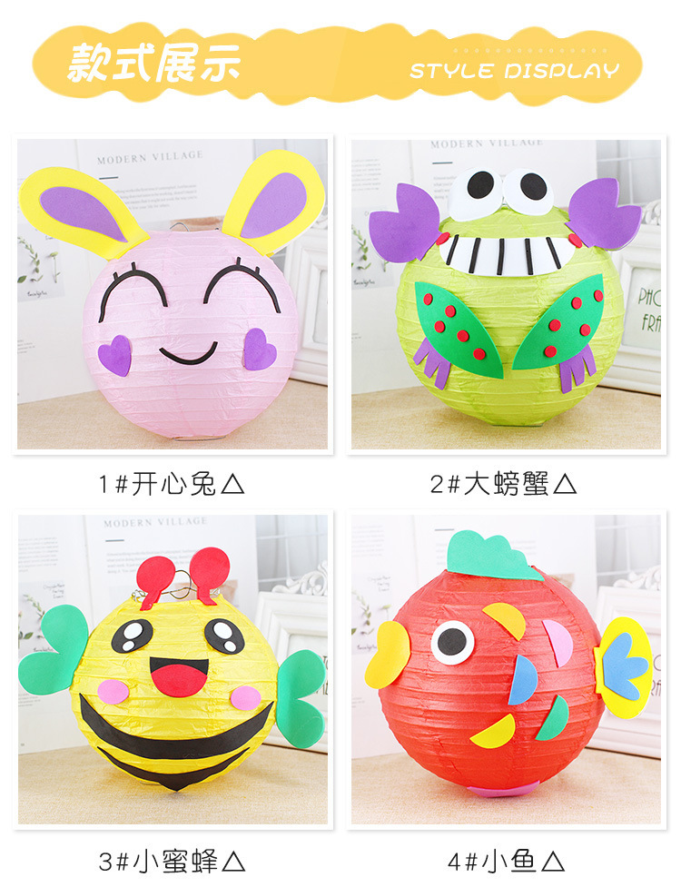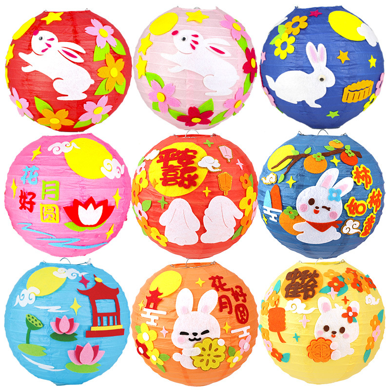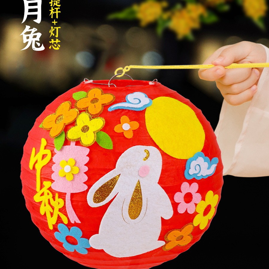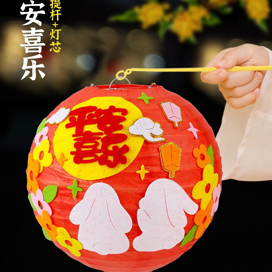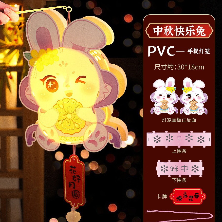 元旦节灯笼幼儿园兔子卡通手提发光灯笼儿童DIY手工制作材料玩具