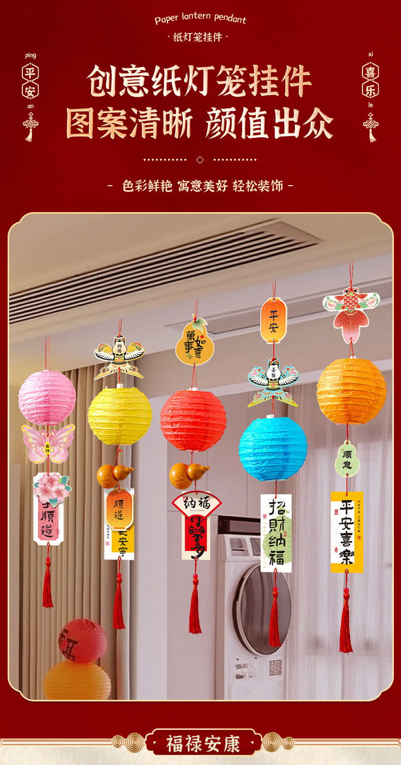 新年喜庆挂件纸灯笼中式中秋节宫灯装饰布置diy发光灯笼批发
