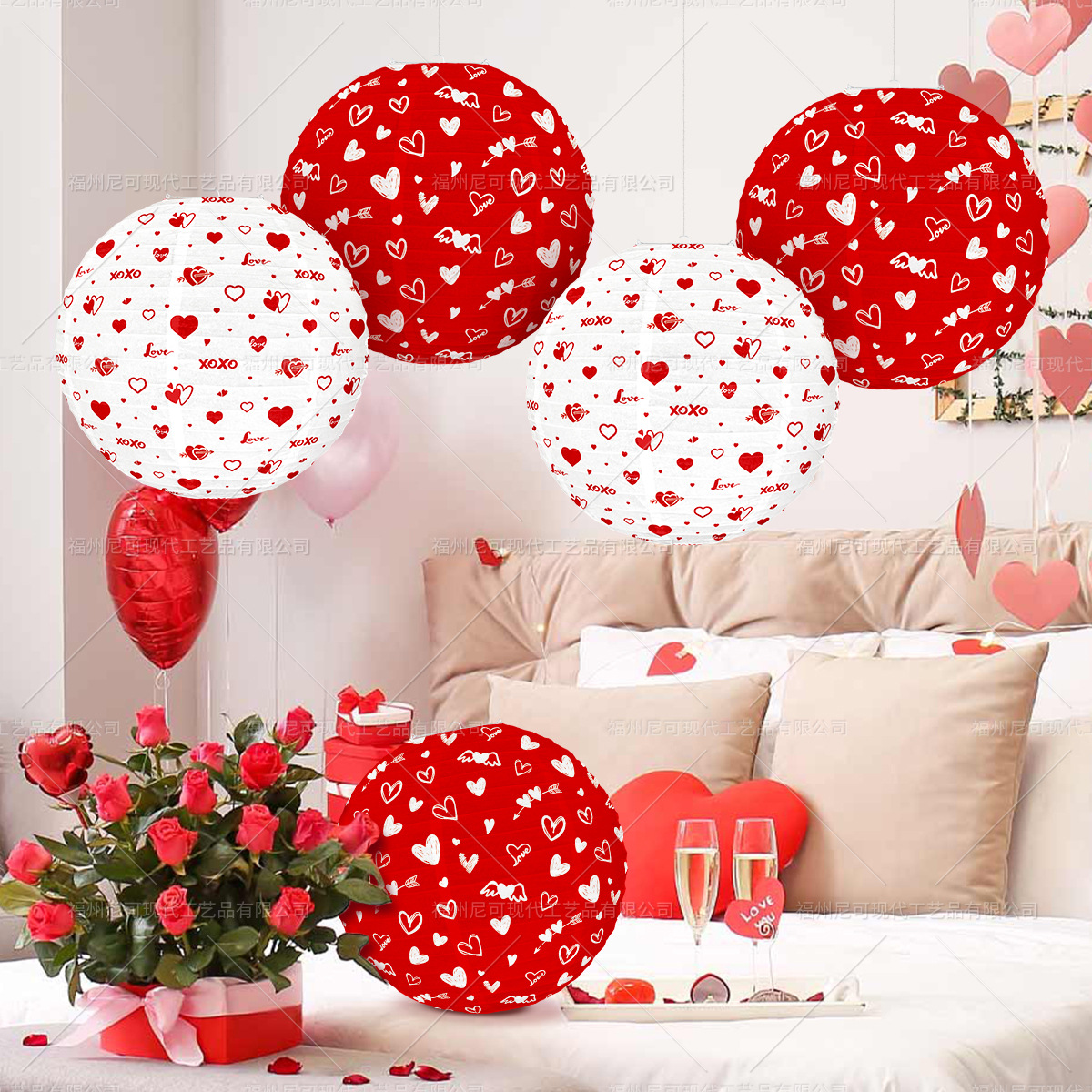 情人节爱心灯笼装饰七夕主题婚礼派对悬挂纸灯笼结婚婚房布置用品