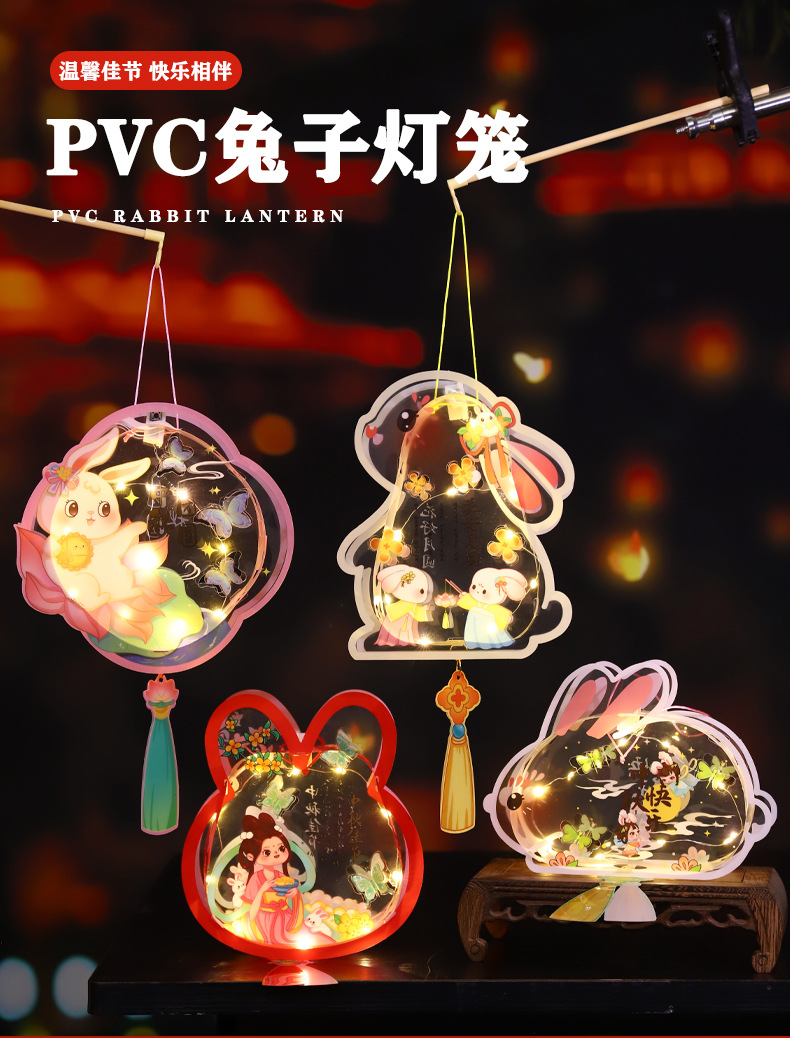 中秋节灯笼手提花灯发光灯笼宫灯儿童手工制作diy材料包兔子灯笼