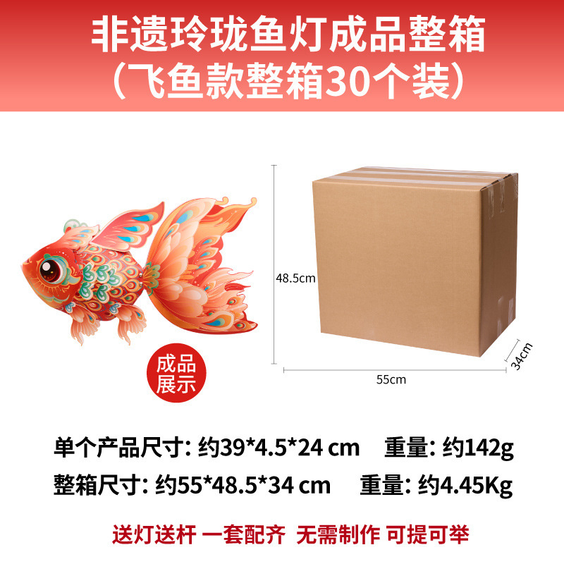 马年新春国潮玲珑鱼灯 手工diy儿童动手制作材料手提发光灯笼