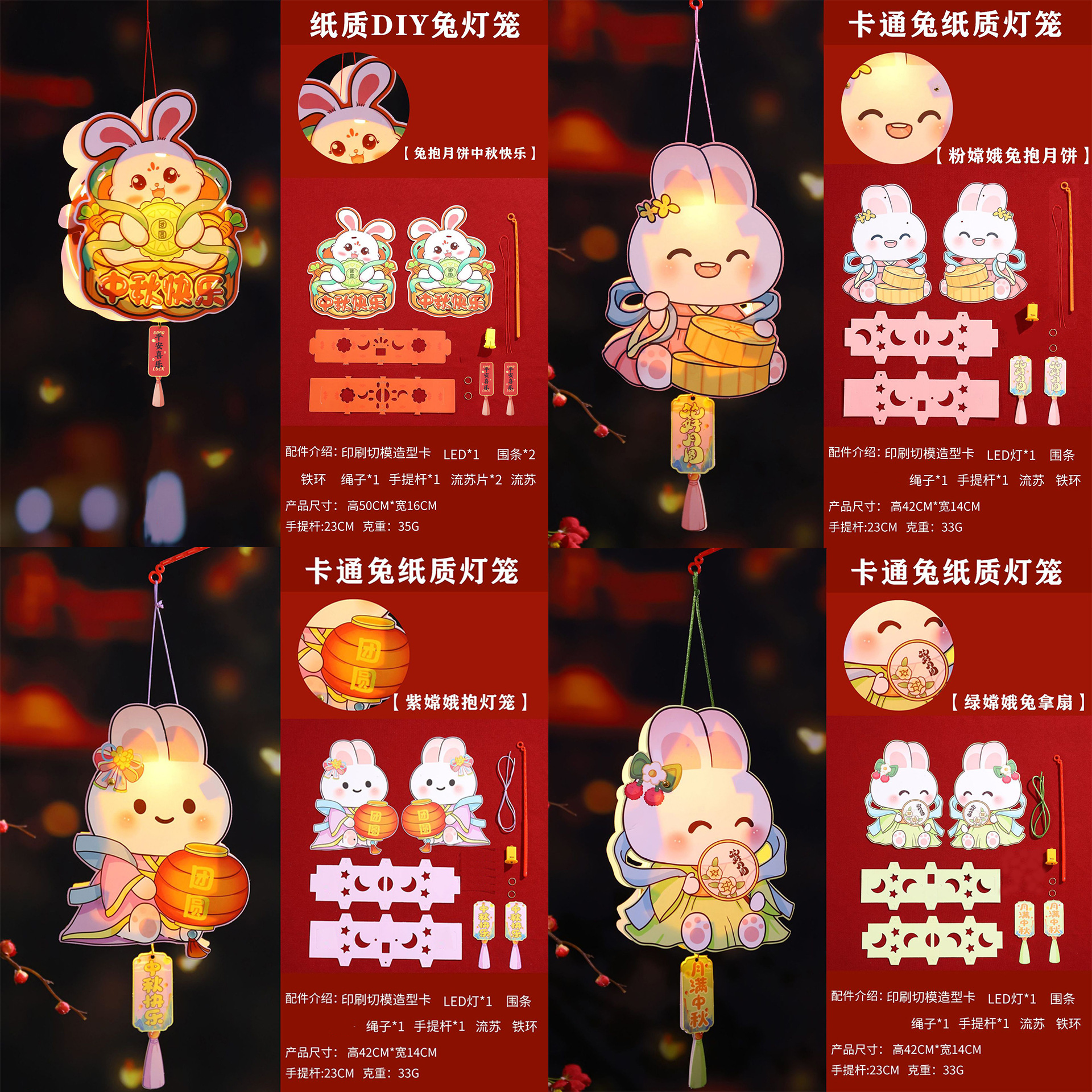 中秋节国风户外手提灯笼儿童diy材料包制作玩具兔子花灯月亮手工