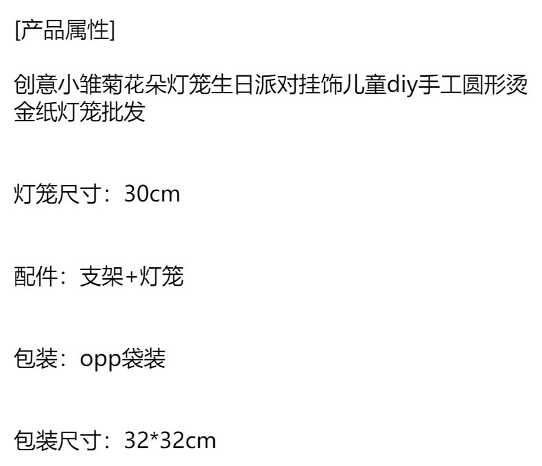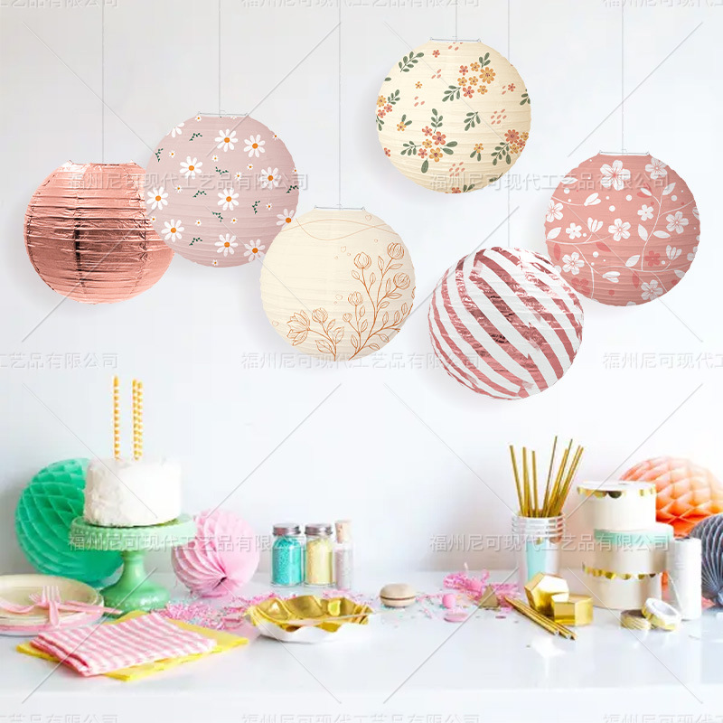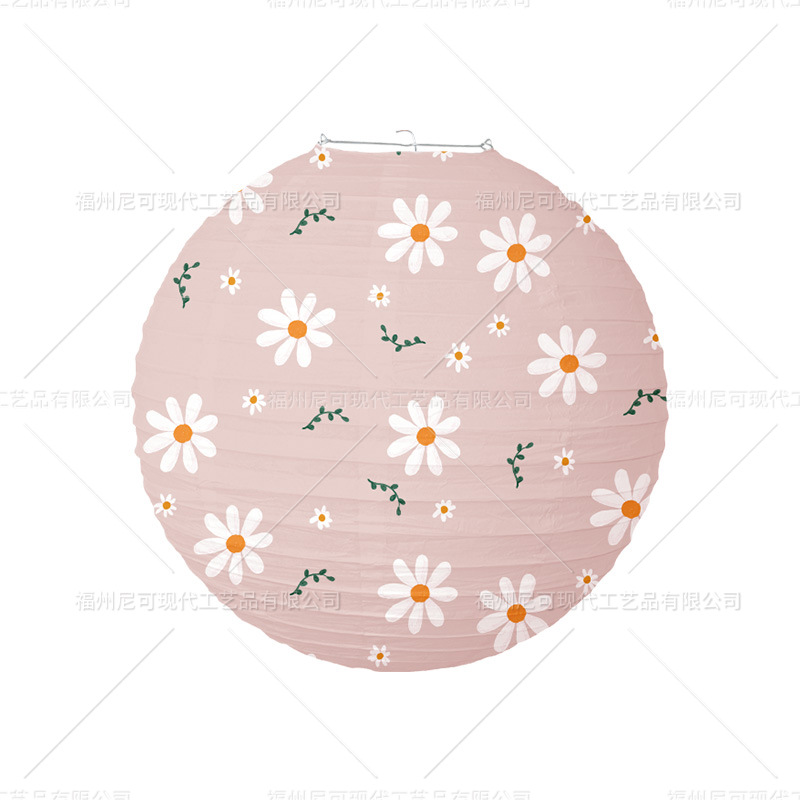 创意小雏菊花朵灯笼生日派对挂饰儿童diy手工圆形烫金藕粉纸灯笼