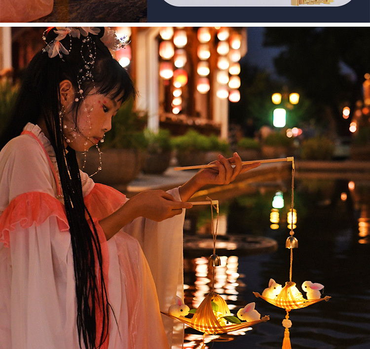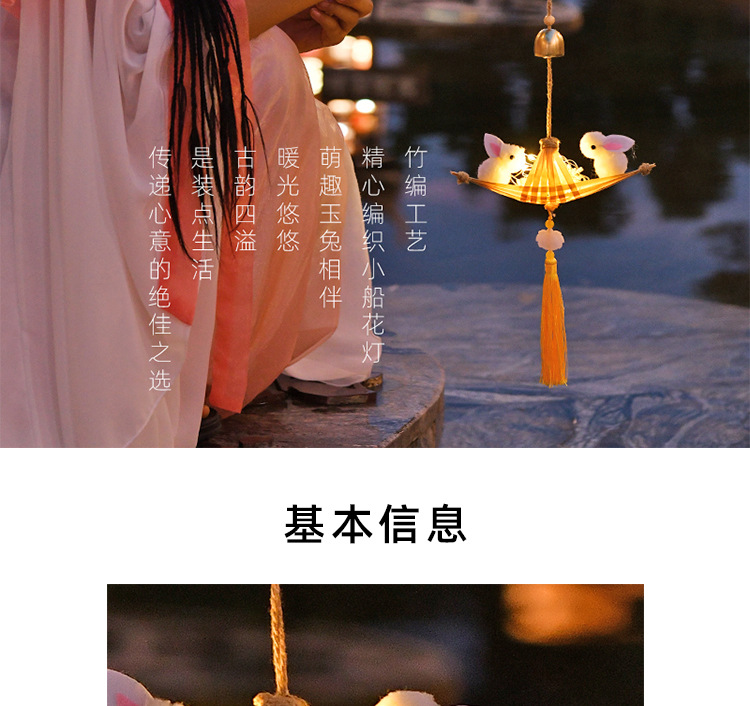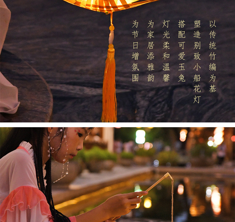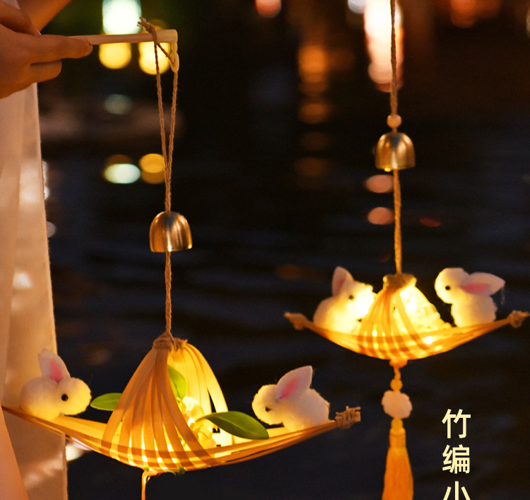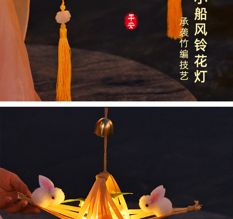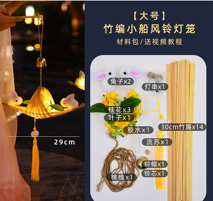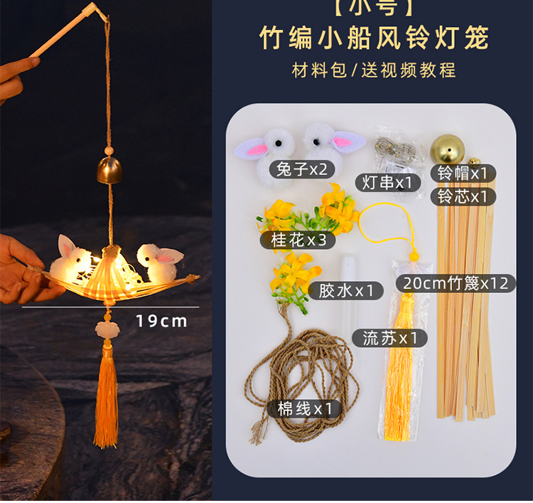 元旦节竹编风铃小船镭射灯笼手提发光古风小花灯笼diy手工材料包
