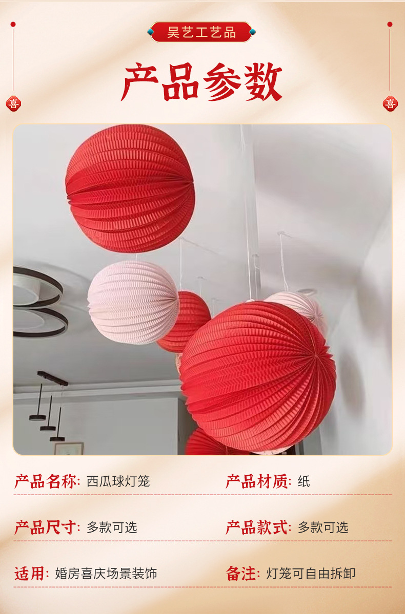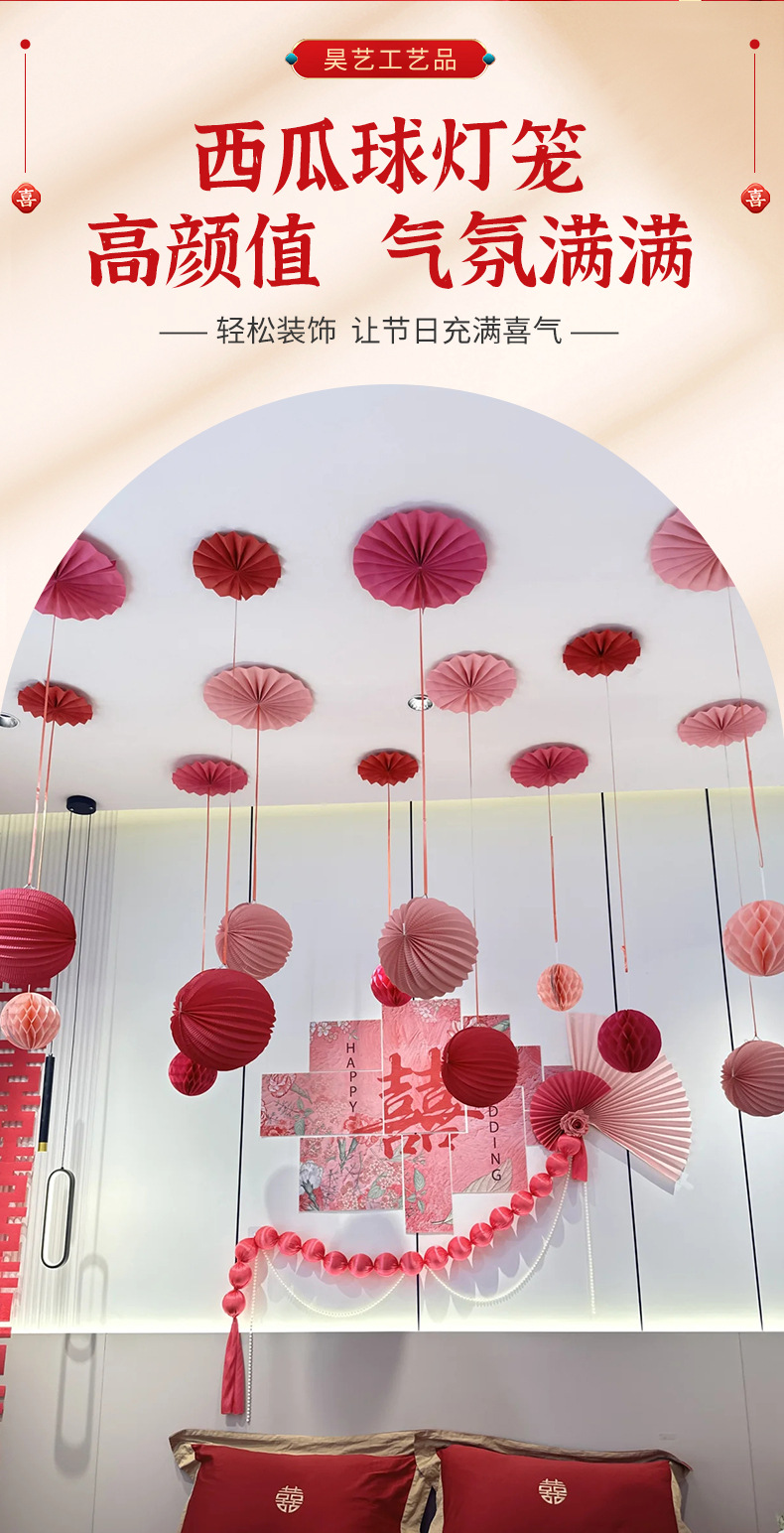 西瓜灯笼结婚卧室婚礼吊饰场景房婚喜庆灯笼场景布置新婚客厅装饰