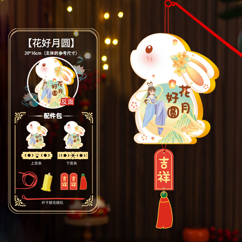 中秋节卡通灯笼发光儿童手提diy材料手工制作投影流苏兔子纸花灯