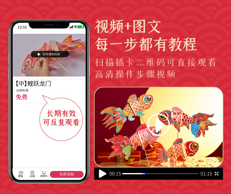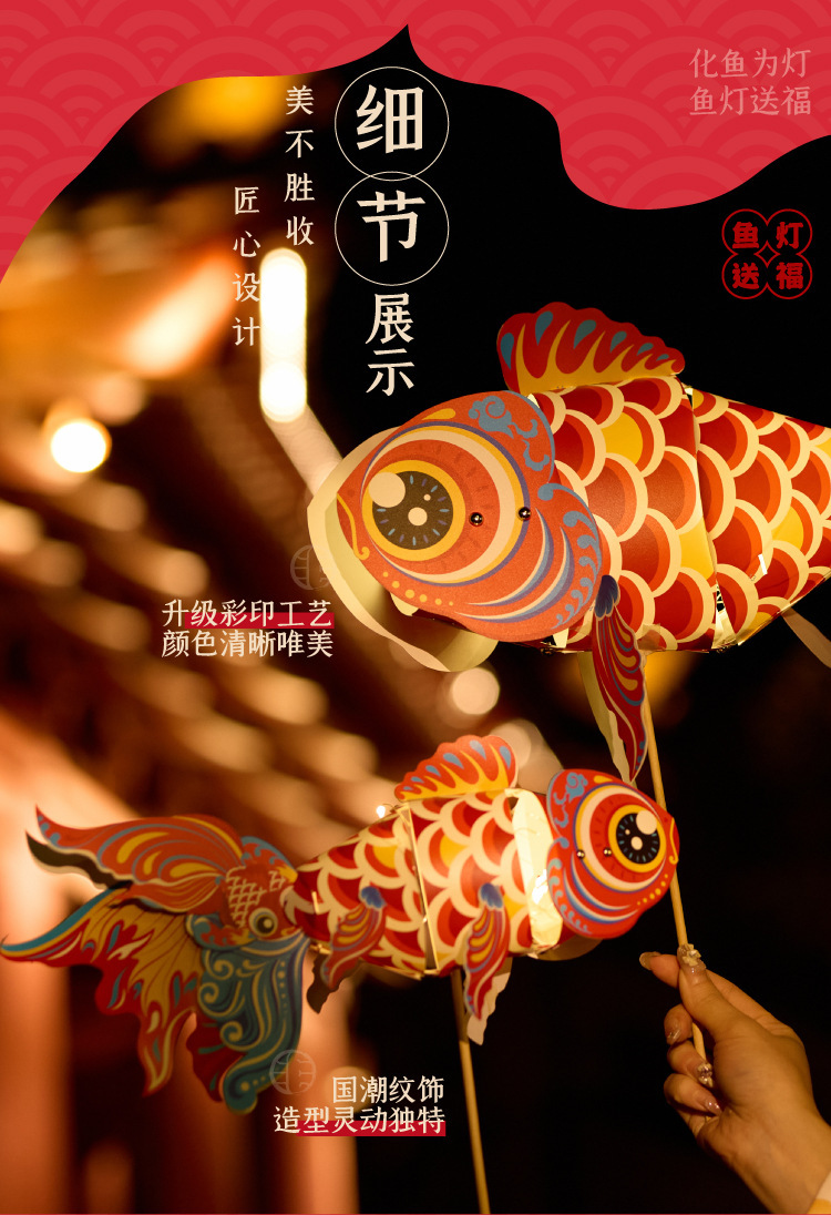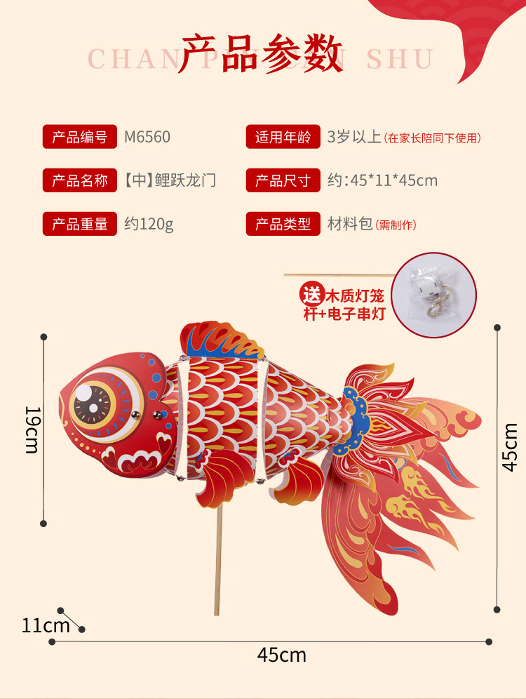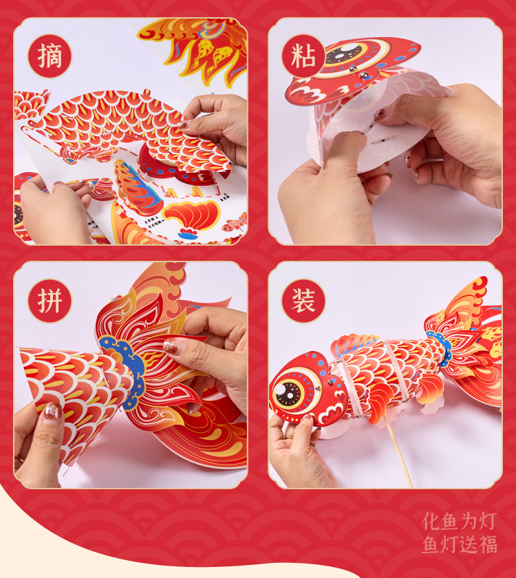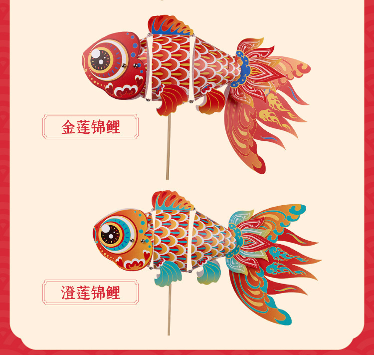 元旦马年新春锦鲤鱼灯笼手工diy幼儿园儿童制作材料国潮花灯新春