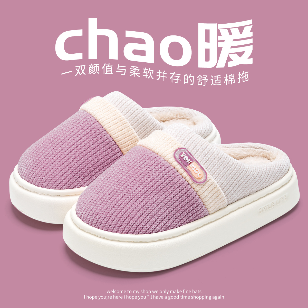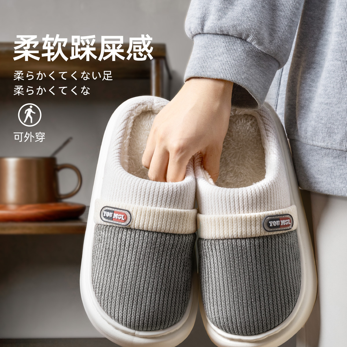 棉拖鞋男款秋冬季室内家居家2025新款厚底加绒保暖棉拖鞋男士外穿