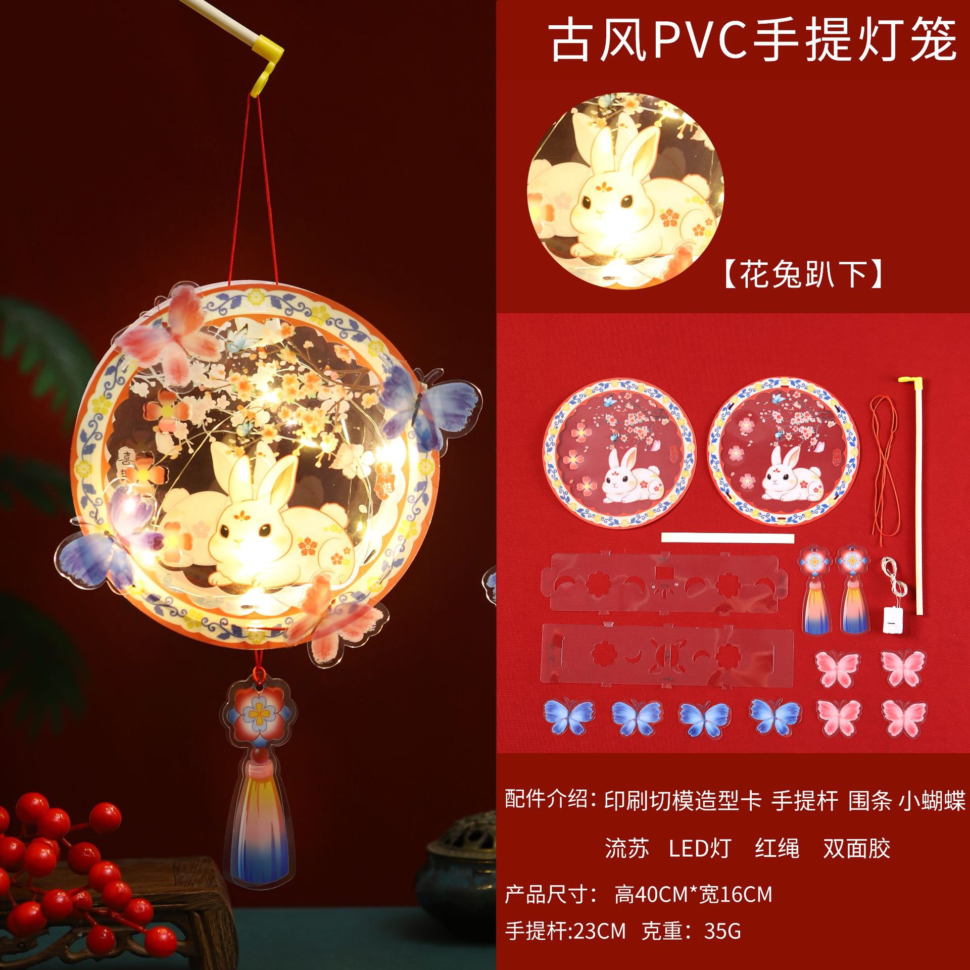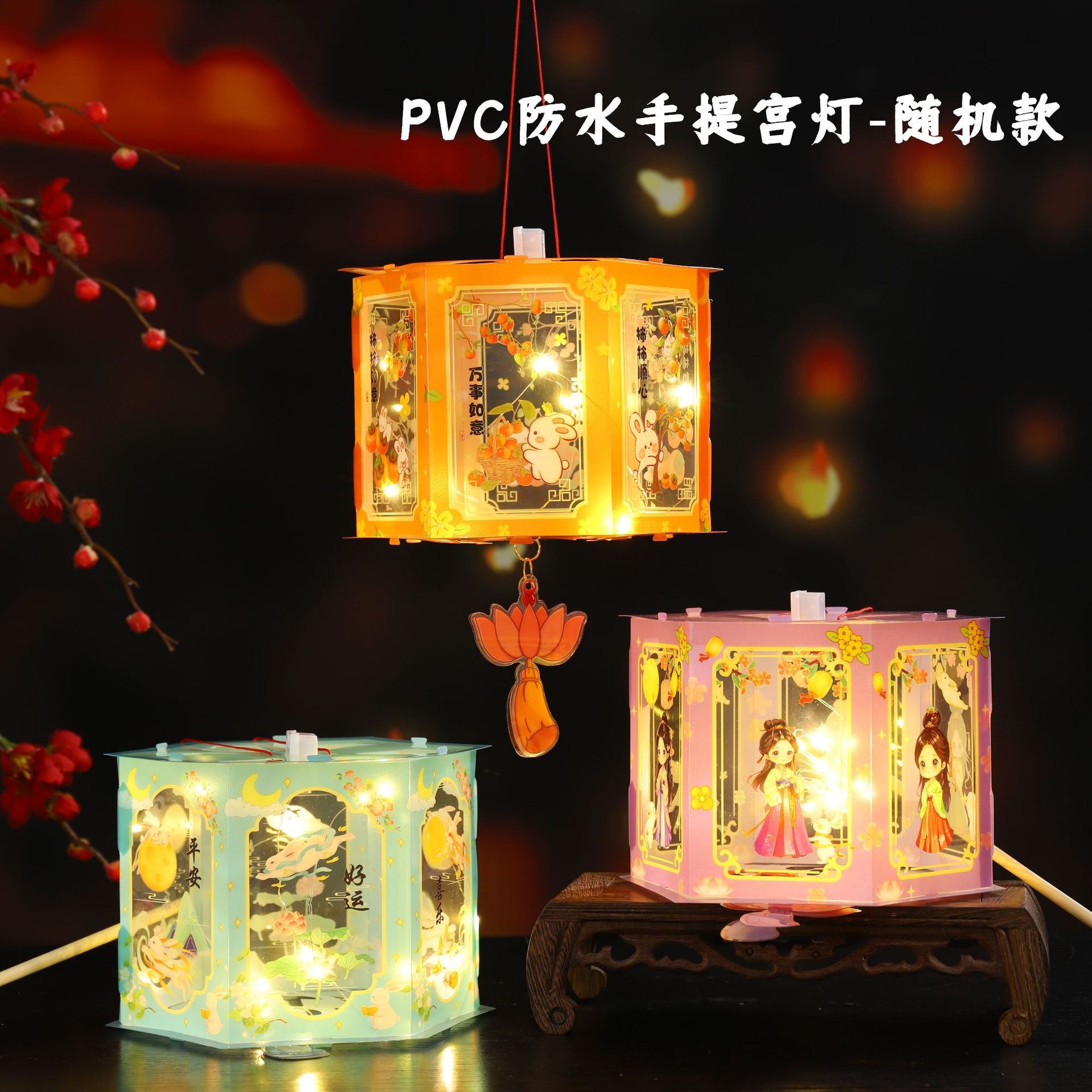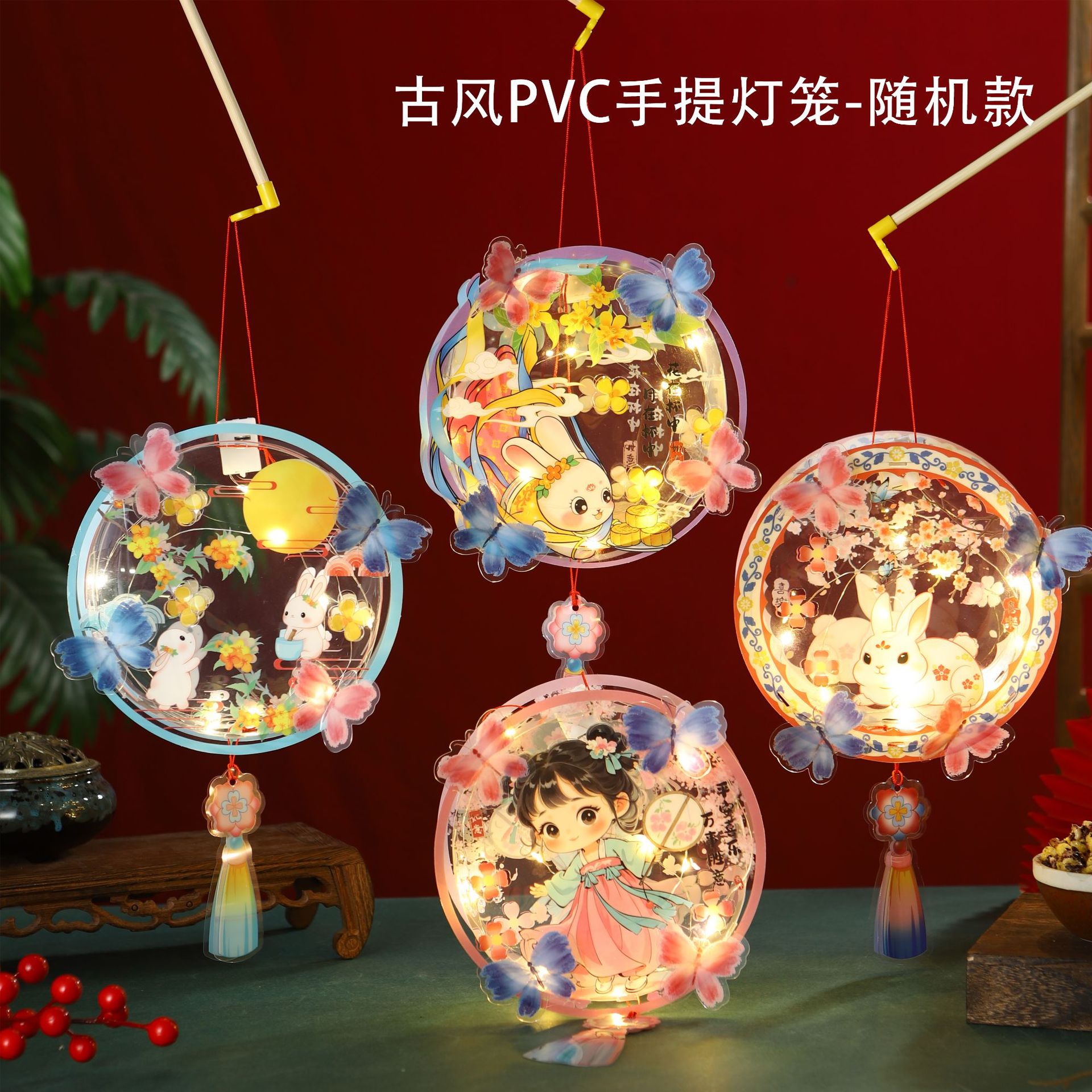 2026新年灯笼发光蝴蝶宫灯古风diy材料包儿童手提花灯pvc夜市摆摊