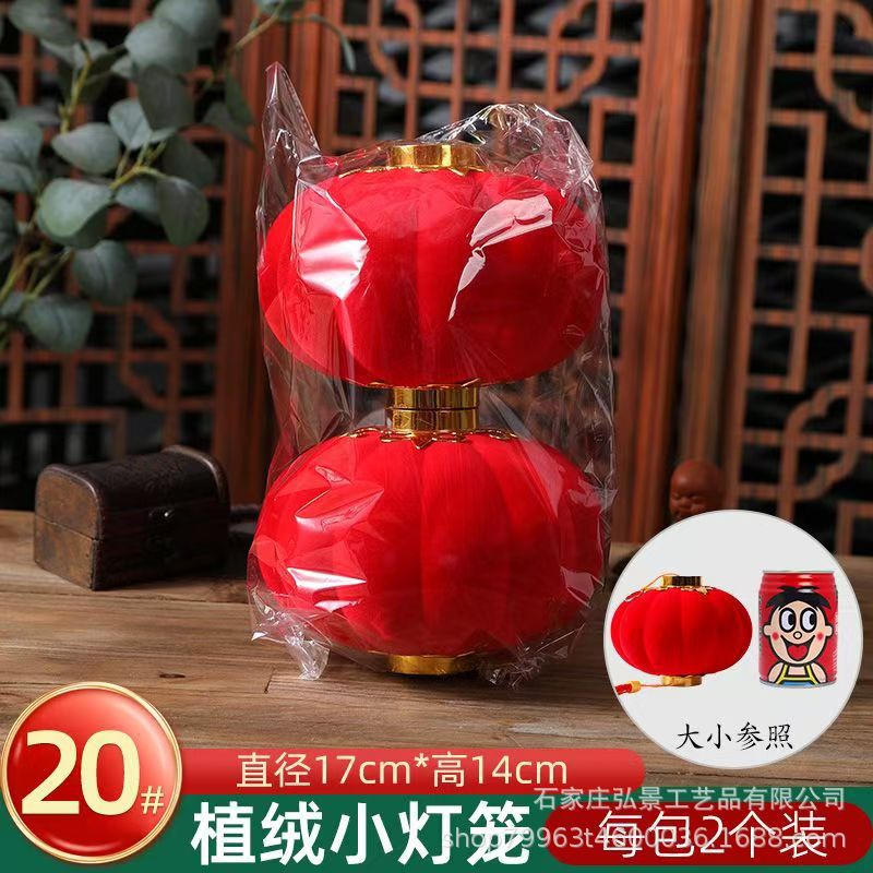 批发植绒球小红灯笼植绒灯笼盆景挂饰结婚小灯笼新年装饰春节装饰