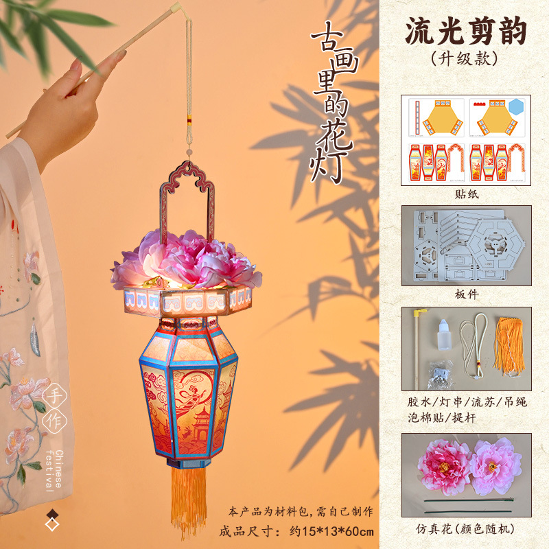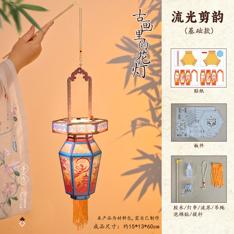 古画花篮灯笼diy花瓶宫灯材料汉服创意国潮花灯元宵节手工灯笼