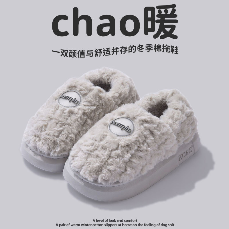 包跟棉拖鞋女款冬季2025新款室内居家加绒保暖厚底防滑棉鞋男外穿