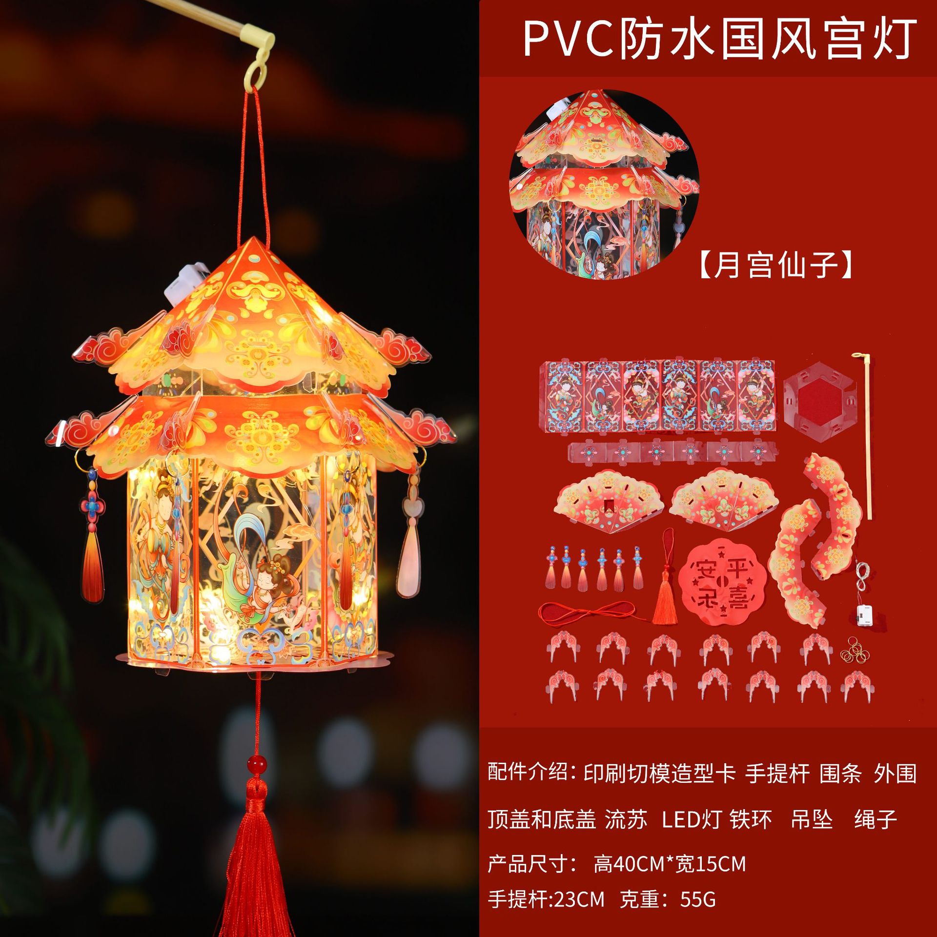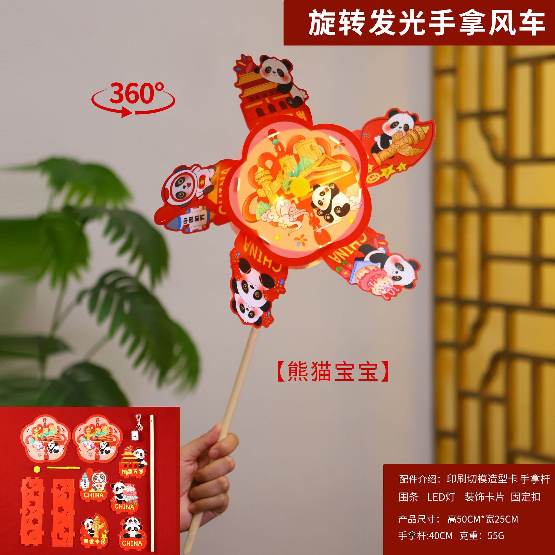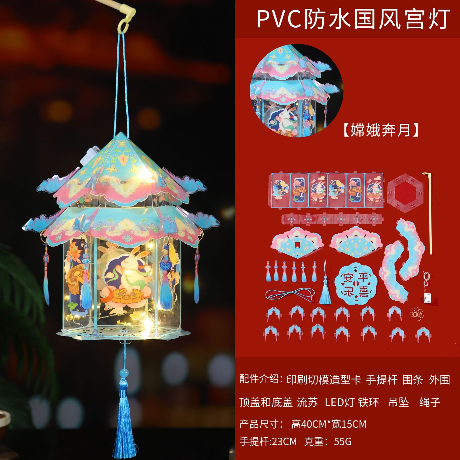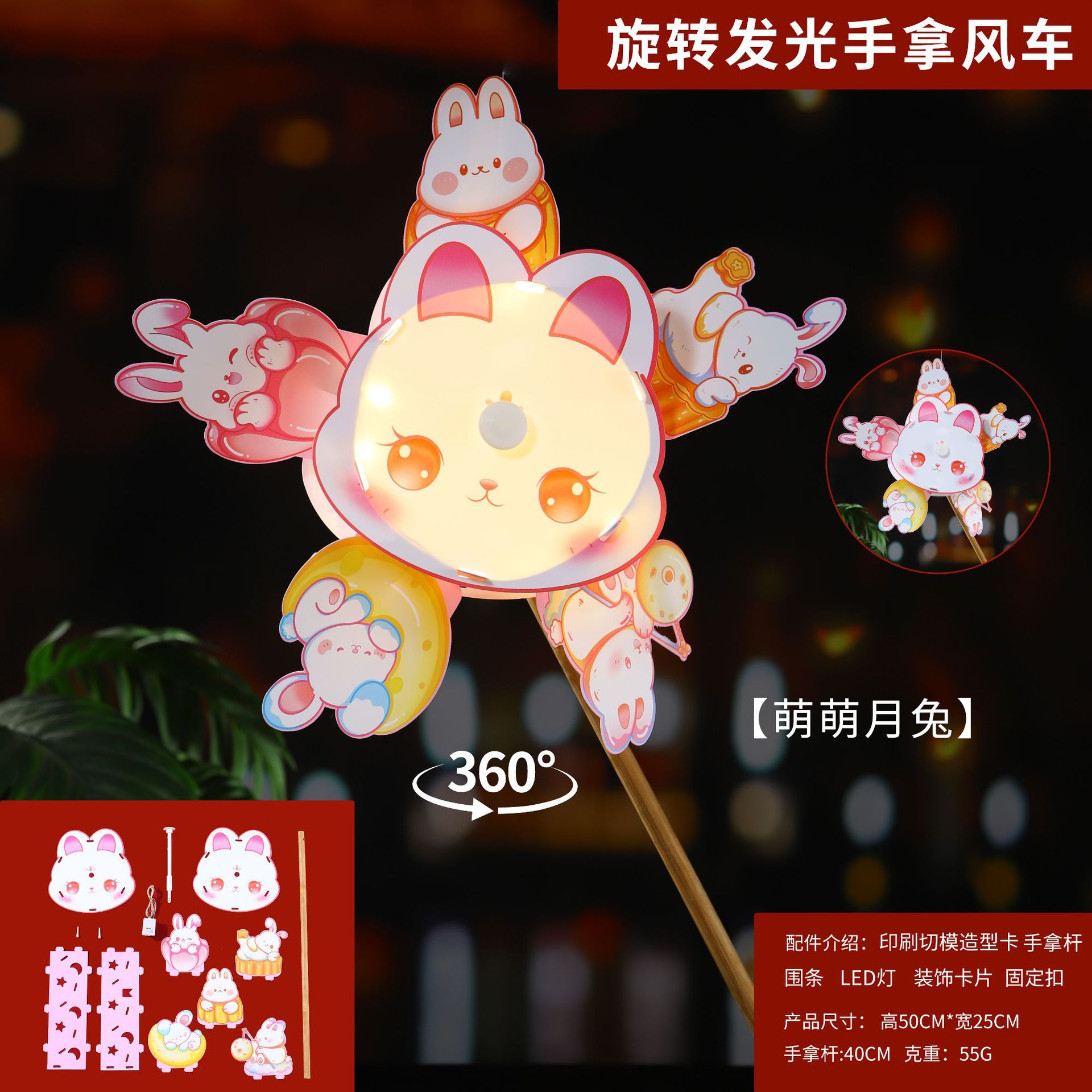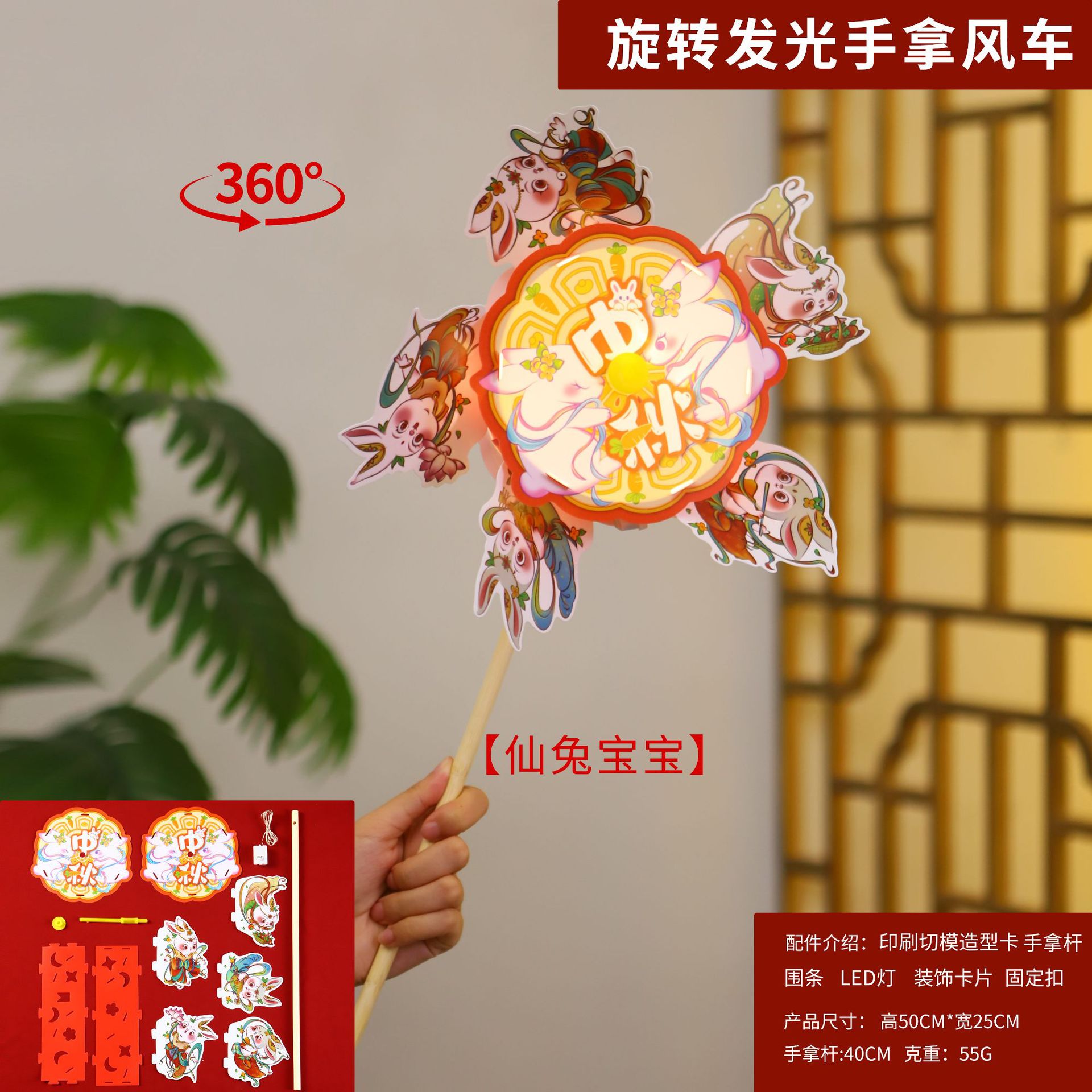 中秋节灯笼儿童手提花灯diy材料包旋转风车发光灯笼花灯摆摊灯笼