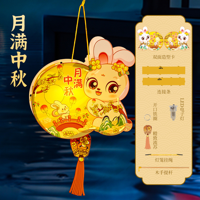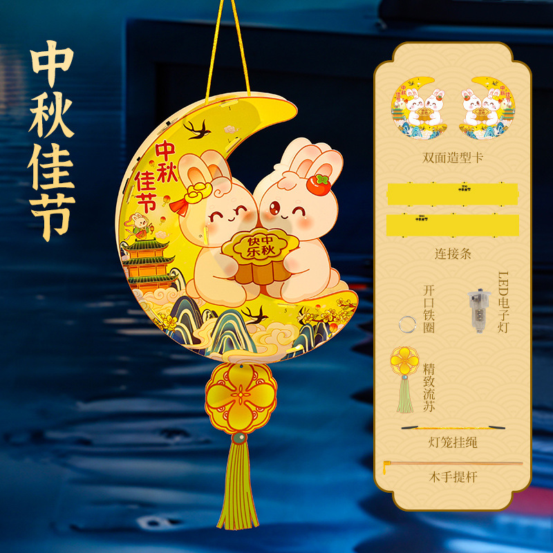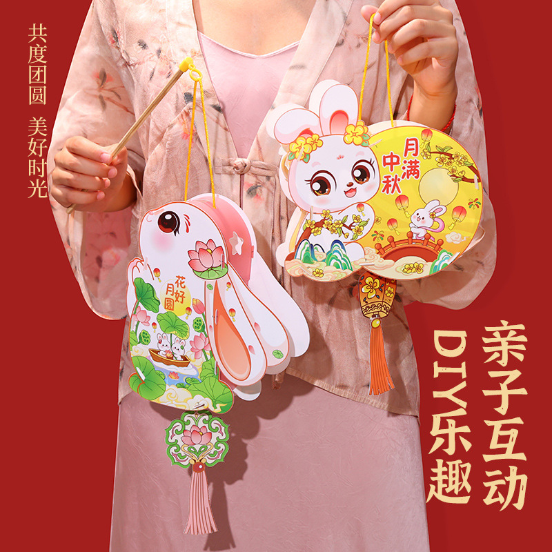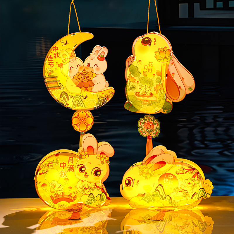 中秋节花灯儿童手提发光灯笼幼儿园节日暖场活动兔子灯笼材料包