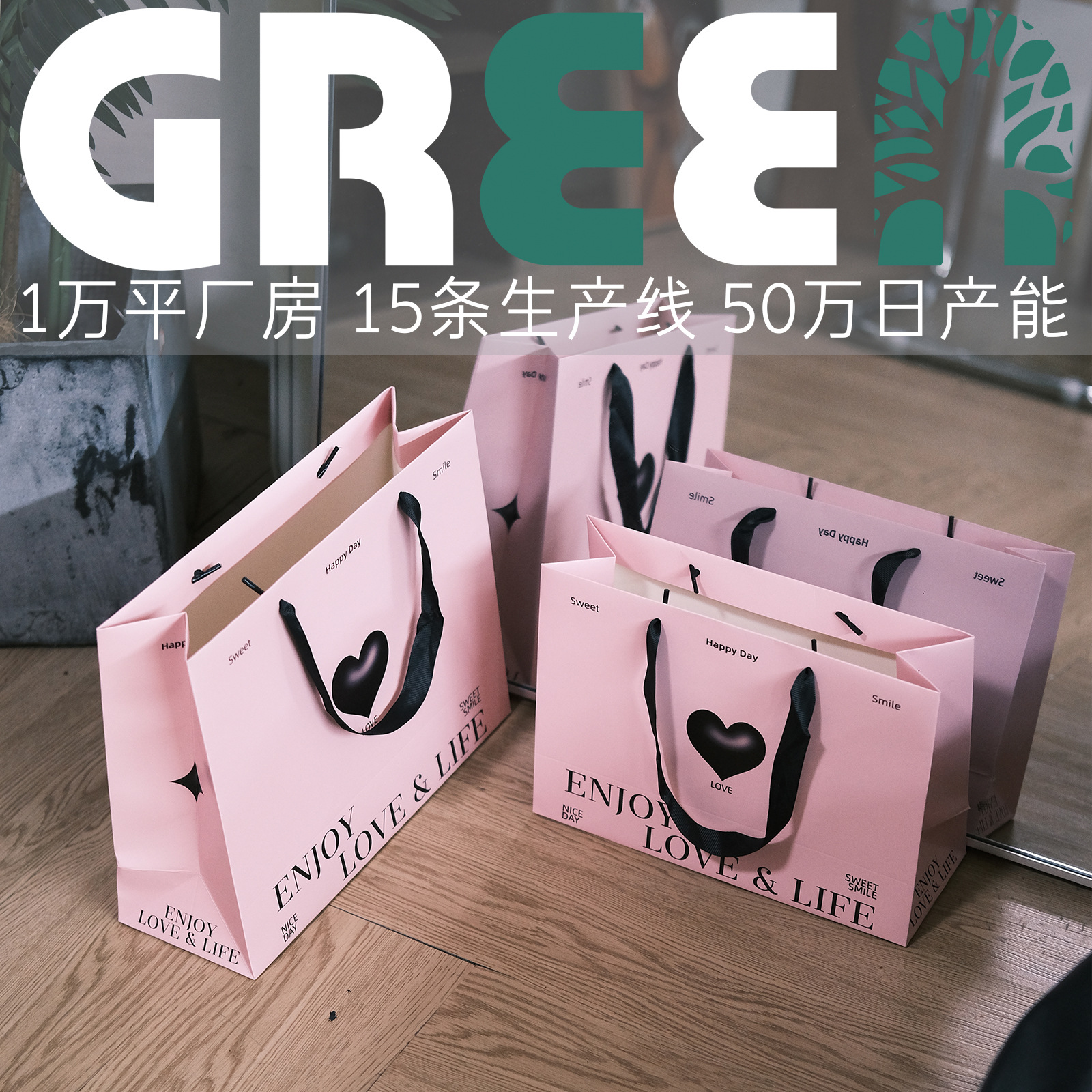 服装店手提袋纸袋黑边手提袋女装手提袋纸袋可印logo服装袋子现货