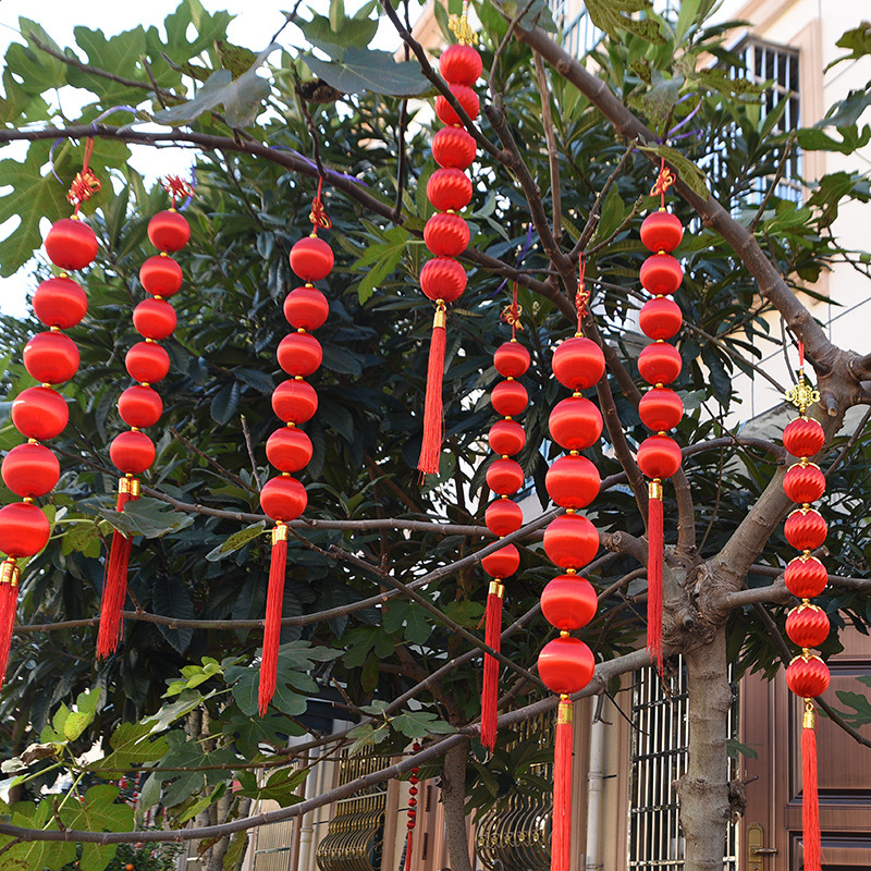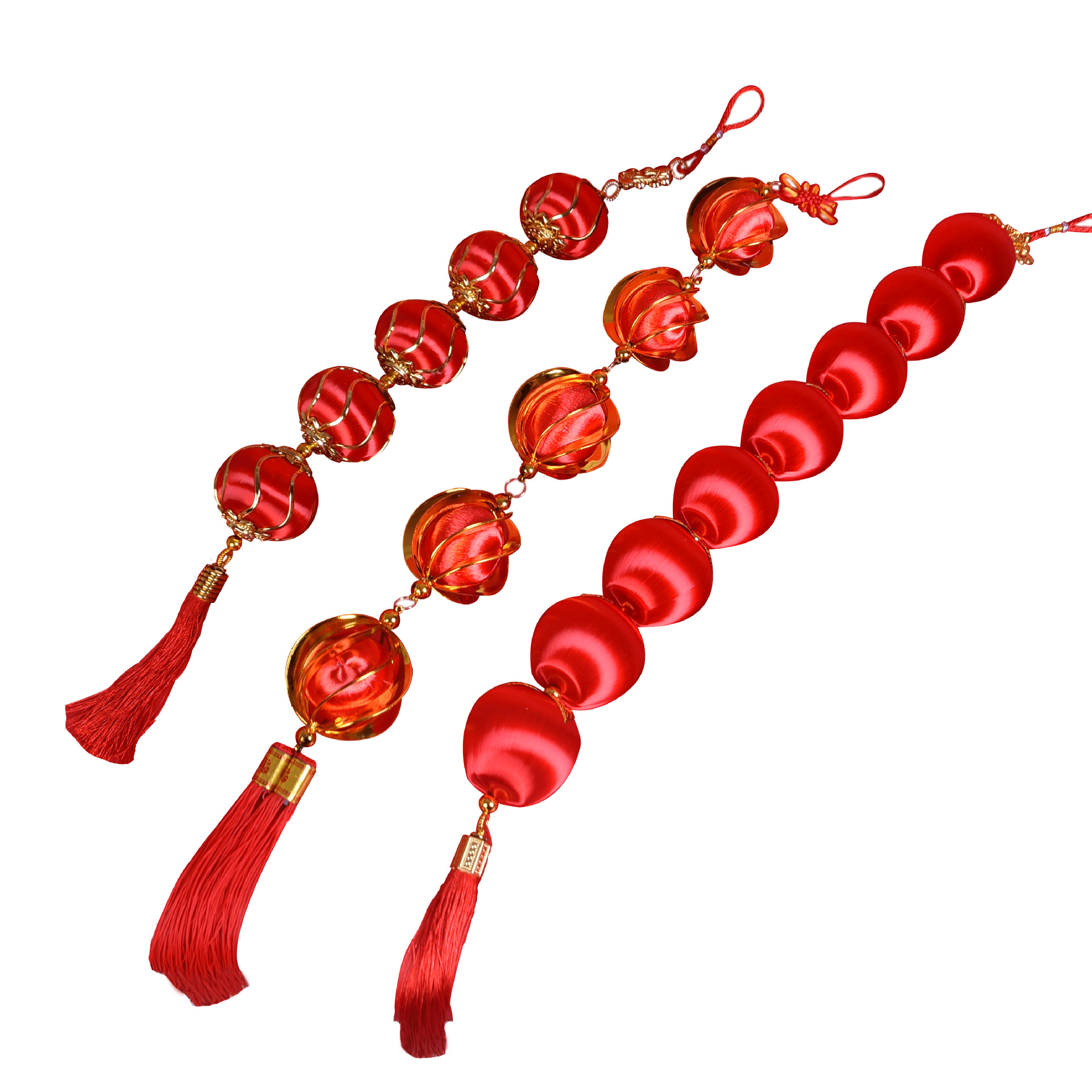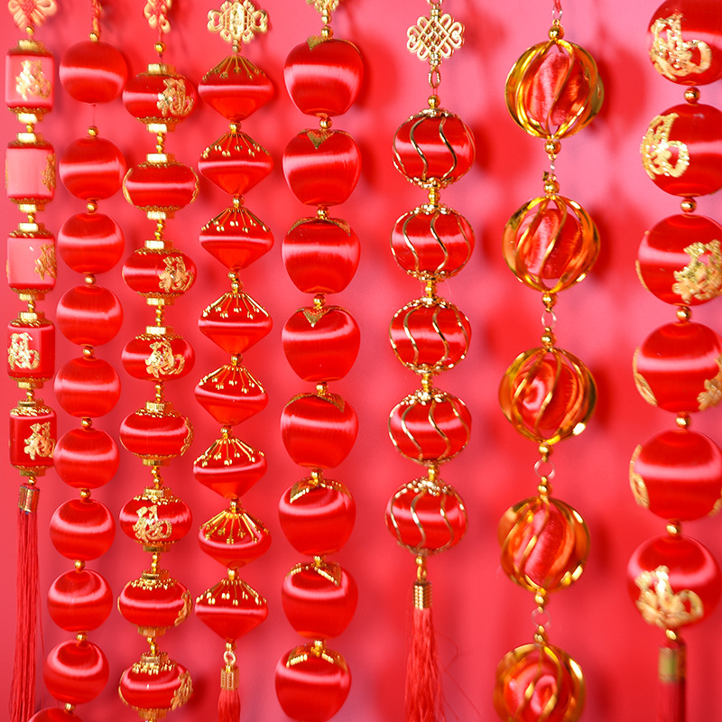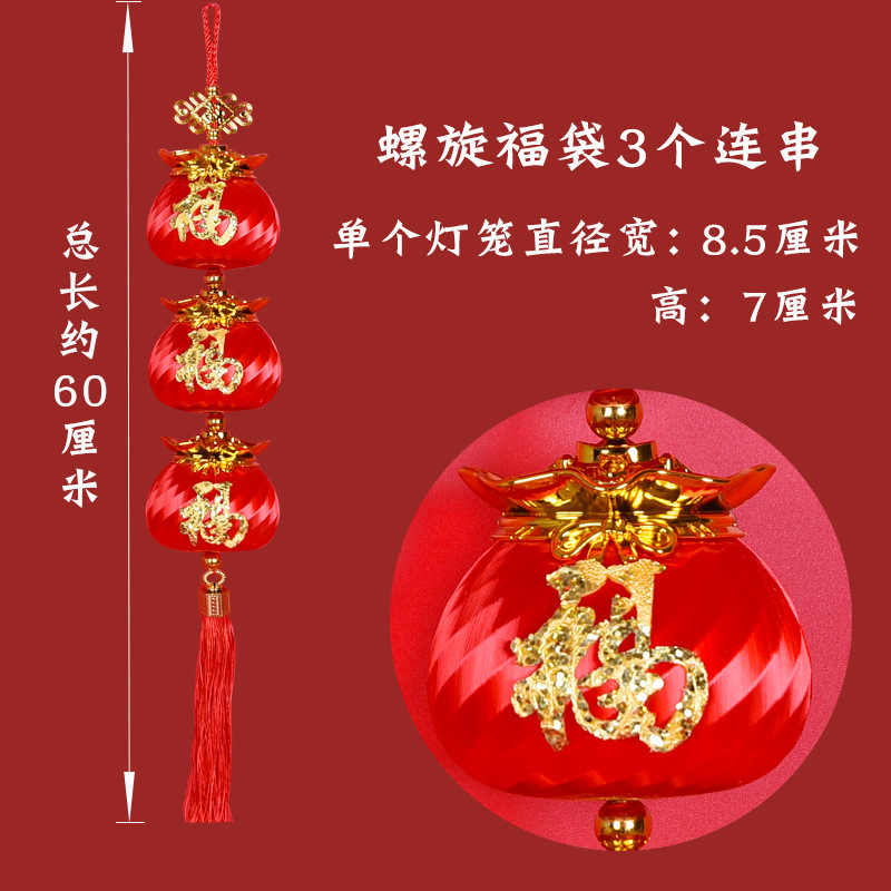 新年小灯笼丝光春节挂件过年挂喜庆厂家批发小红灯笼连串龙年挂饰