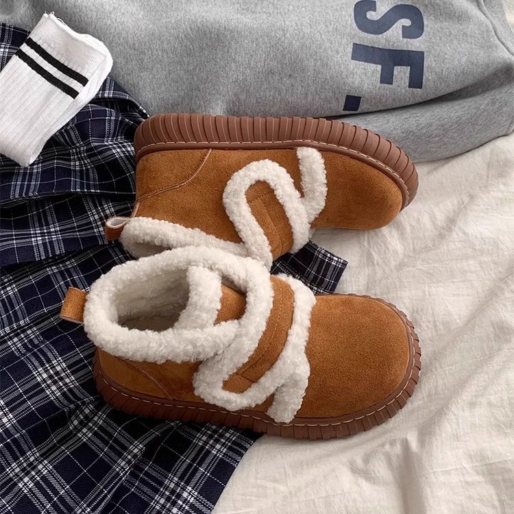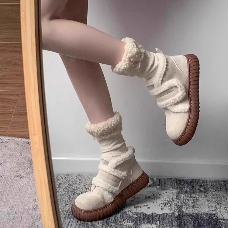 厚底时尚百搭休闲东北雪地靴女2024冬新款加绒加厚魔术贴毛毛棉鞋