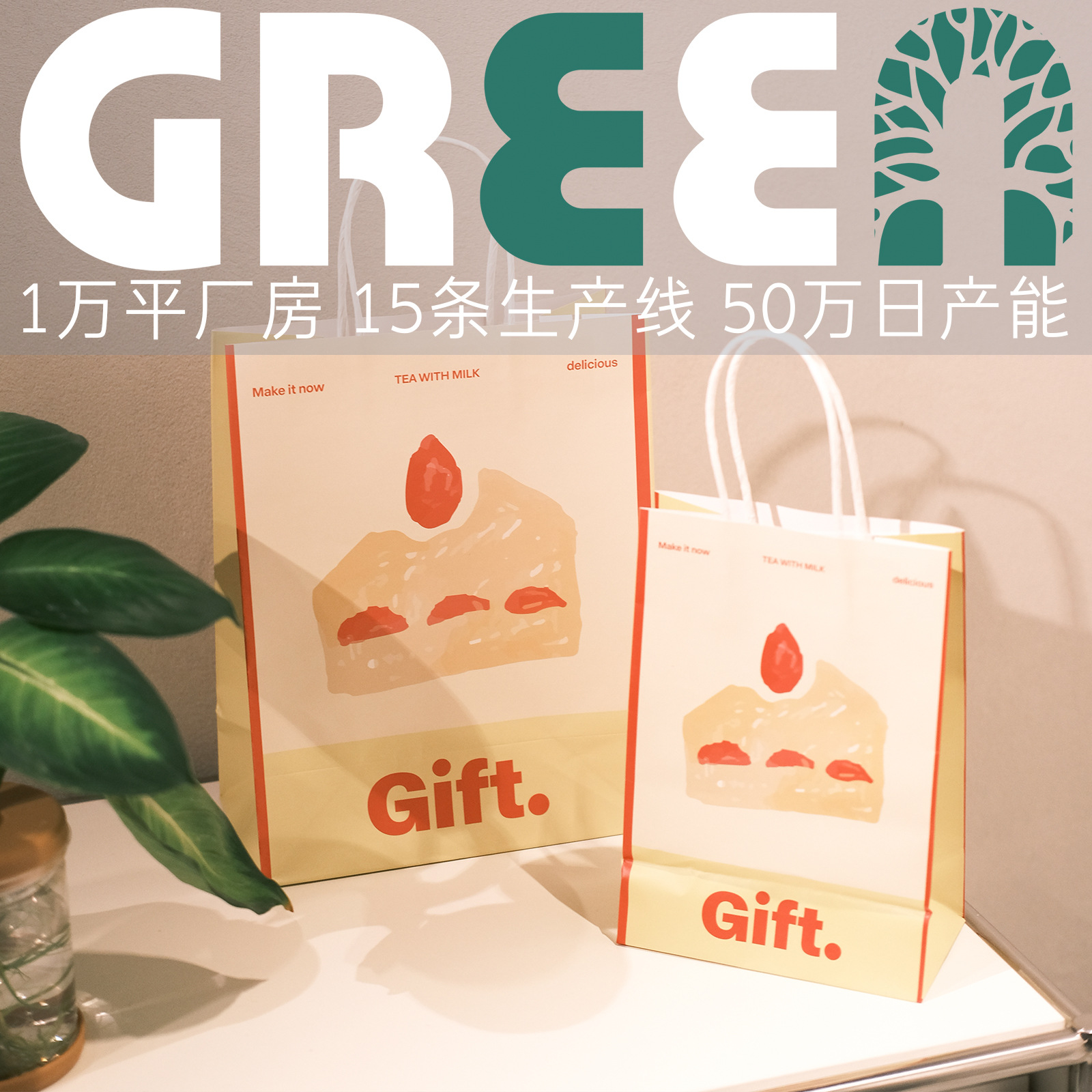 gift 抽象奶茶咖啡烘焙打包袋手提袋甜品牛皮纸袋手提袋防水纸袋