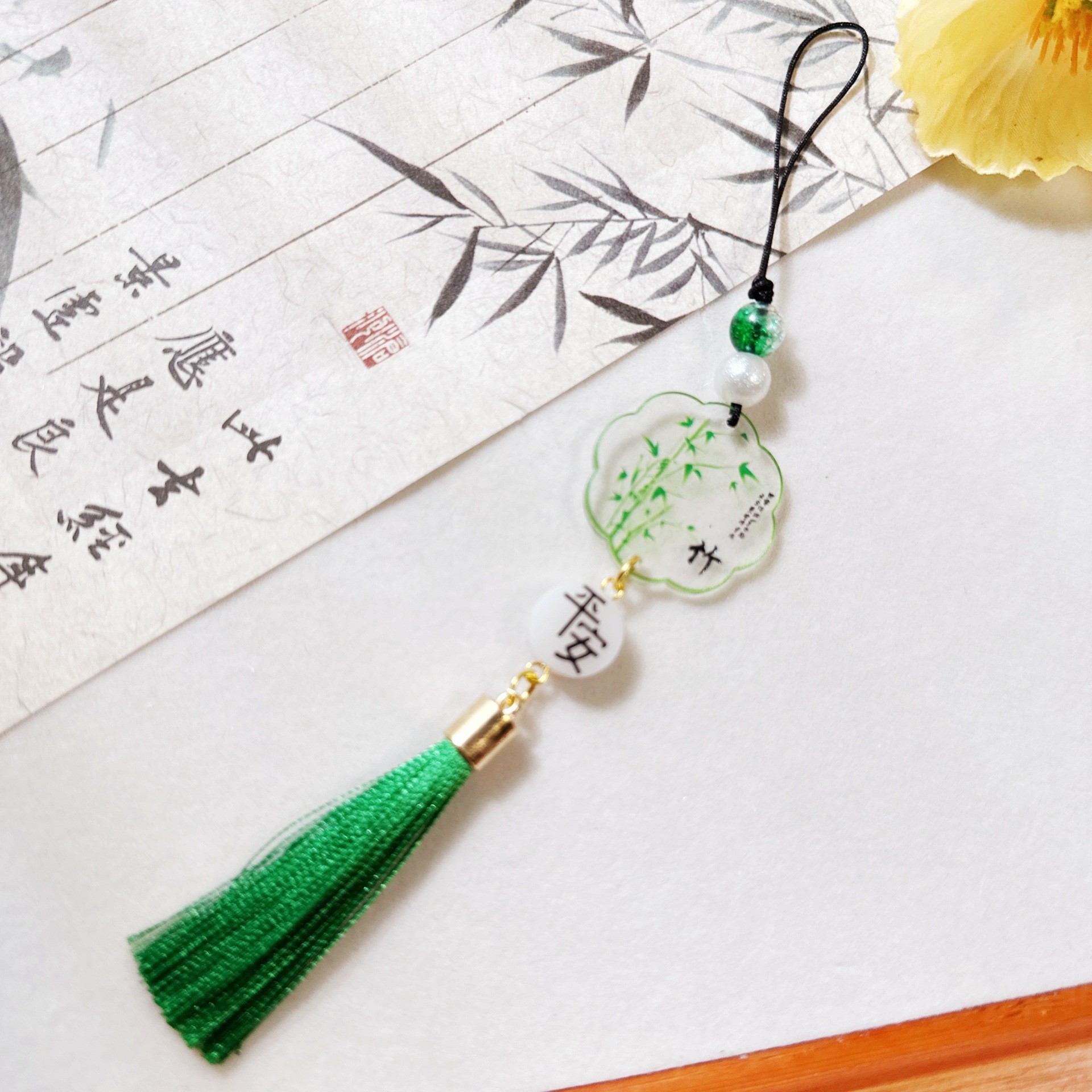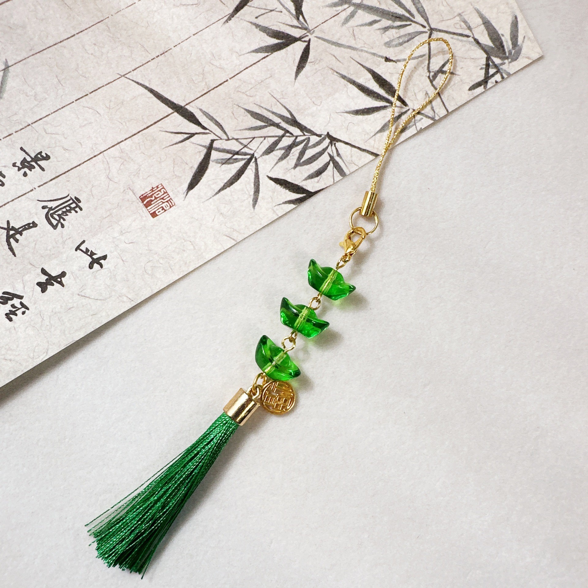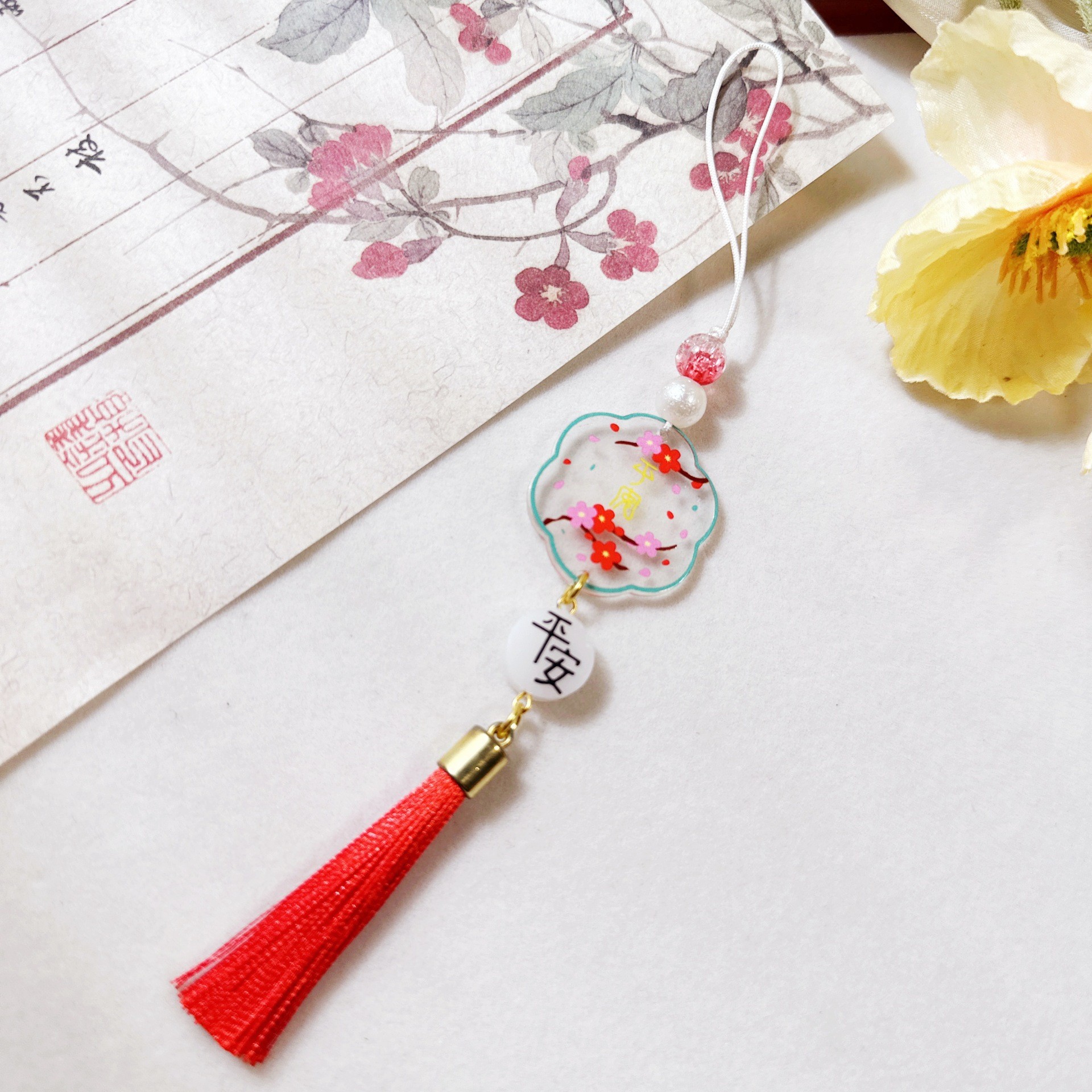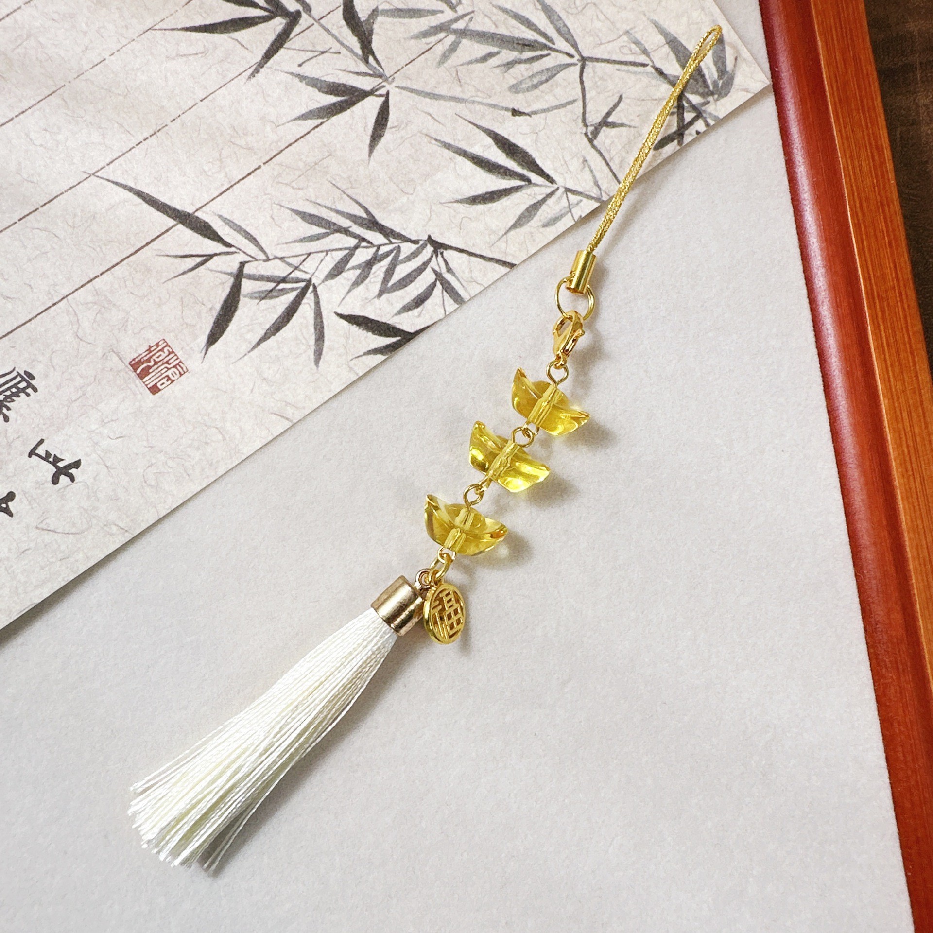 直播同款古风配件四叶草白贝扇子手机链装饰手机挂件包包挂件批发