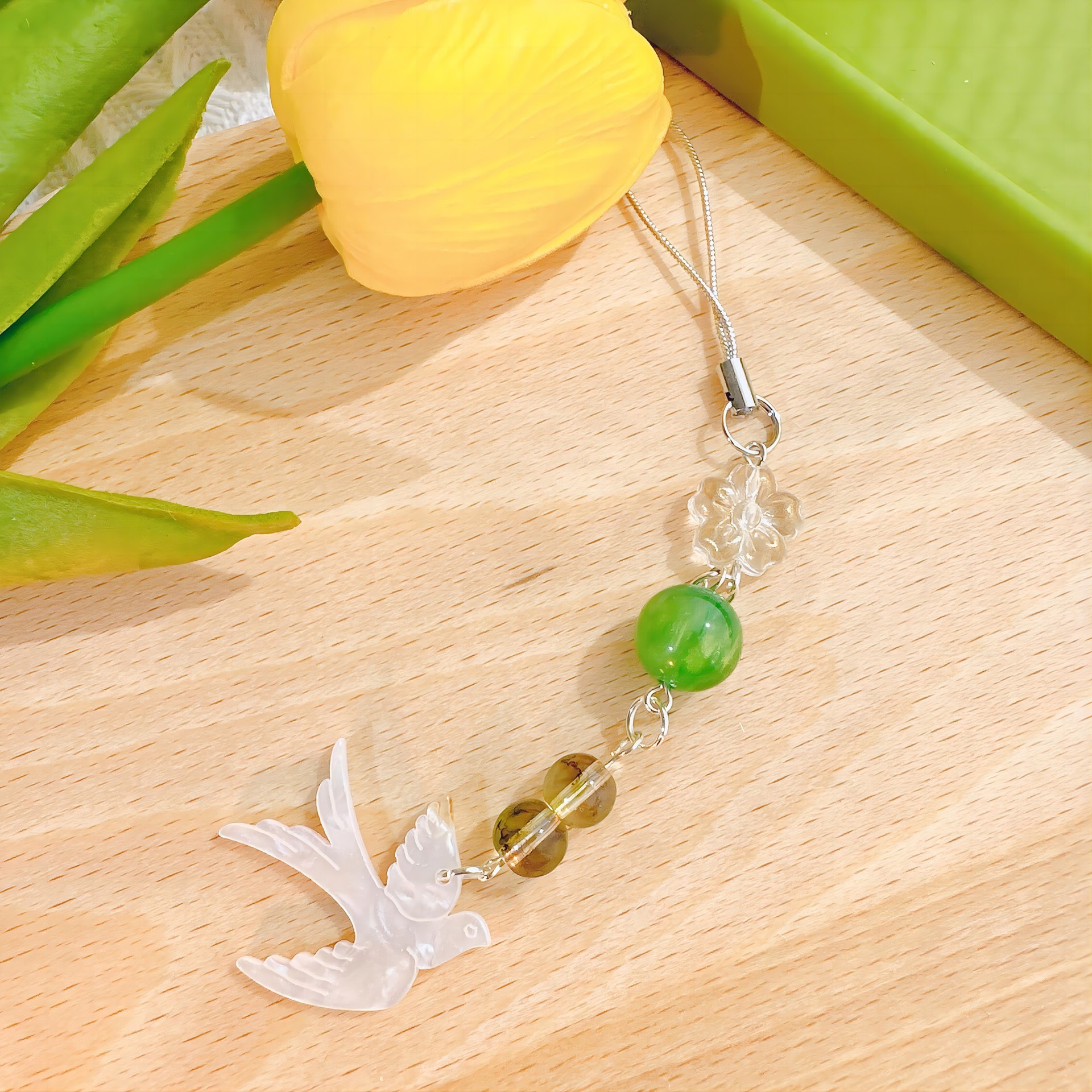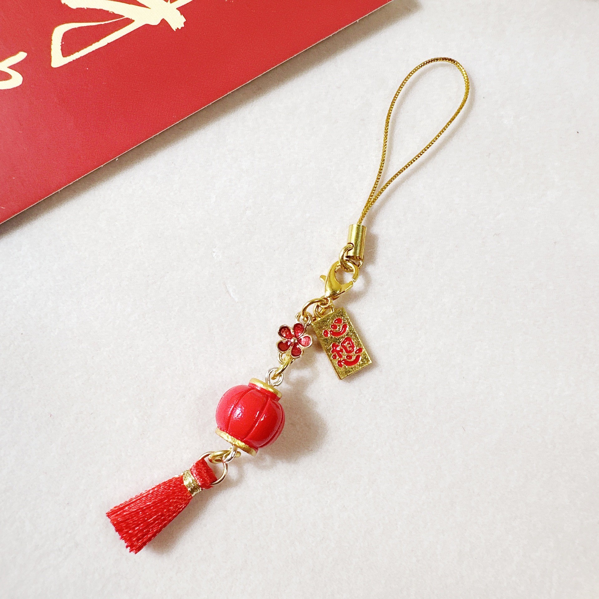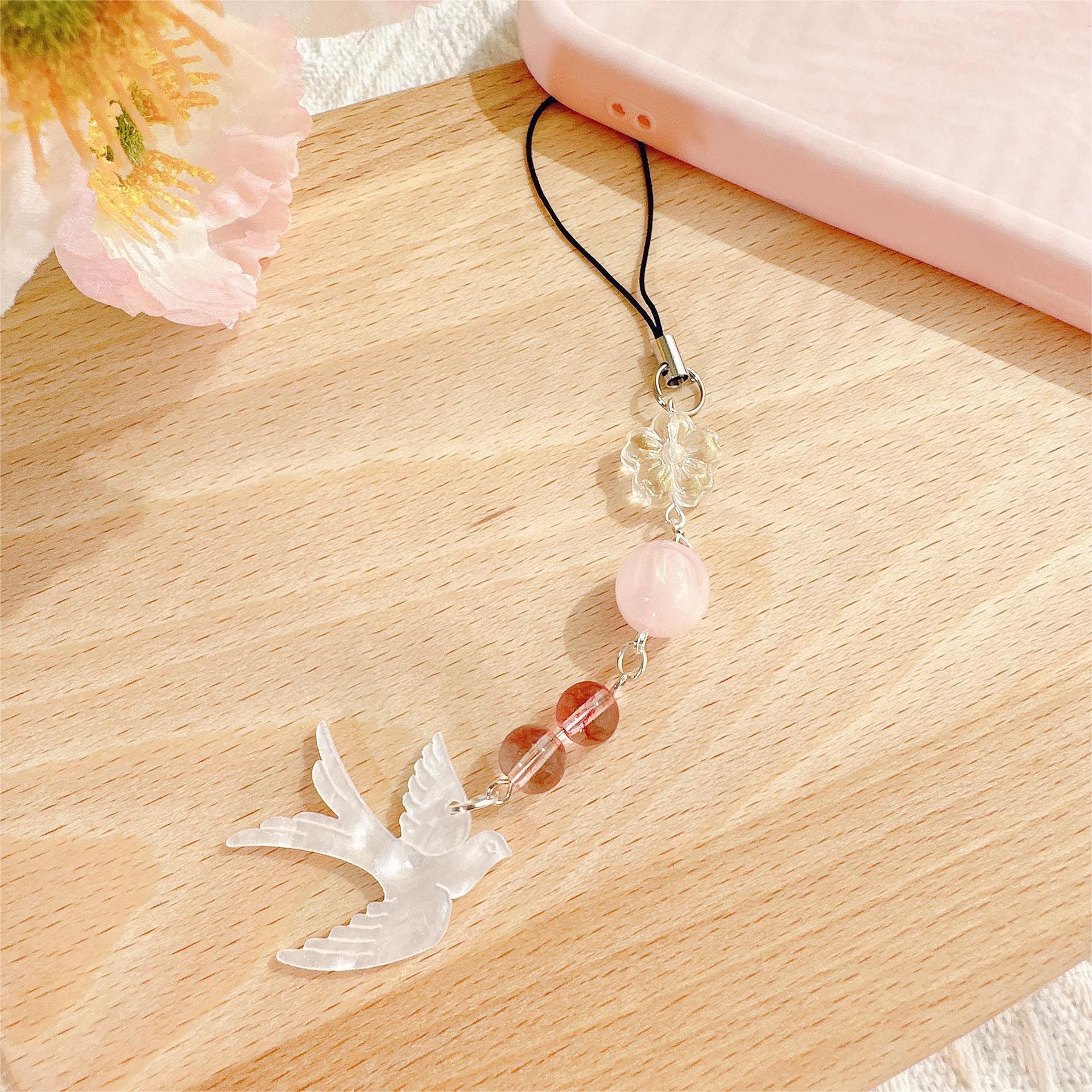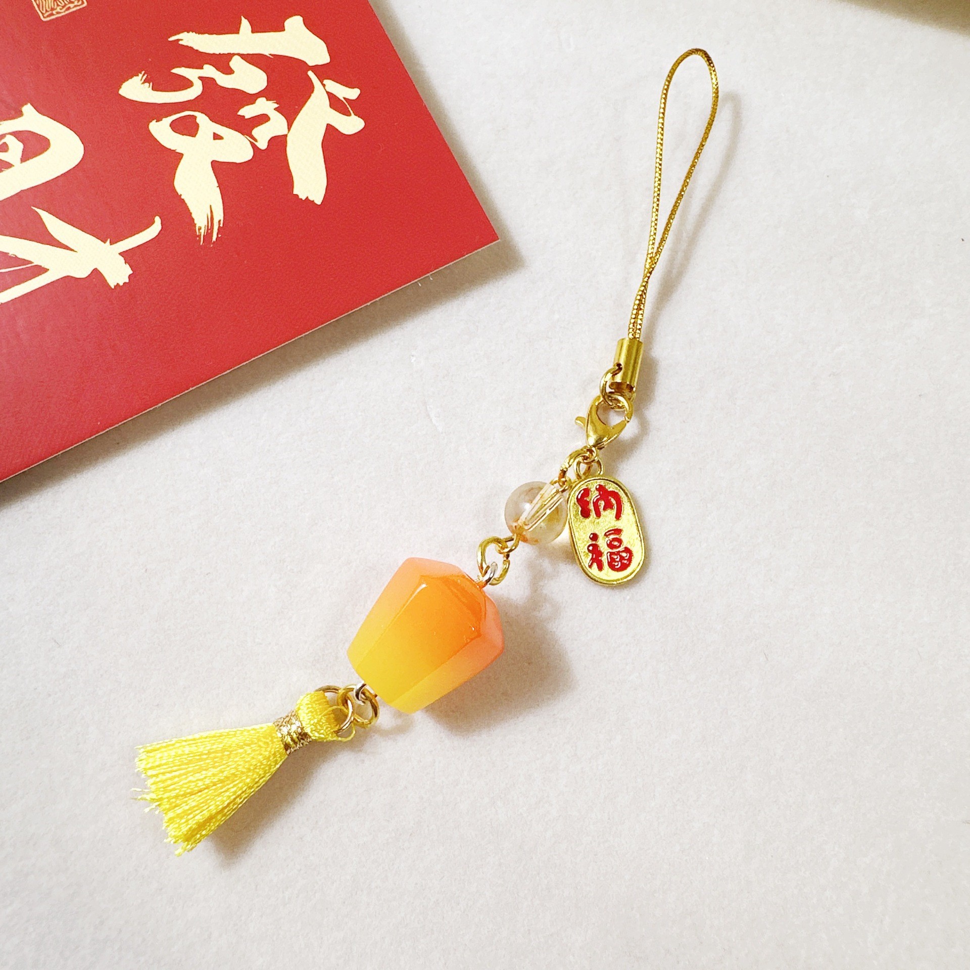 直播同款古风配件四叶草白贝扇子手机链装饰手机挂件包包挂件批发