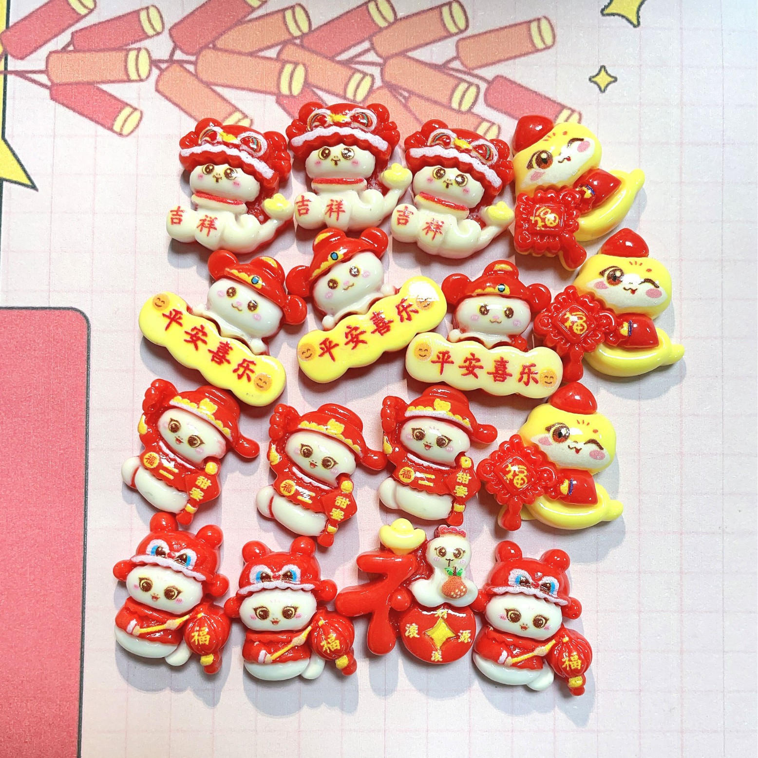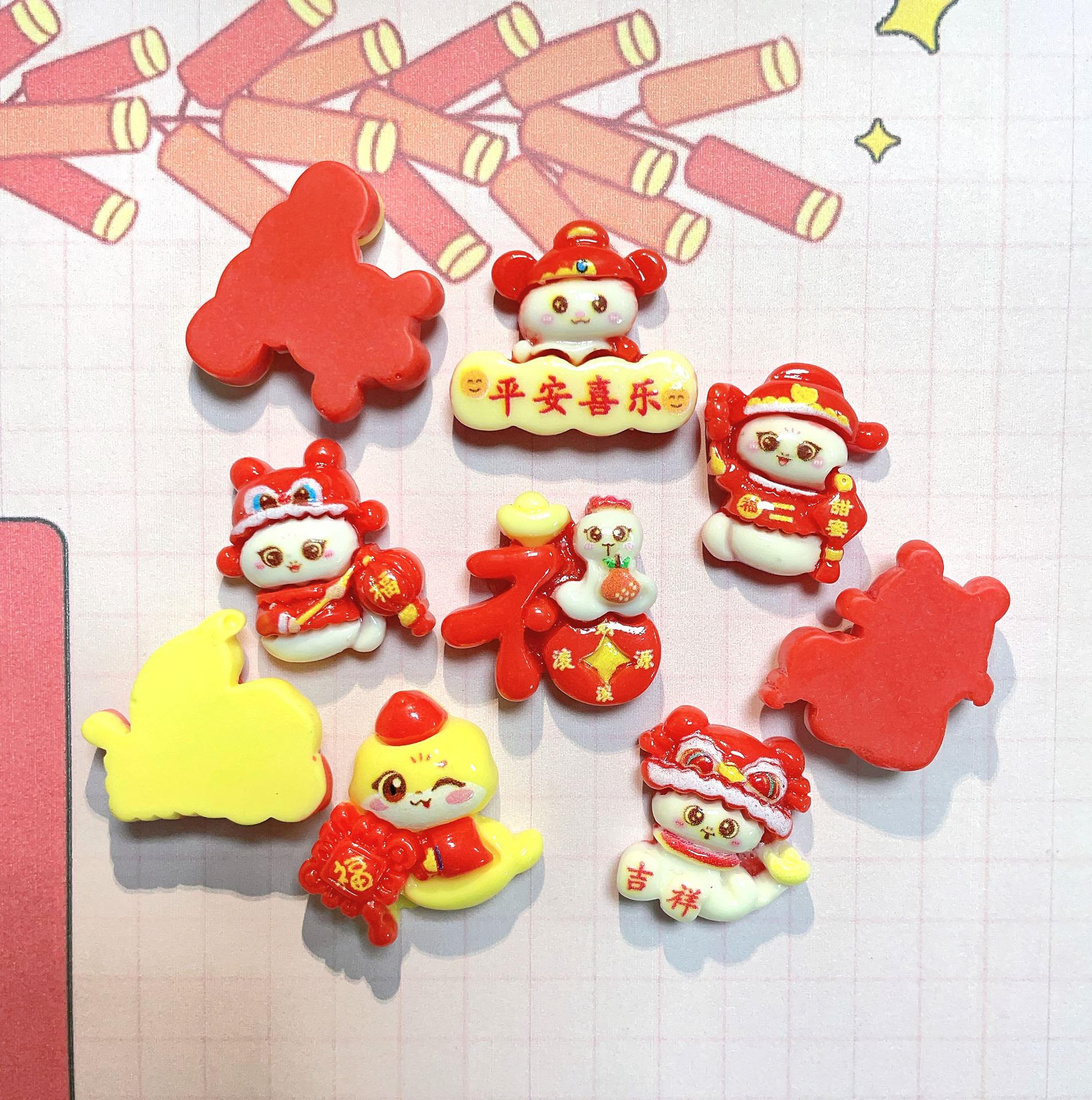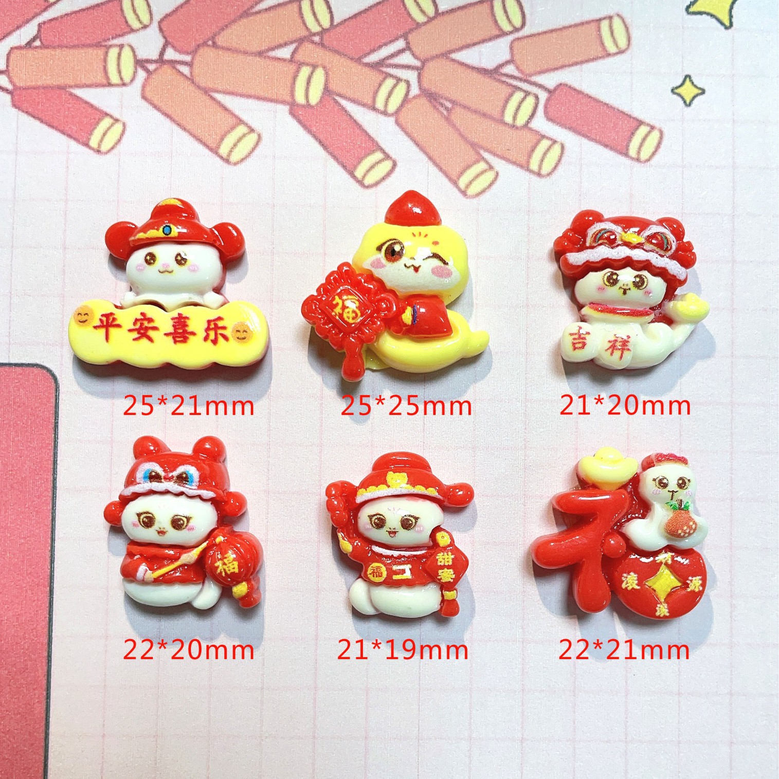 新年卡通财神爷福字树脂配件 diy奶油胶饰品手机壳发夹贴片