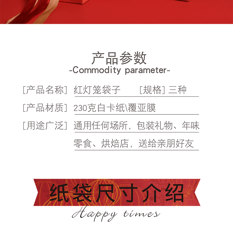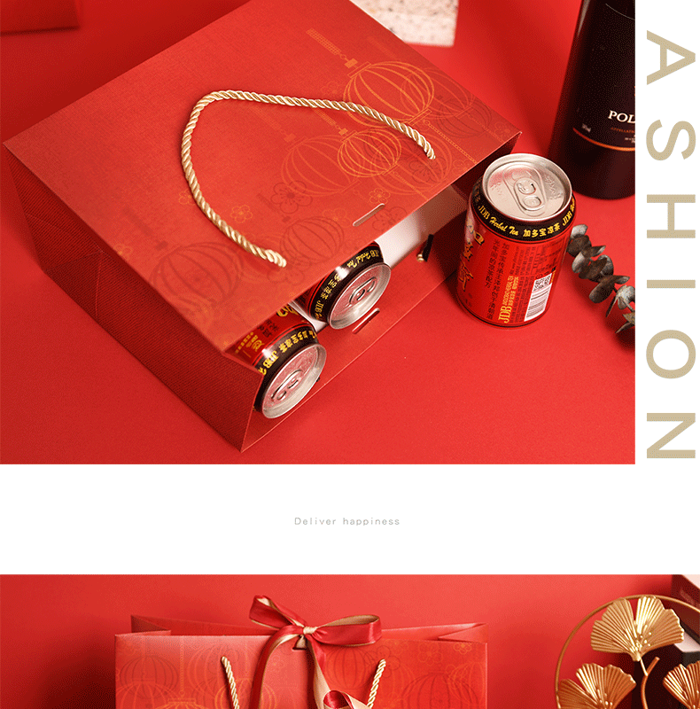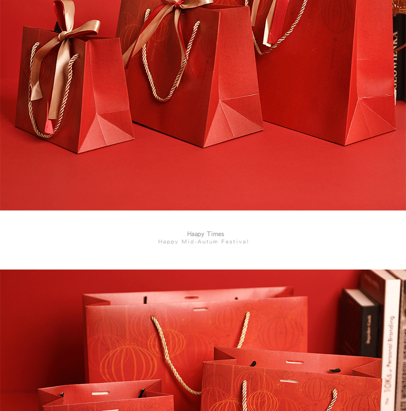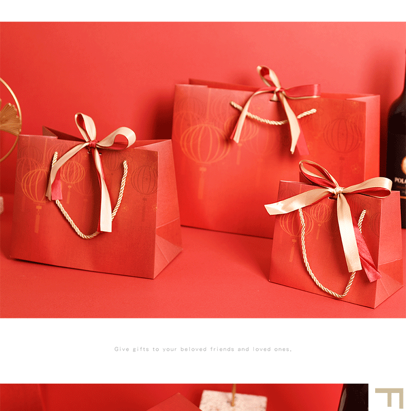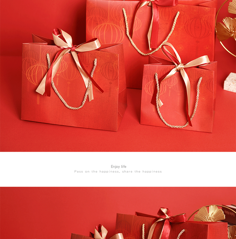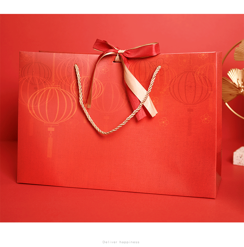国潮风红灯笼礼品袋高级感春节送礼包装袋年会手提袋配丝带可印字