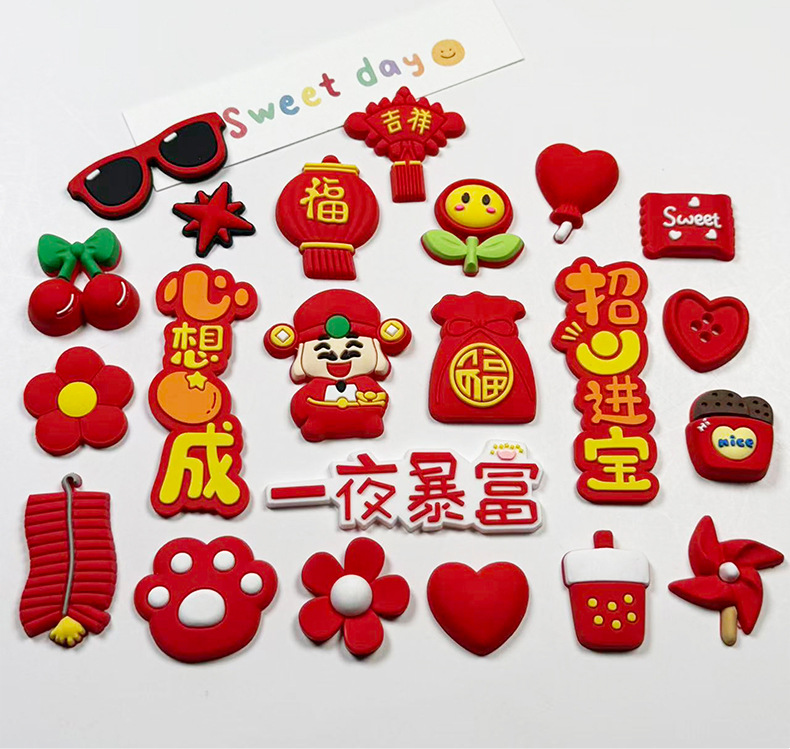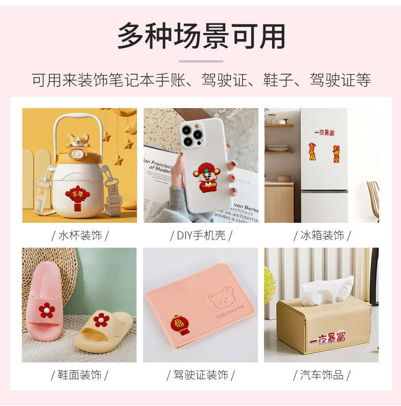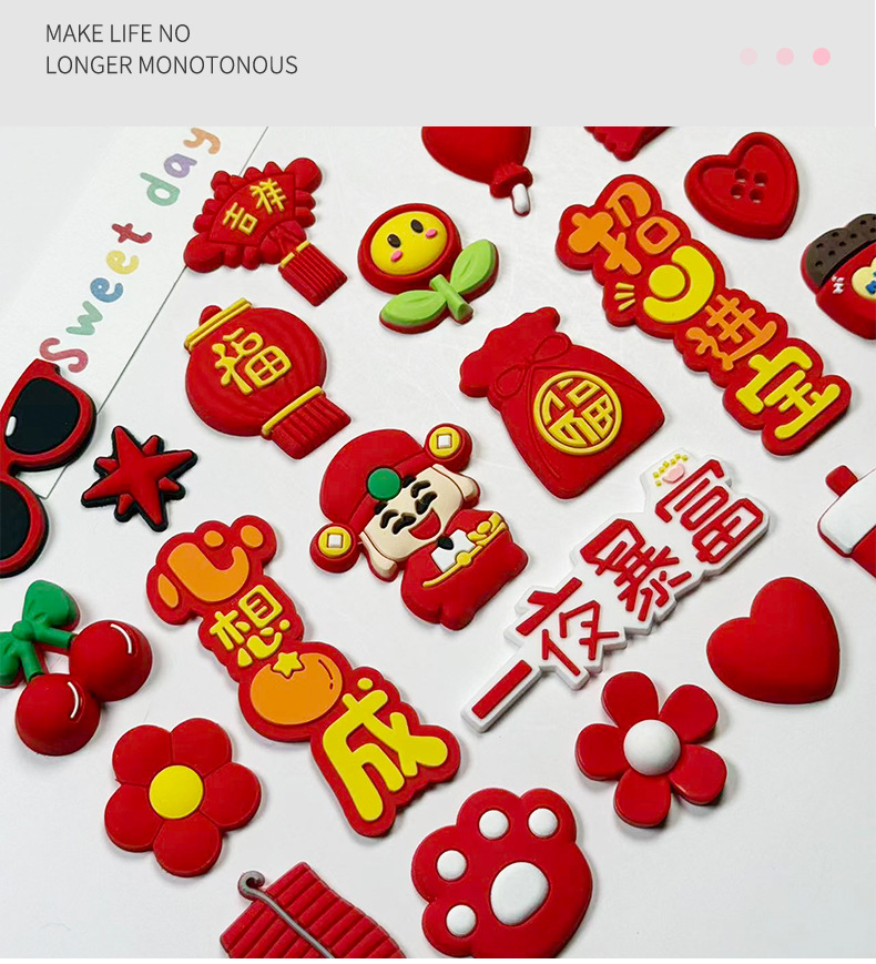 新年红色喜庆祝福语软胶pvc字牌手机壳diy饰品配件鞋子衣帽玩具贴