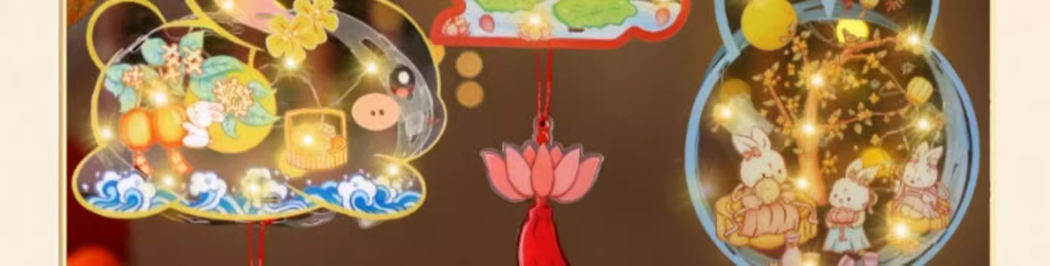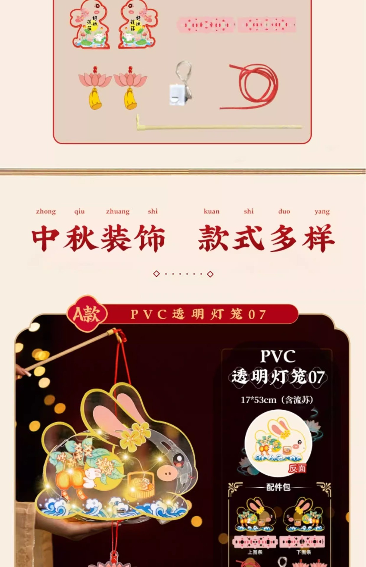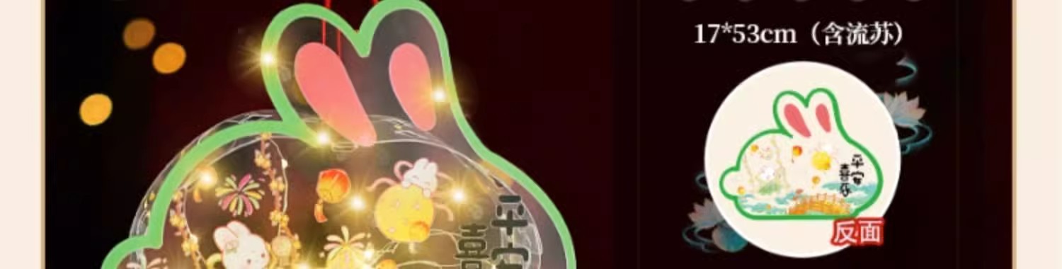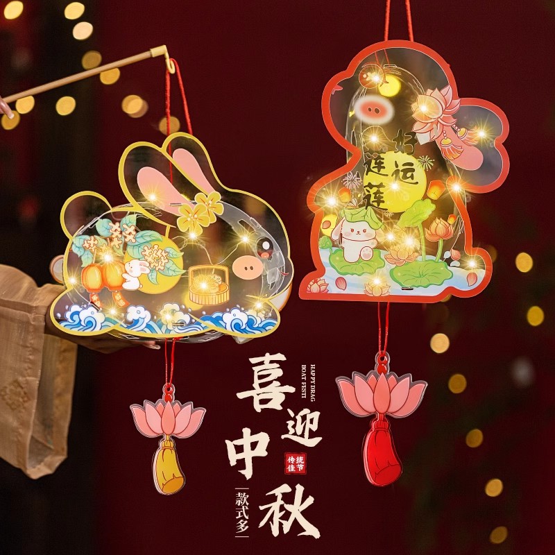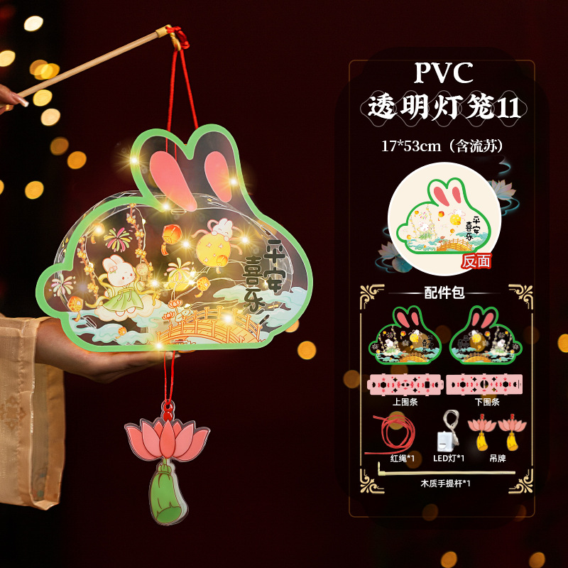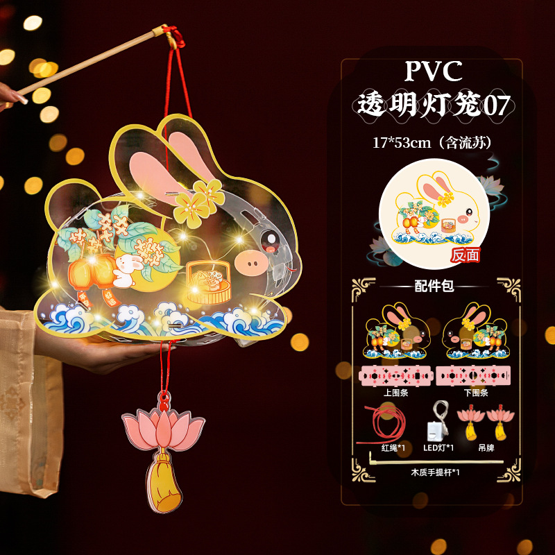2025中秋手提花灯发光灯笼儿童卡通diy透明pvc兔子花灯古风灯笼